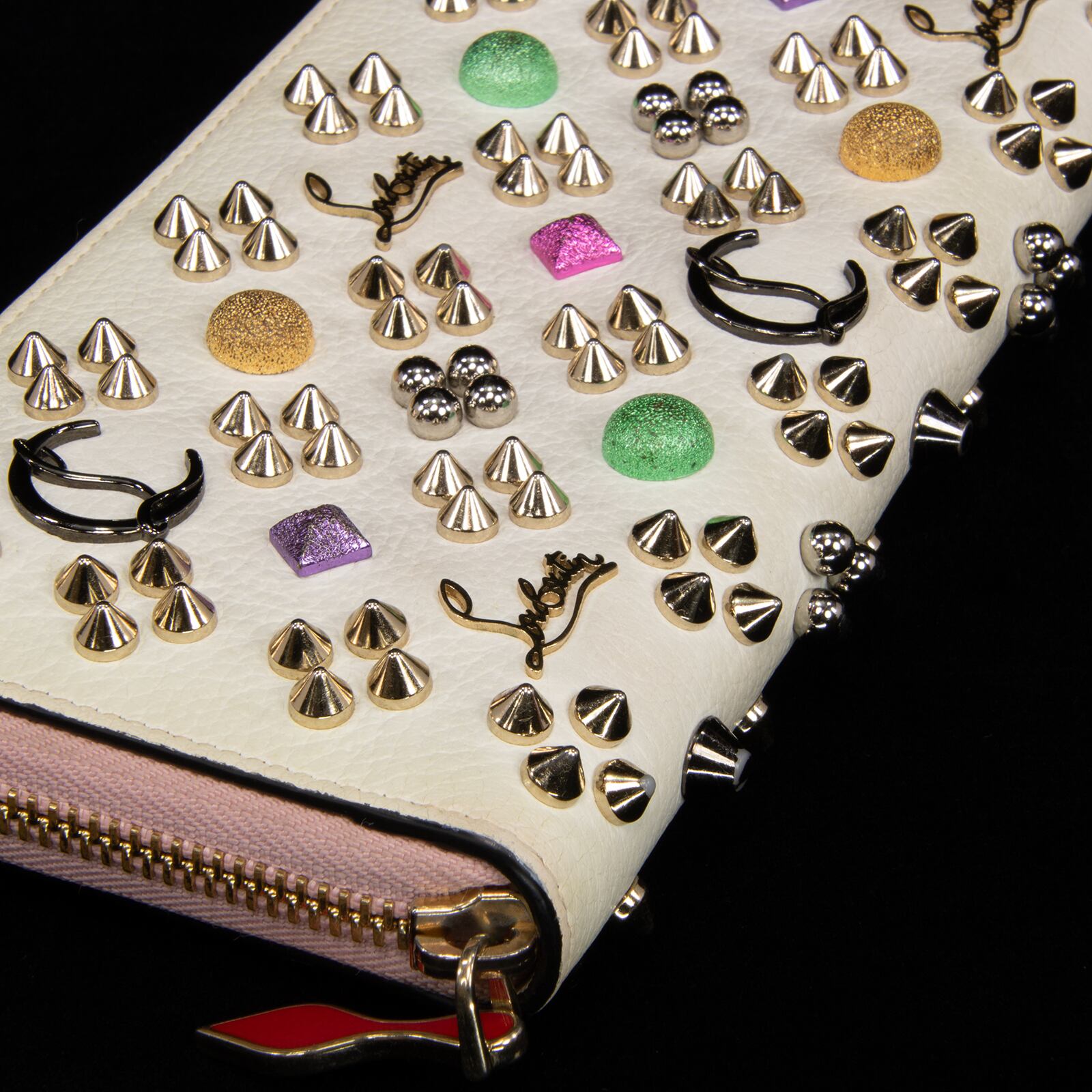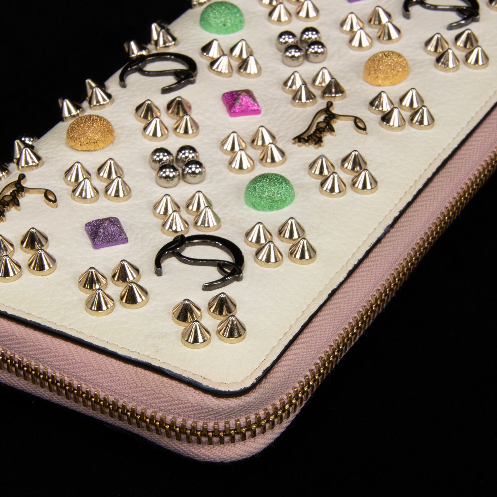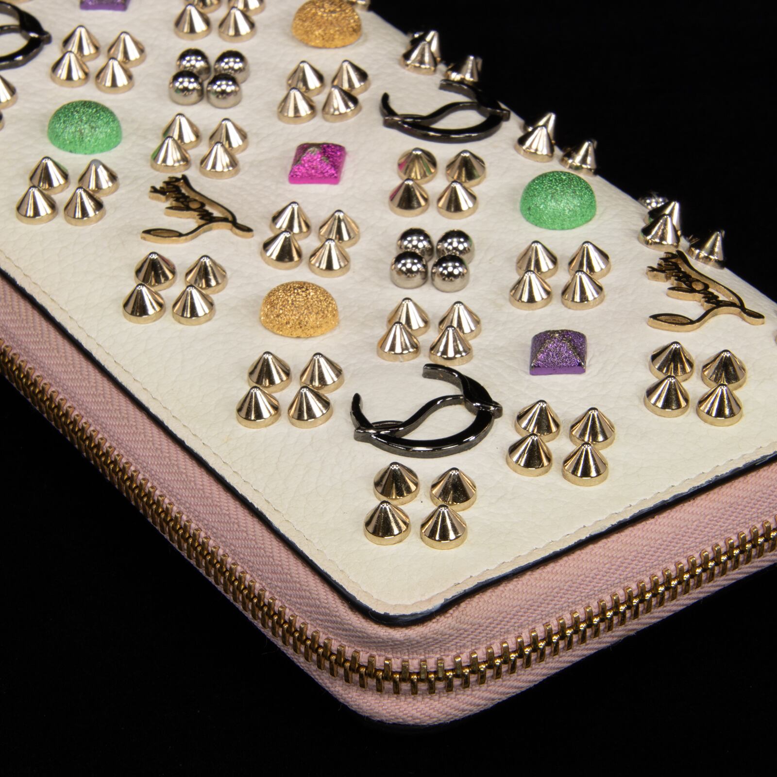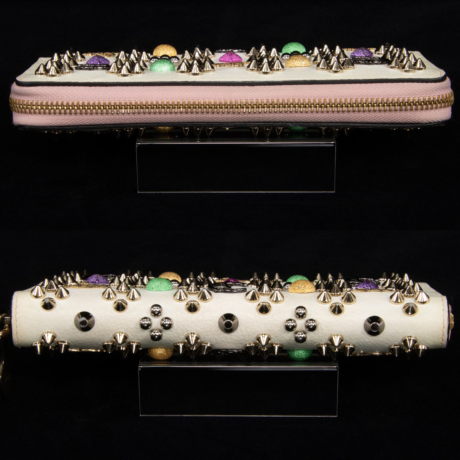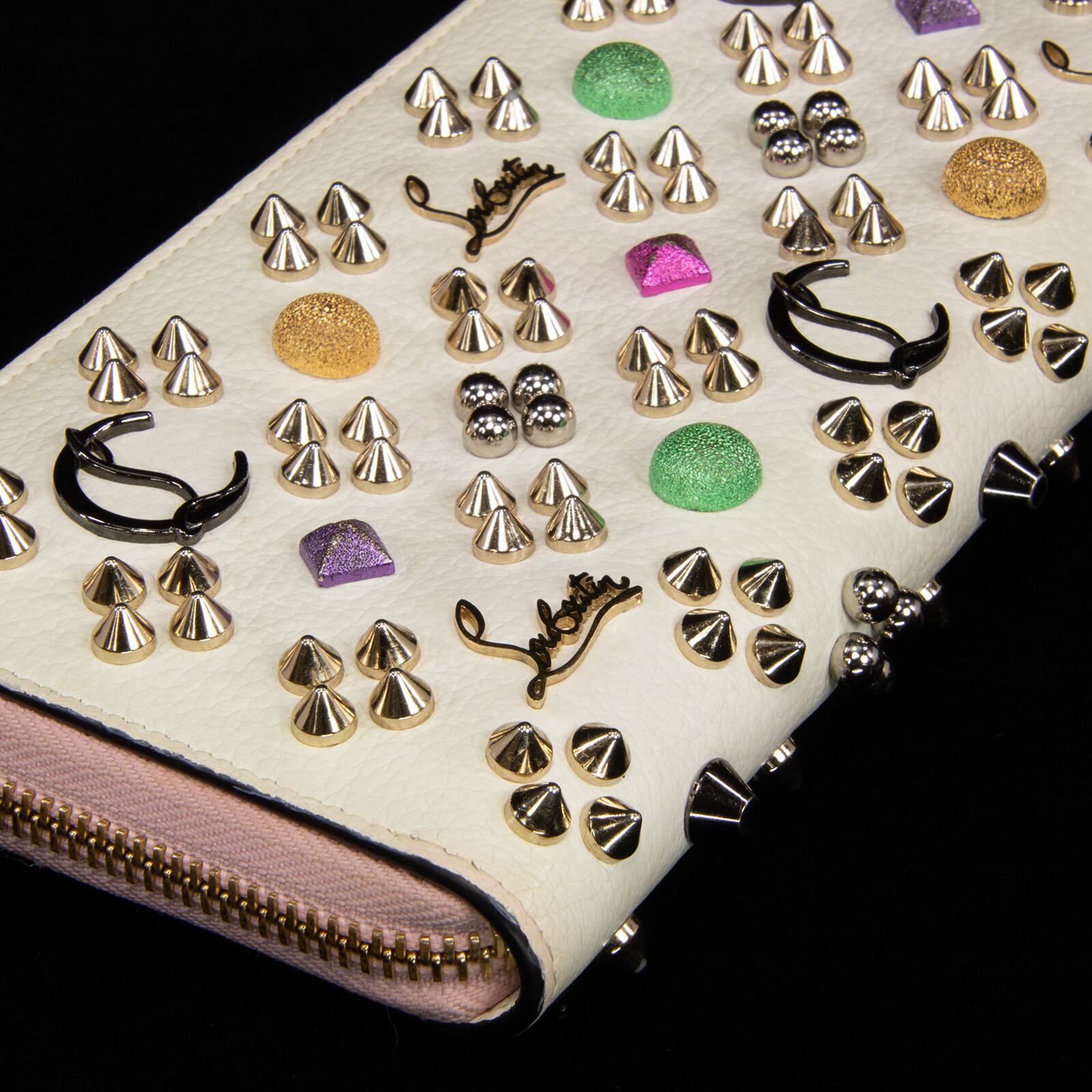 本物 送料無料 ルブタン 長財布 ラウンドファスナー レディース パネトーネ 白 ホワイト ピンク スタッズ トゲトゲ 綺麗 G082