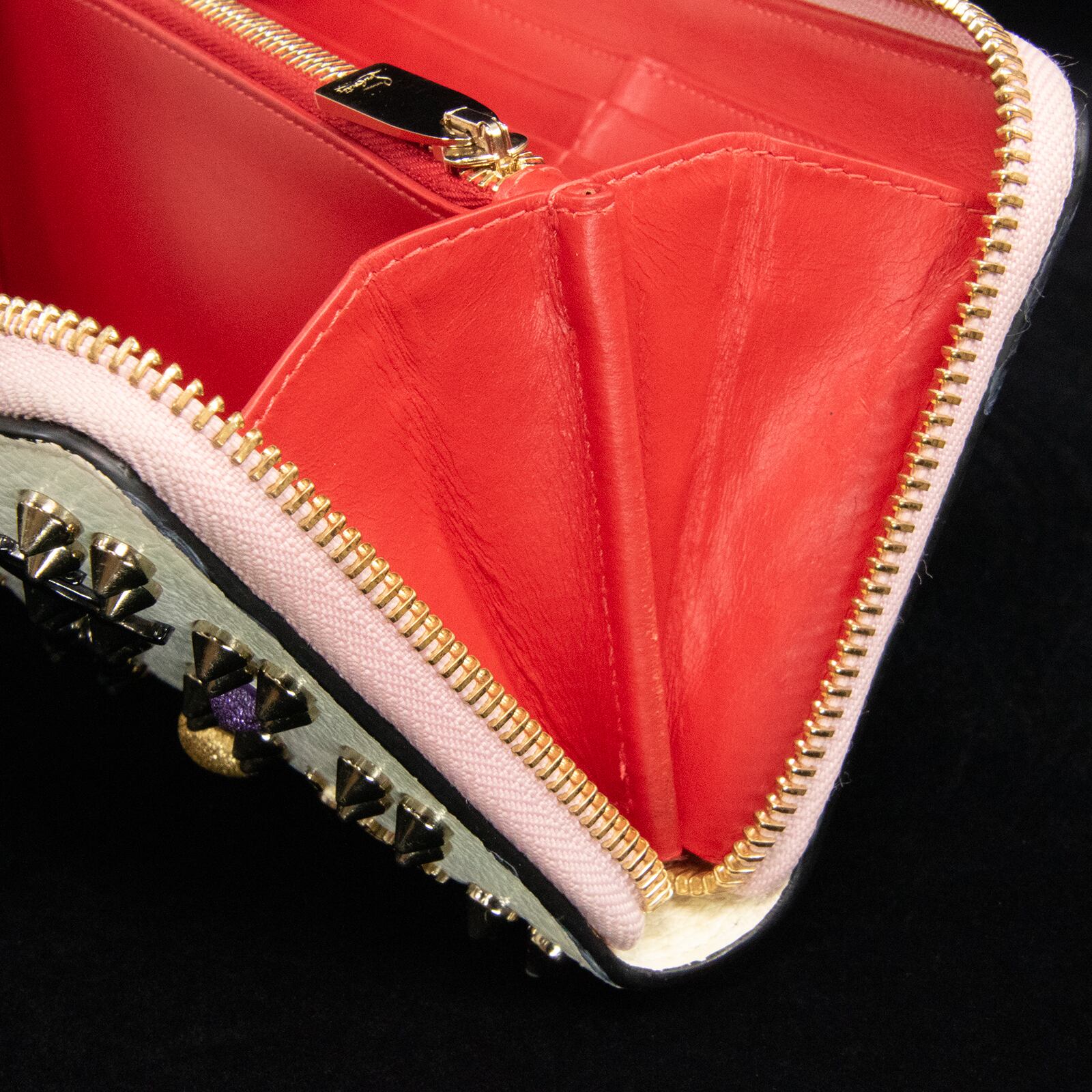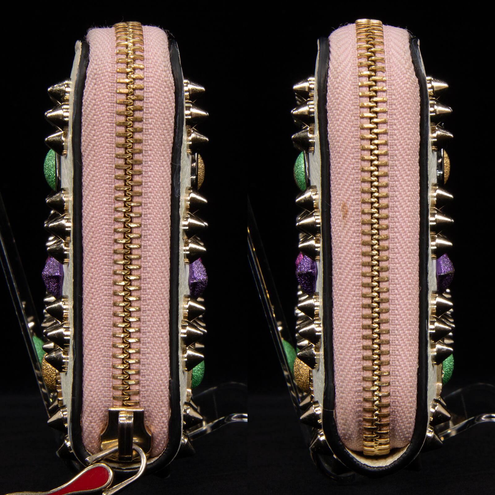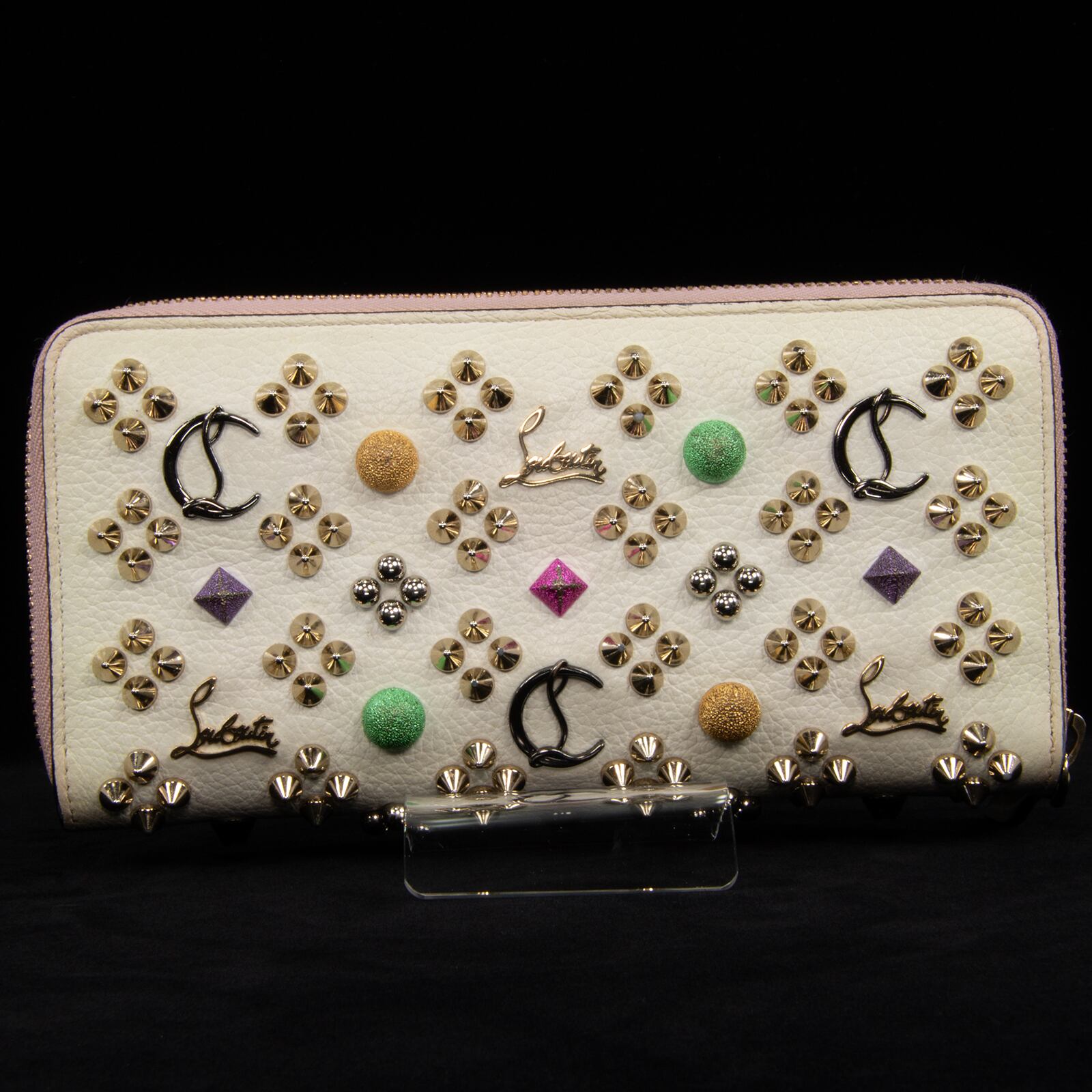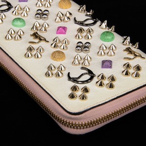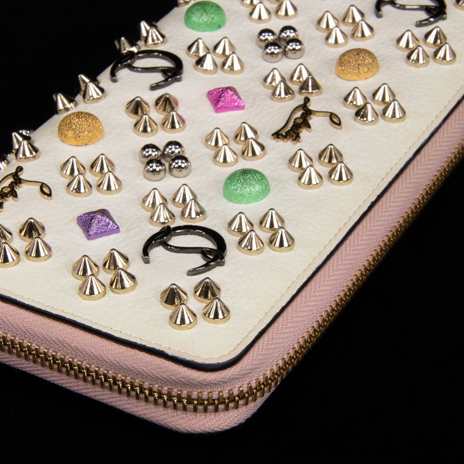 本物 送料無料 ルブタン 長財布 ラウンドファスナー レディース パネトーネ 白 ホワイト ピンク スタッズ トゲトゲ 綺麗 G082