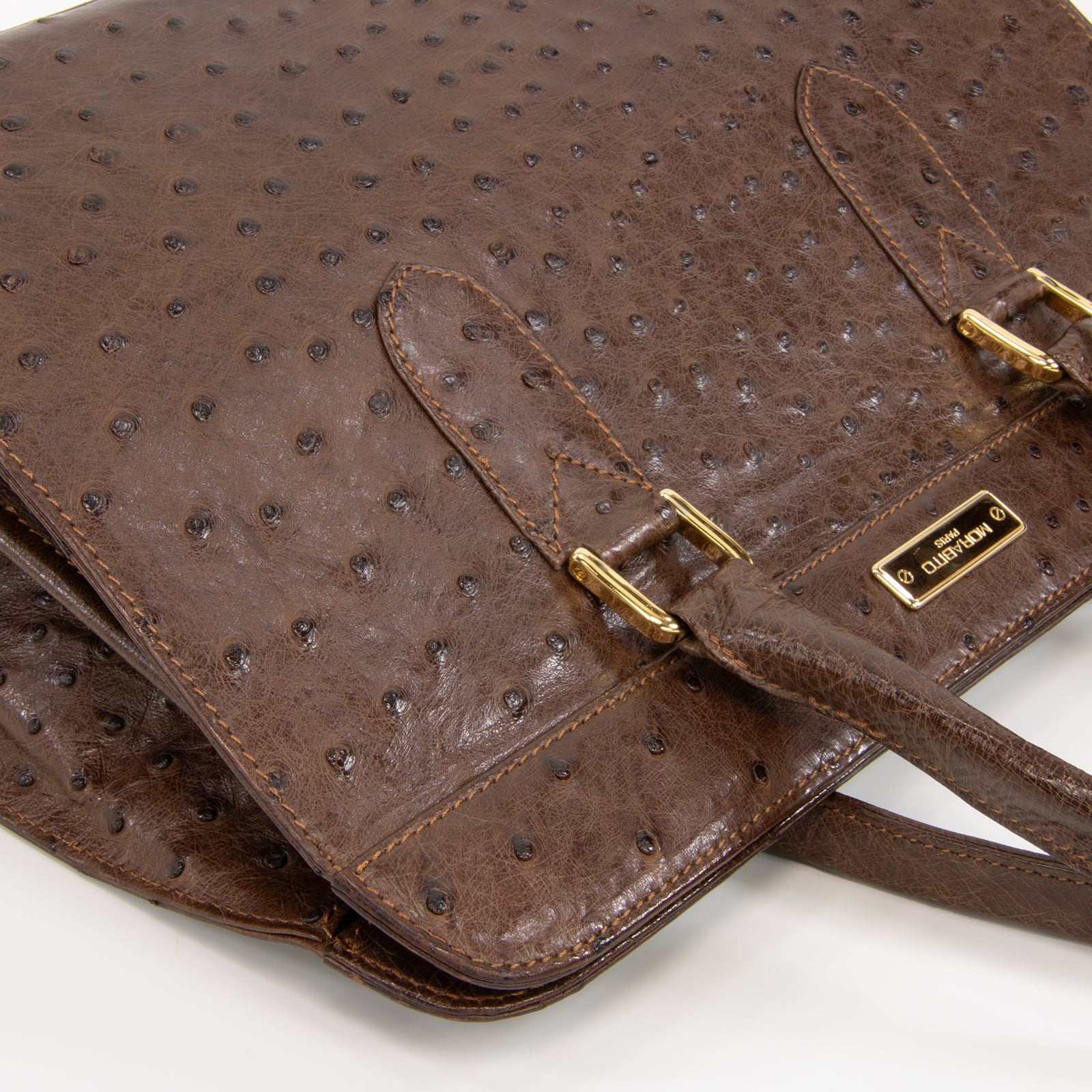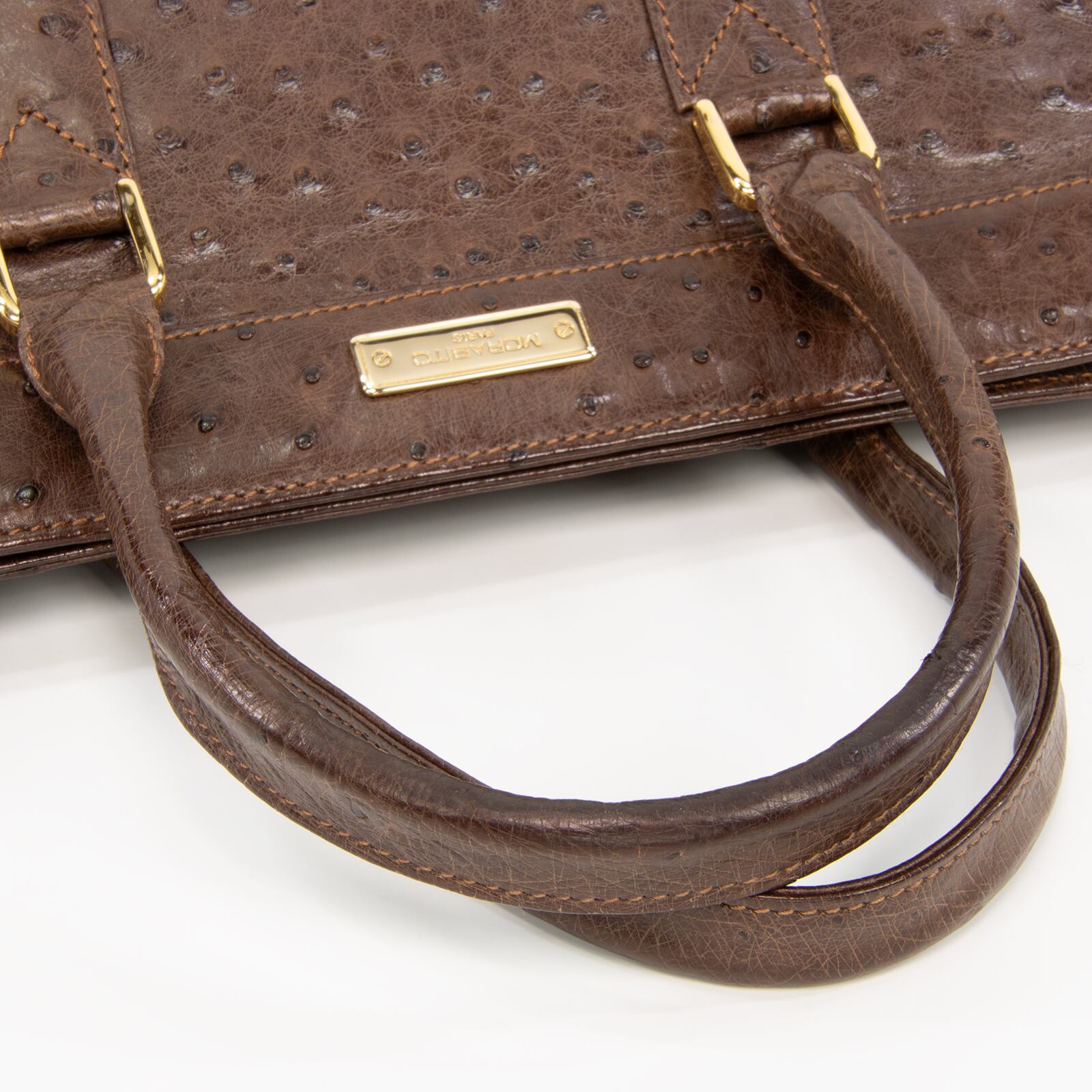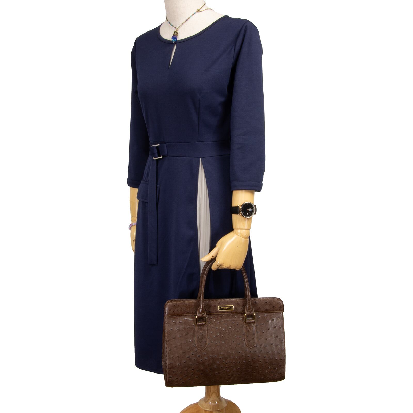 本物 送料無料 モラビト ハンドバッグ レディース オーストリッチ 茶色 ブラウン 革 レザー 自立 かっちり 綺麗 鞄 バック I169