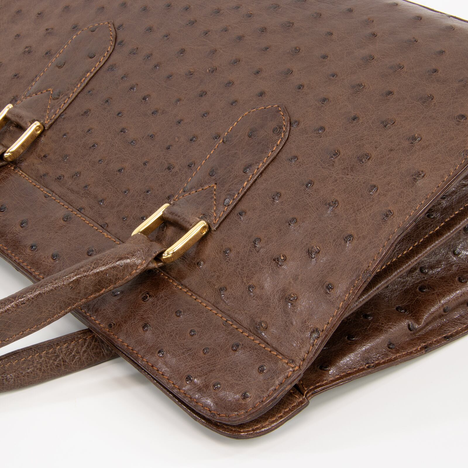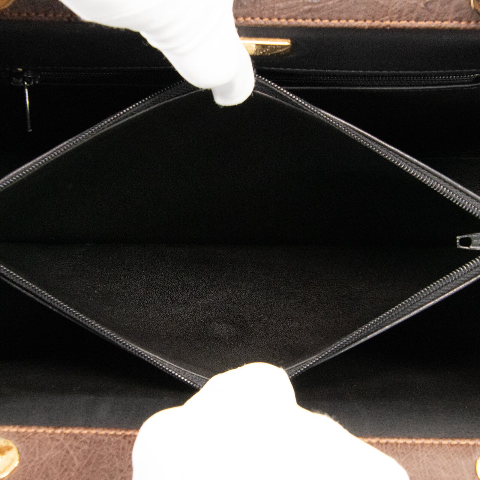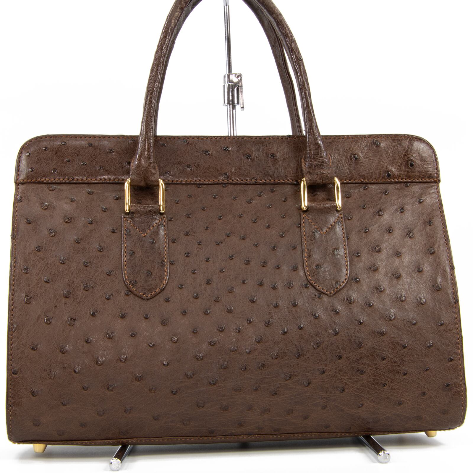 本物 送料無料 モラビト ハンドバッグ レディース オーストリッチ 茶色 ブラウン 革 レザー 自立 かっちり 綺麗 鞄 バック I169