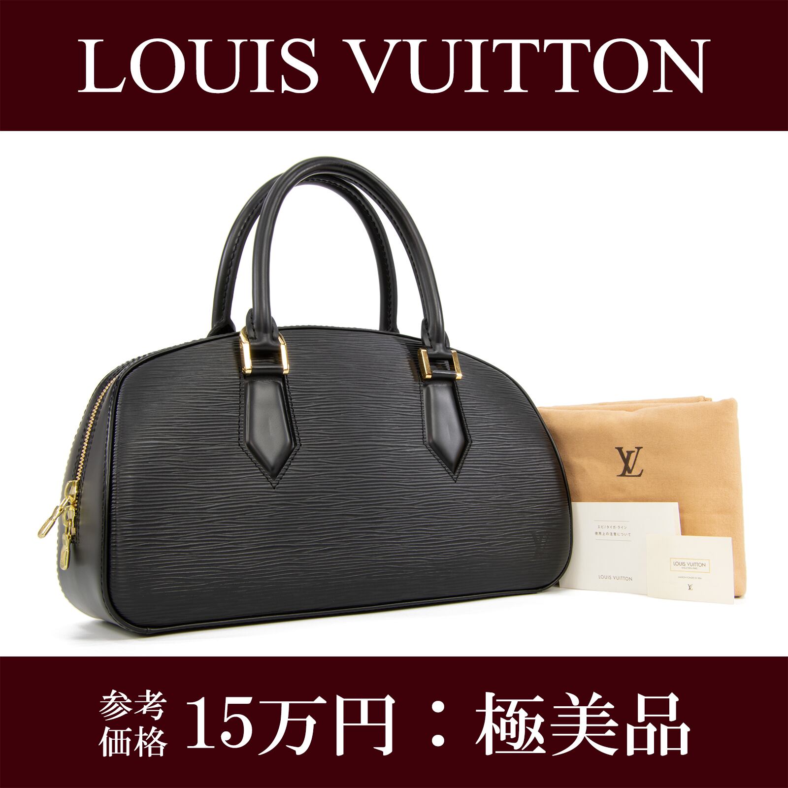 本物 送料無料 ヴィトン ハンドバッグ レディース ジャスミン ノワール 黒 ブラック 革 レザー 自立 かっちり 綺麗 バック I173