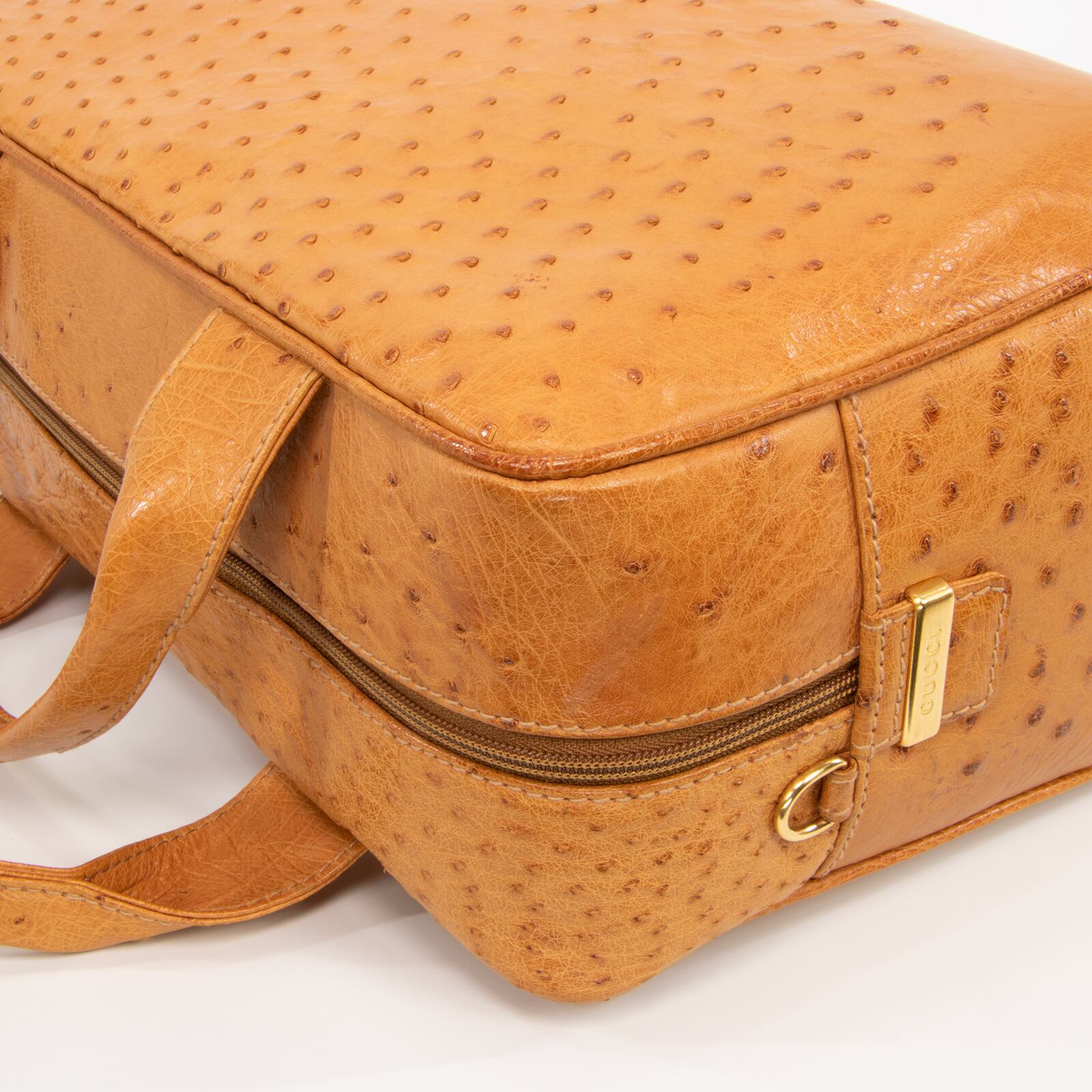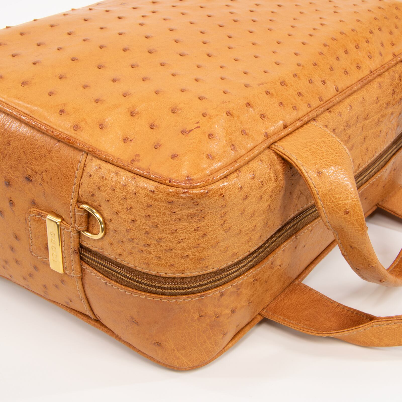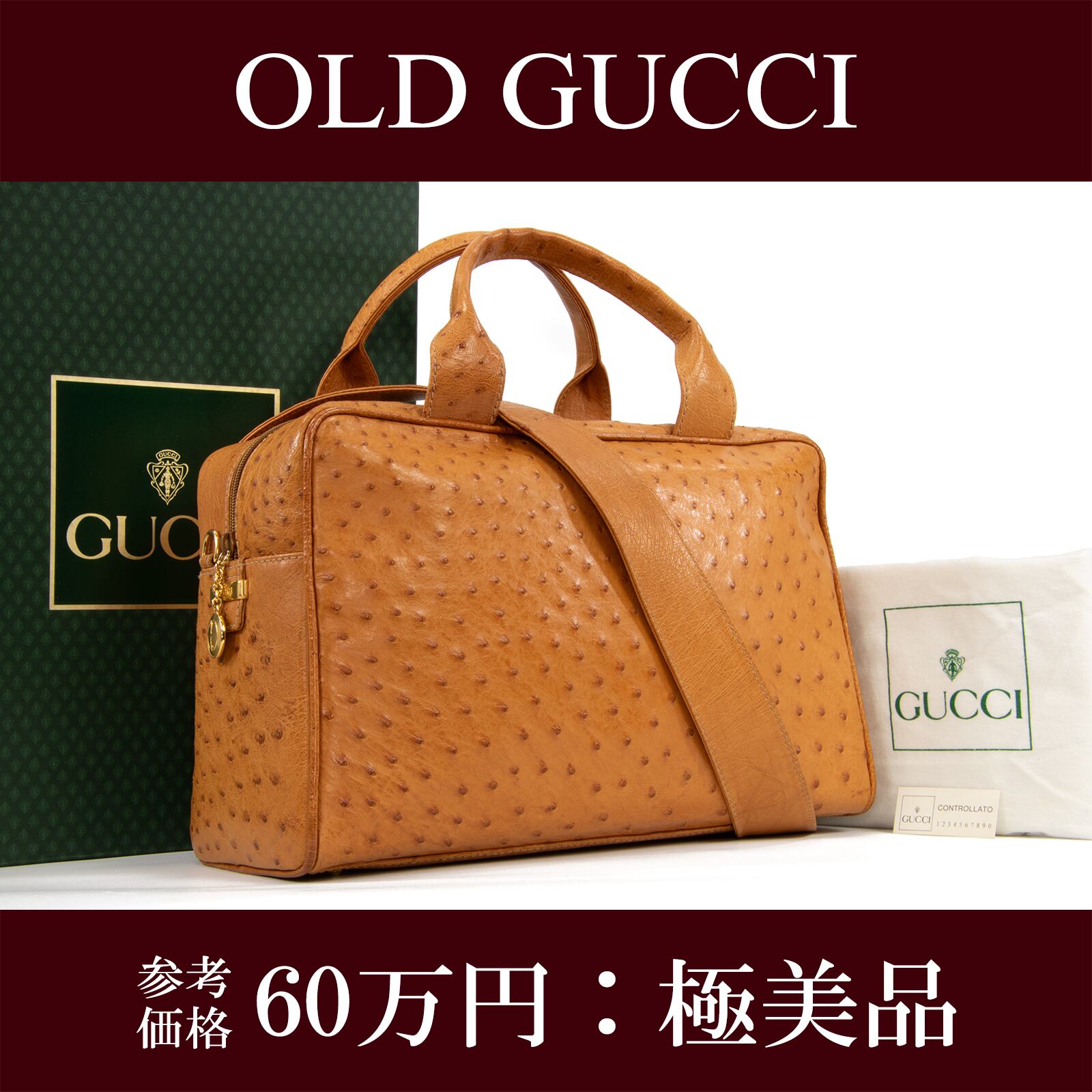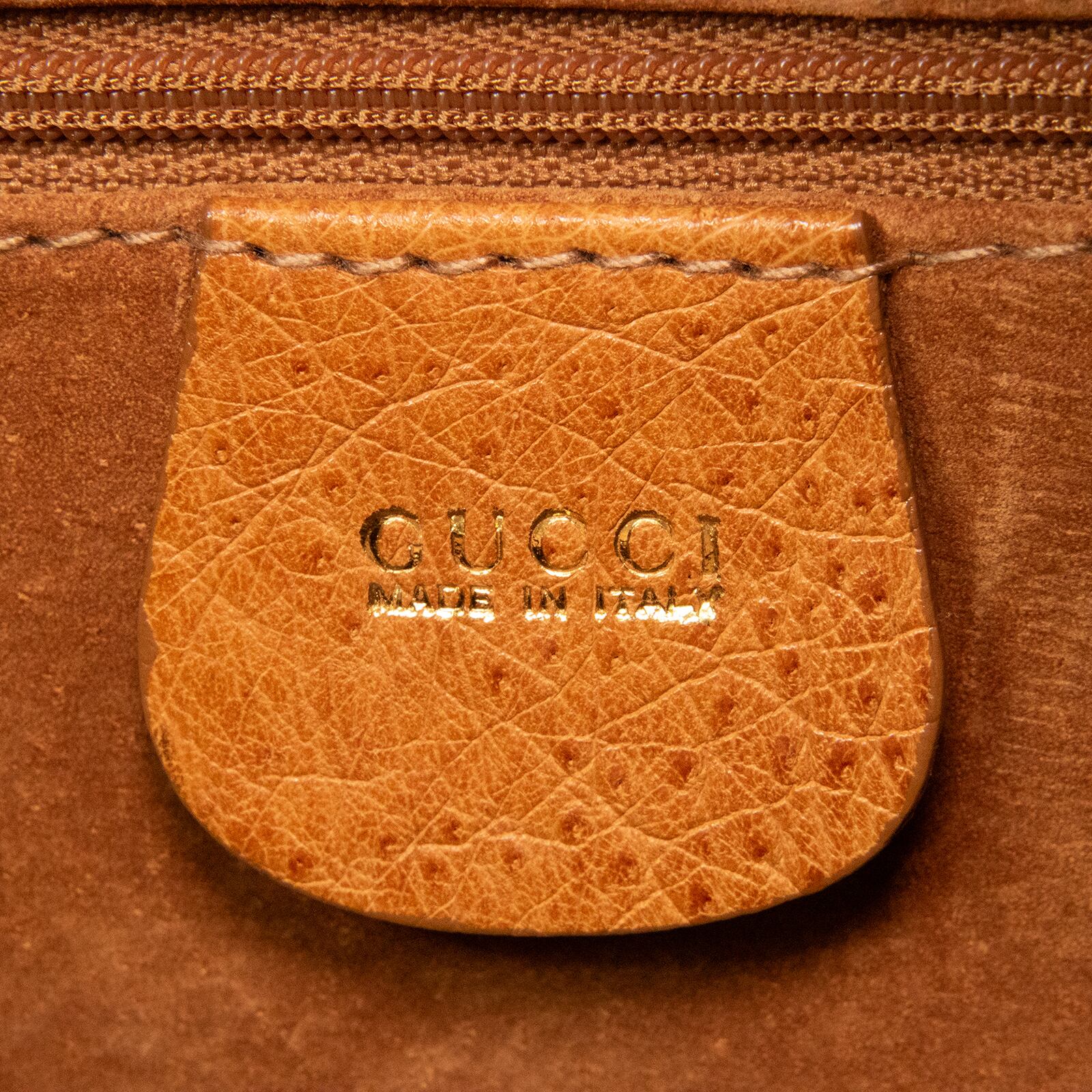 本物 送料無料 オールドグッチ 2WAYショルダーバッグ ハンドバッグ メンズ レディース オーストリッチ 茶色 斜め掛け 綺麗 I178