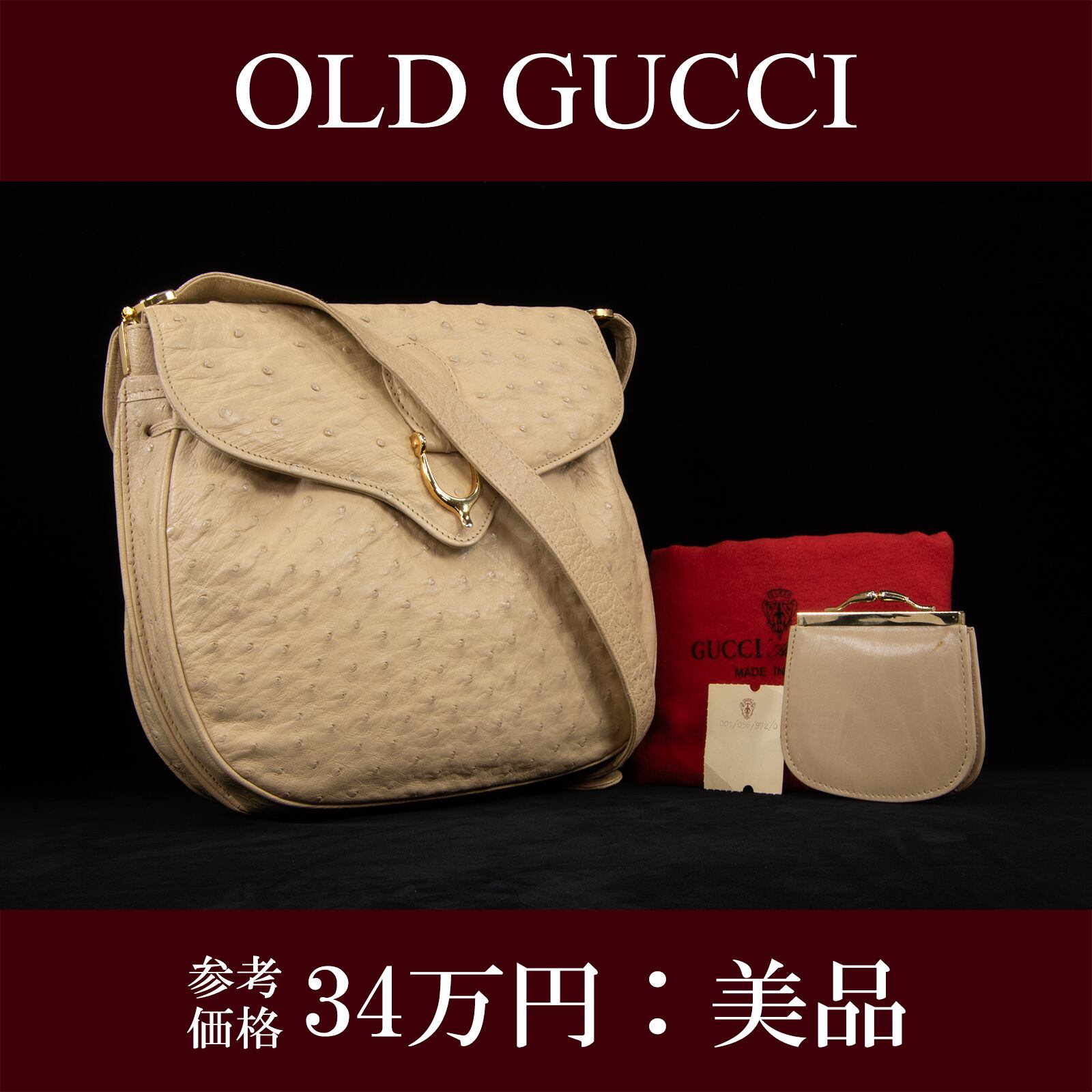 本物 送料無料 オールドグッチ ハンドバッグ セミショルダーバッグ レディース オーストリッチ 革 レザー 馬具 鞄 バック E326