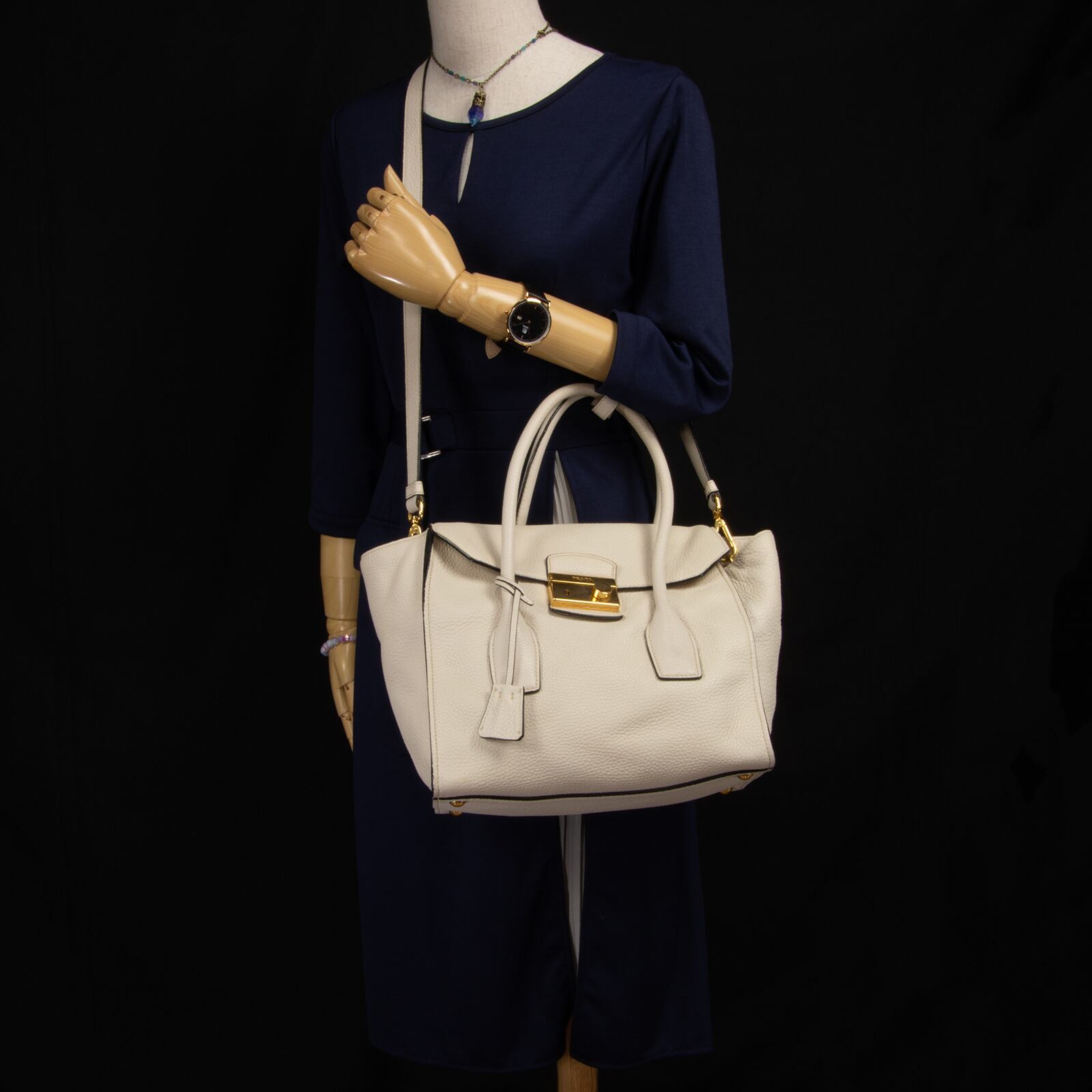 本物 送料無料 プラダ 2WAYショルダーバッグ ハンドバッグ レディース ヴィッテロ ダイノ 白 ホワイト 斜め掛け 革 レザー E336