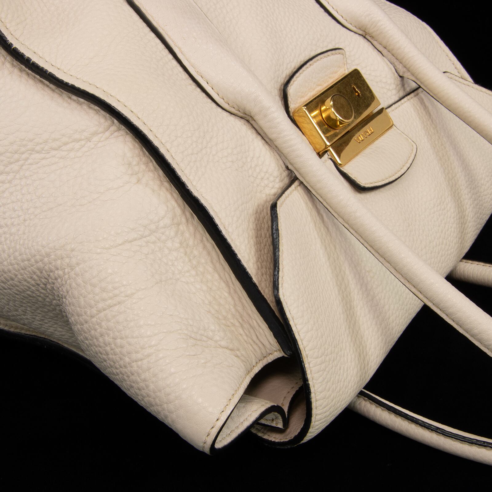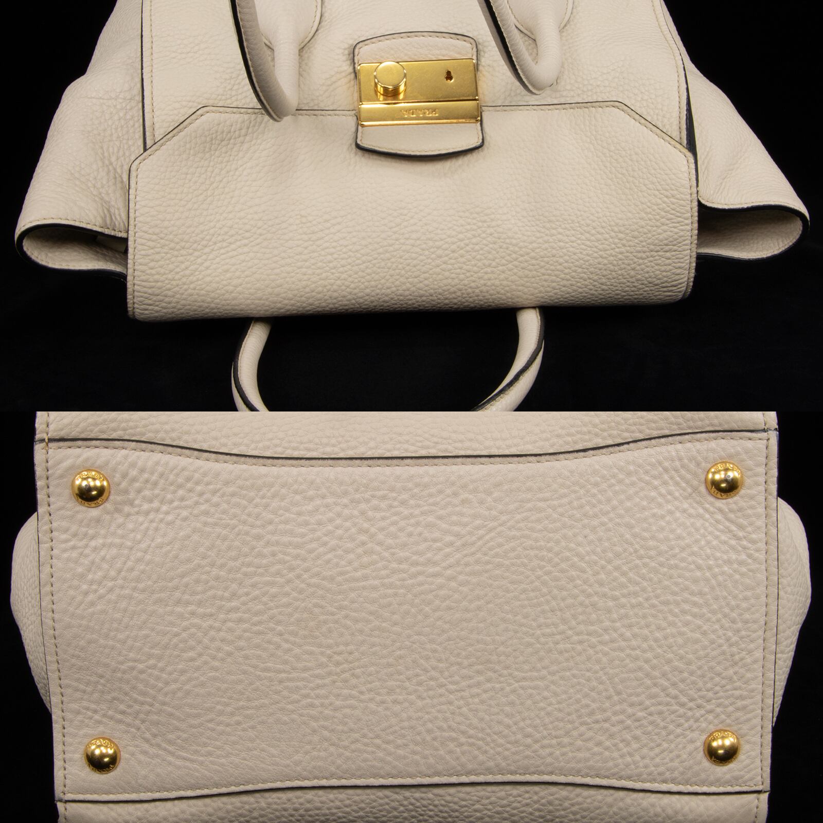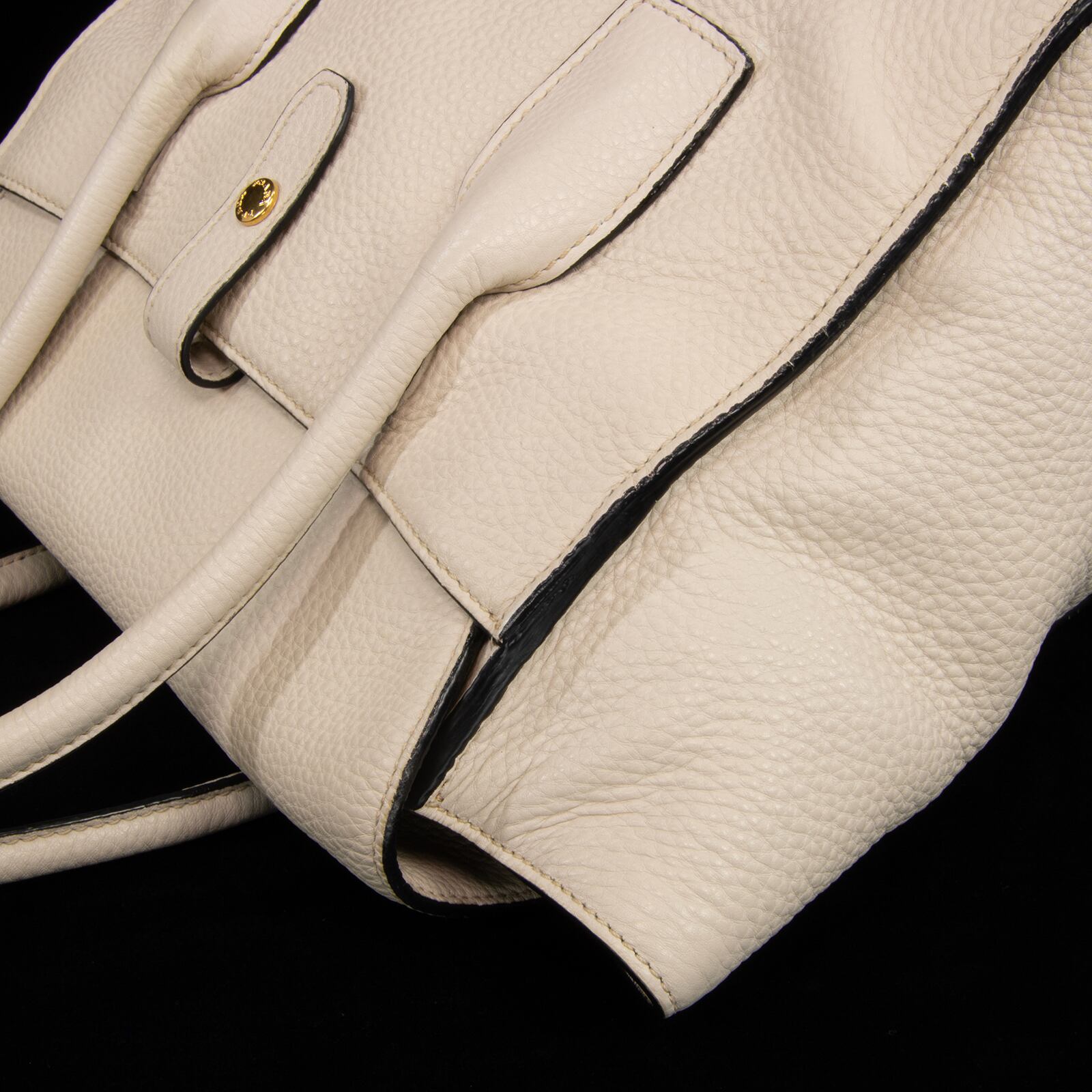 伝統製法で鞣した最高級子牛革をあしらっており、細部までシワがヴィンテージ風に仕上げられ、エレガンスで洗練された印象のホワイトカラーの子牛革・前面などのPRADAのロゴと相まって、一目でプラダとわかる存在感とただならぬ雰囲気にうっとりさせられます。