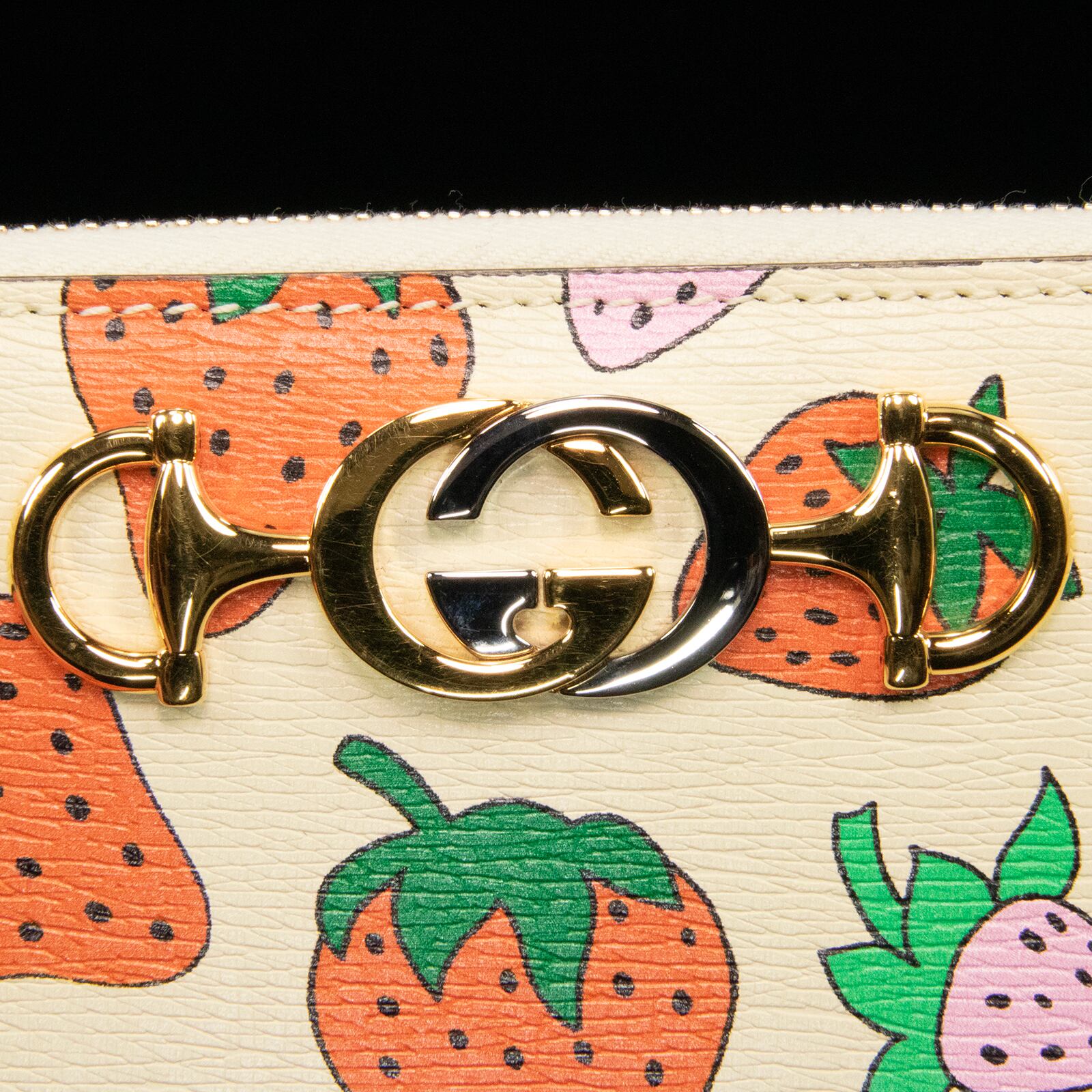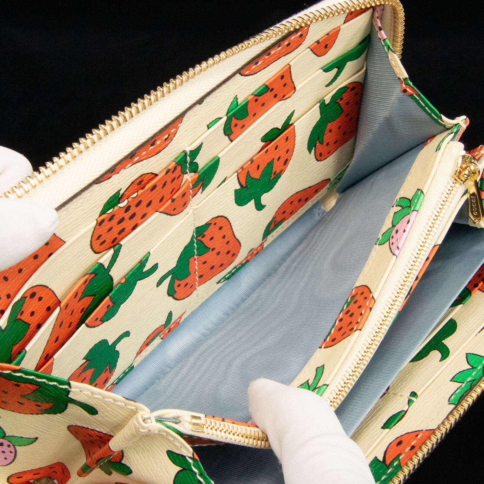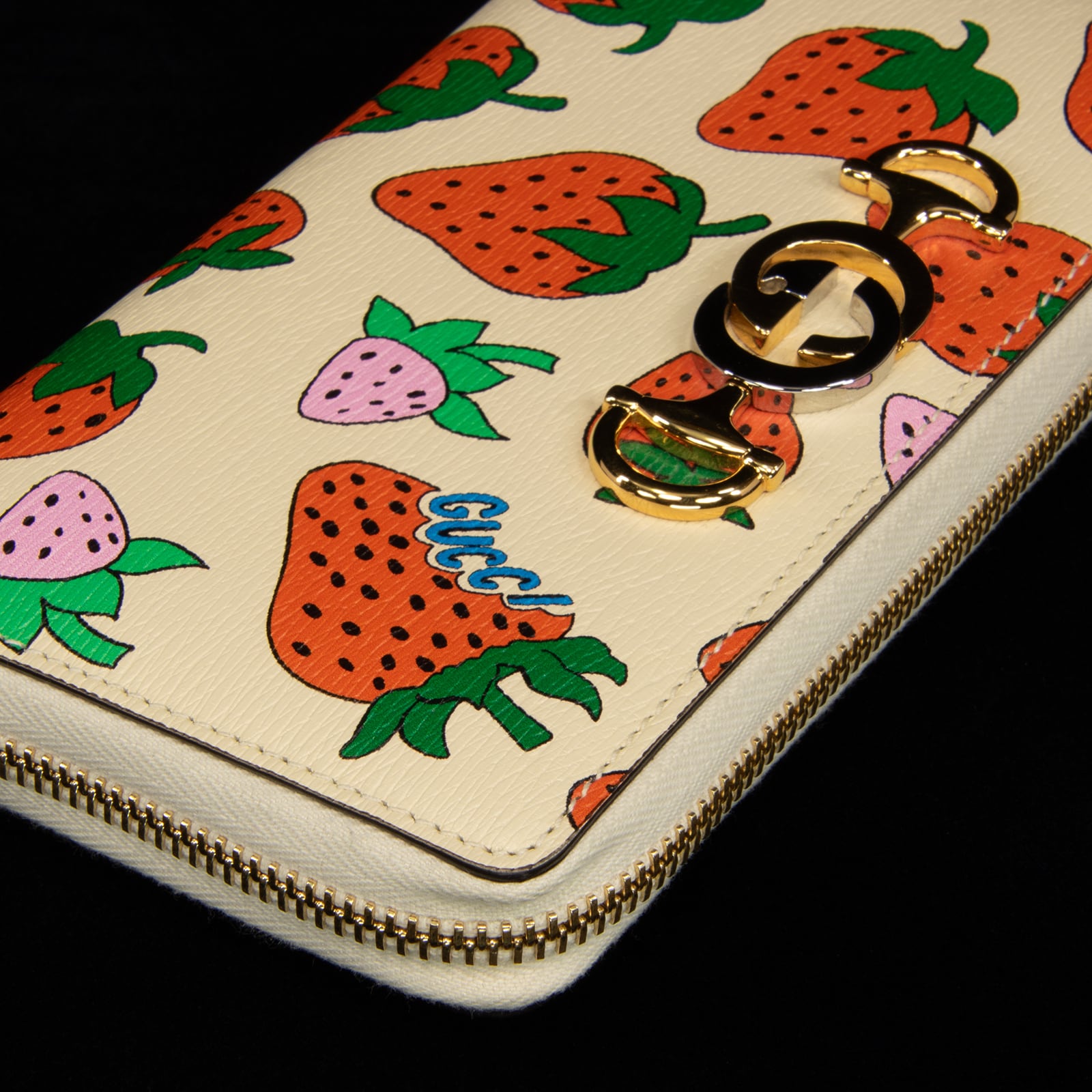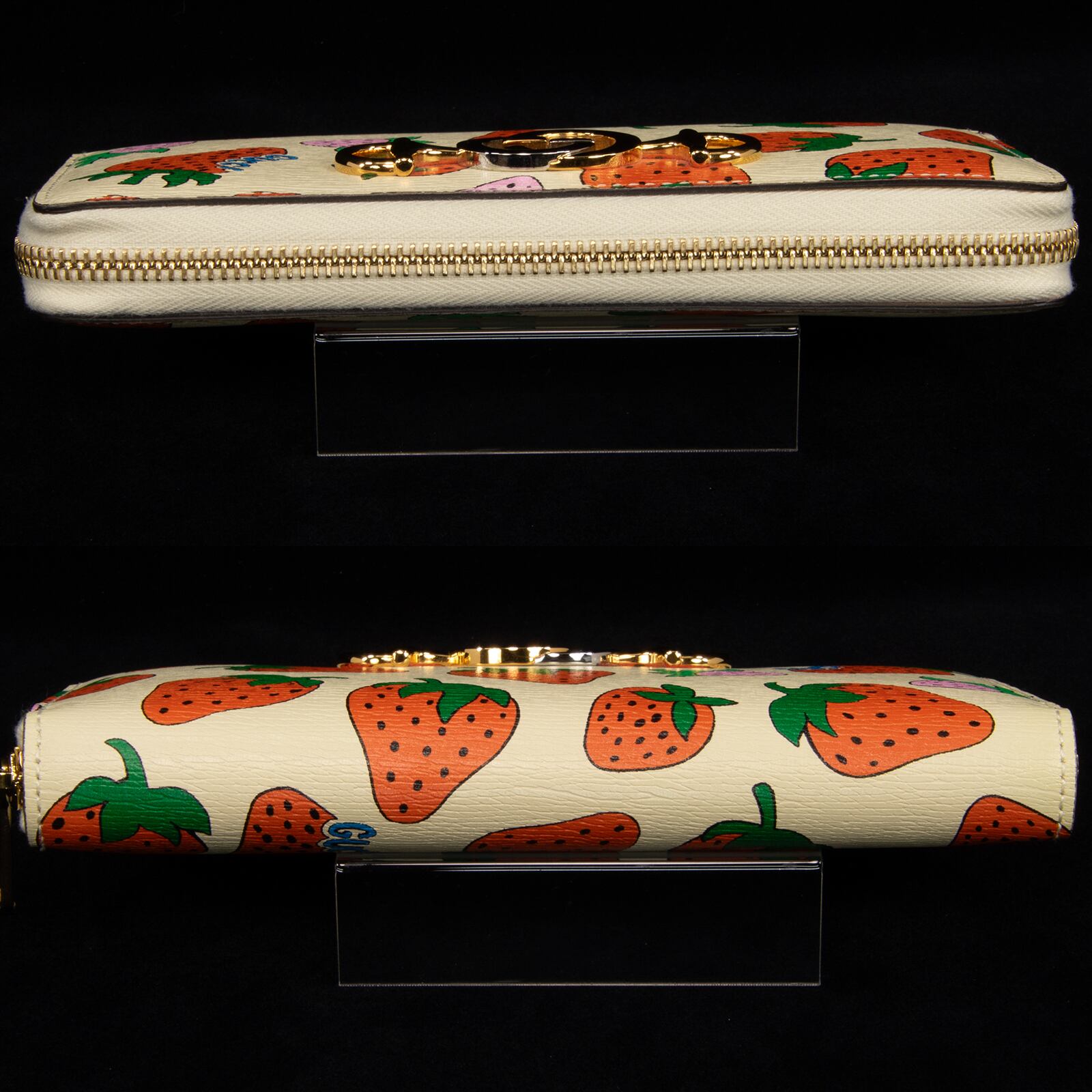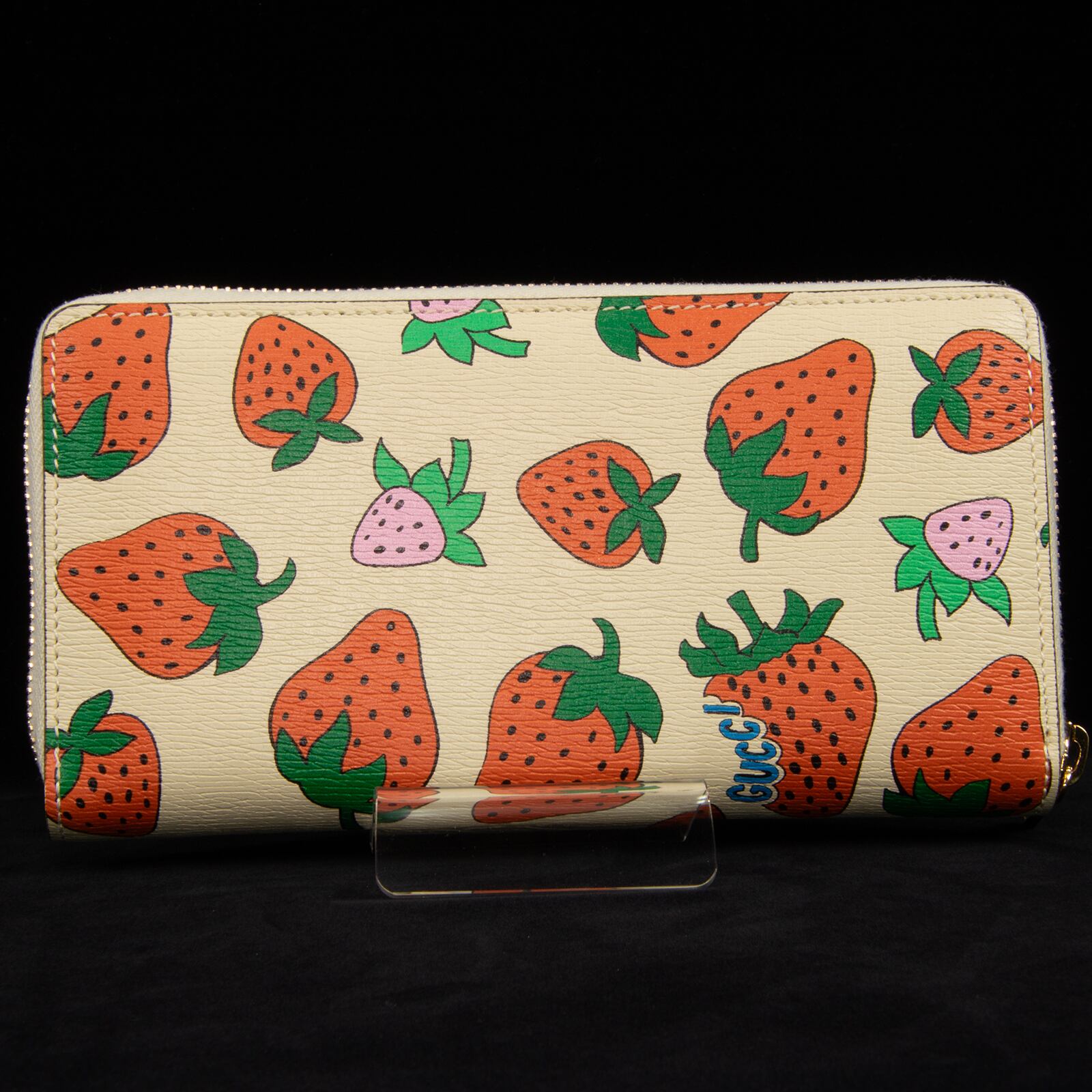 本物 送料無料 グッチ 長財布 ラウンドファスナー 新品同様 レディース ズゥミ 2019年春夏限定 赤 ピンク ホースビット 苺 D171