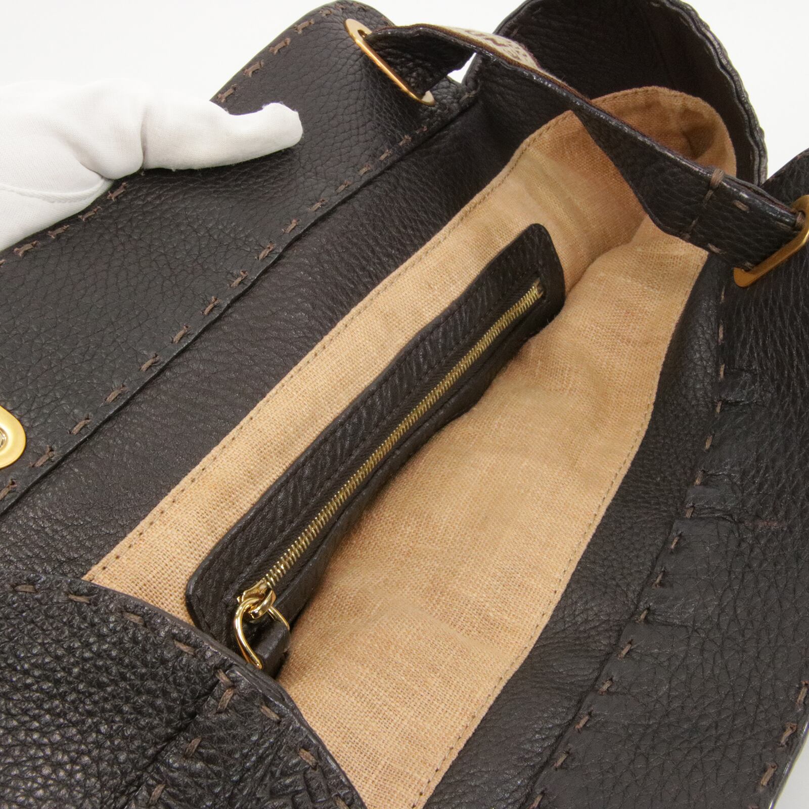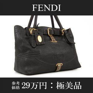 本物 送料無料 フェンディ ハンドバッグ メンズ レディース セレリア ヴィラボルゲーゼ 茶色 ブラウン 馬 ホース ロゴ 綺麗 鞄 バック B236