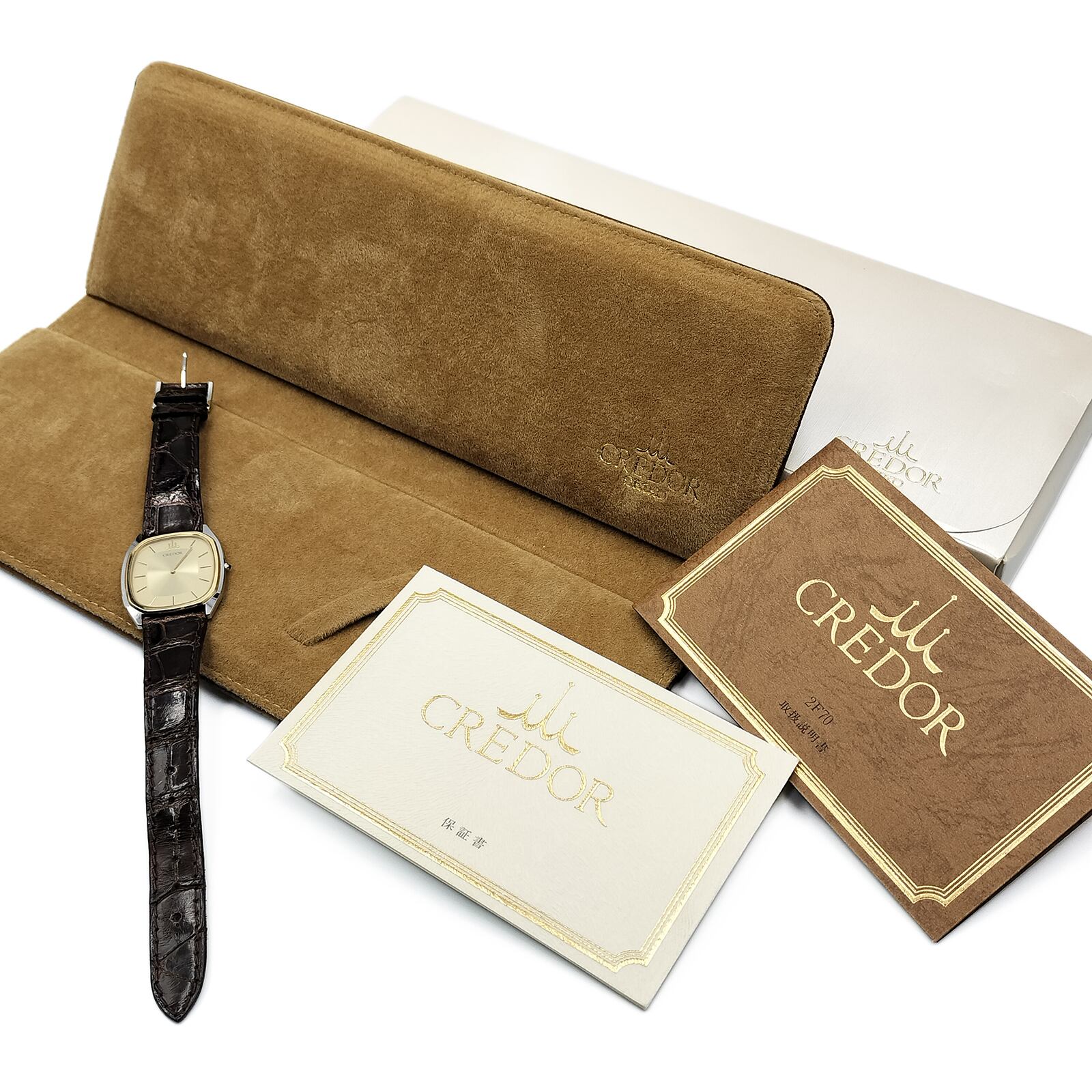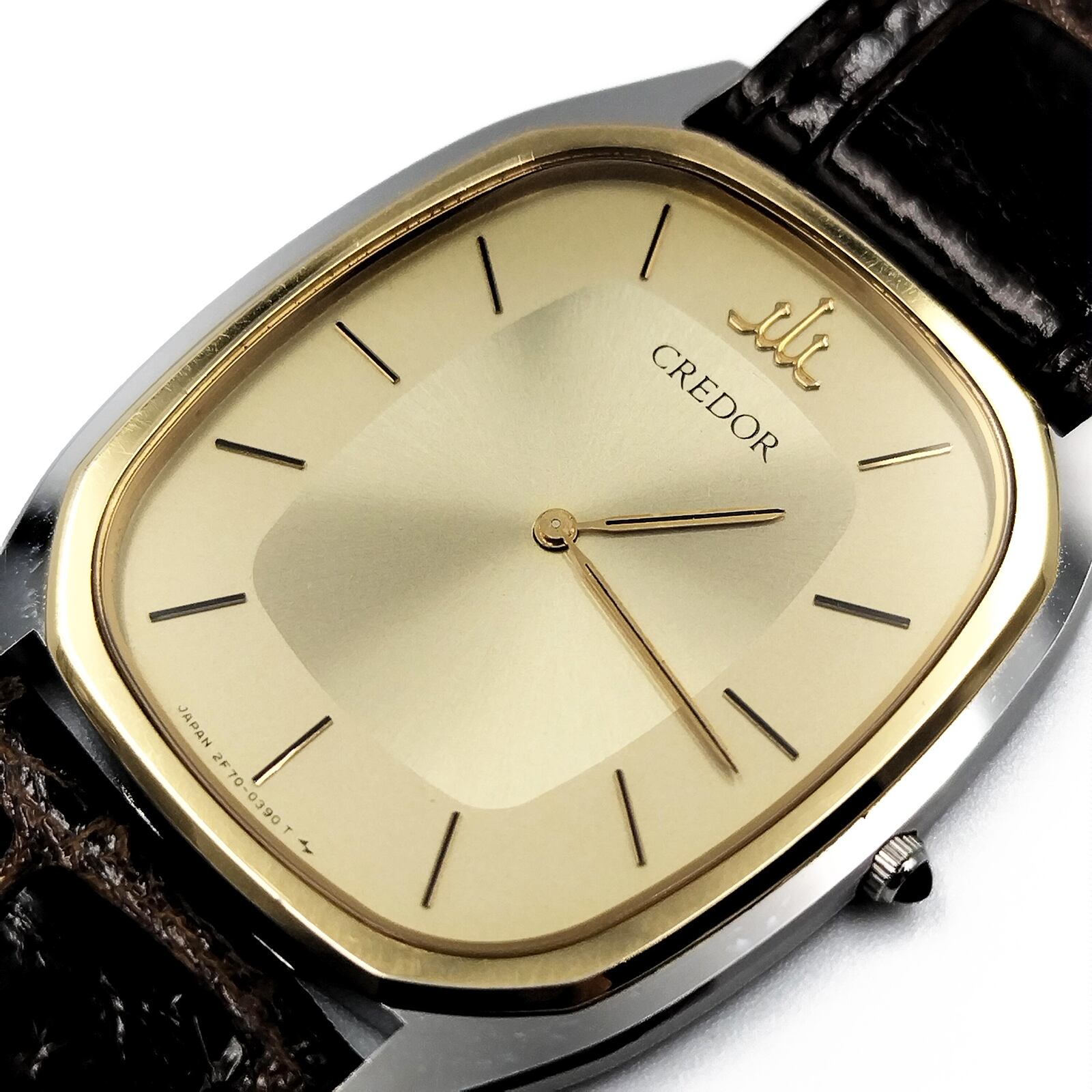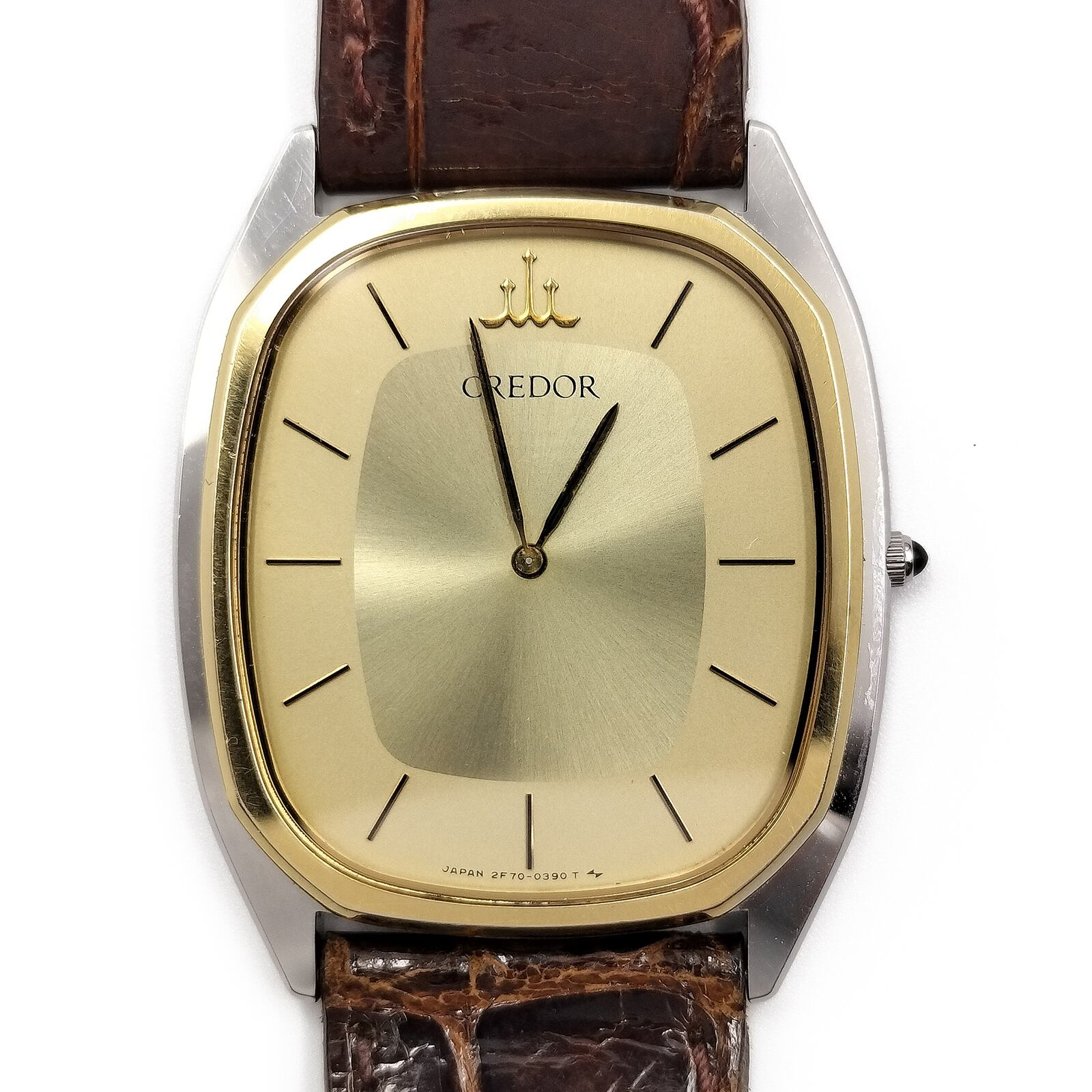 SEIKO セイコー 腕時計 クオーツ CREDOR クレドール レディース 2F70-5350 ドレスウォッチ ヴィンテージ 14金ゴールド 茶色 革ベルト X001