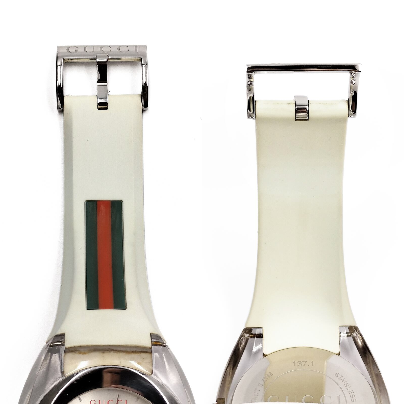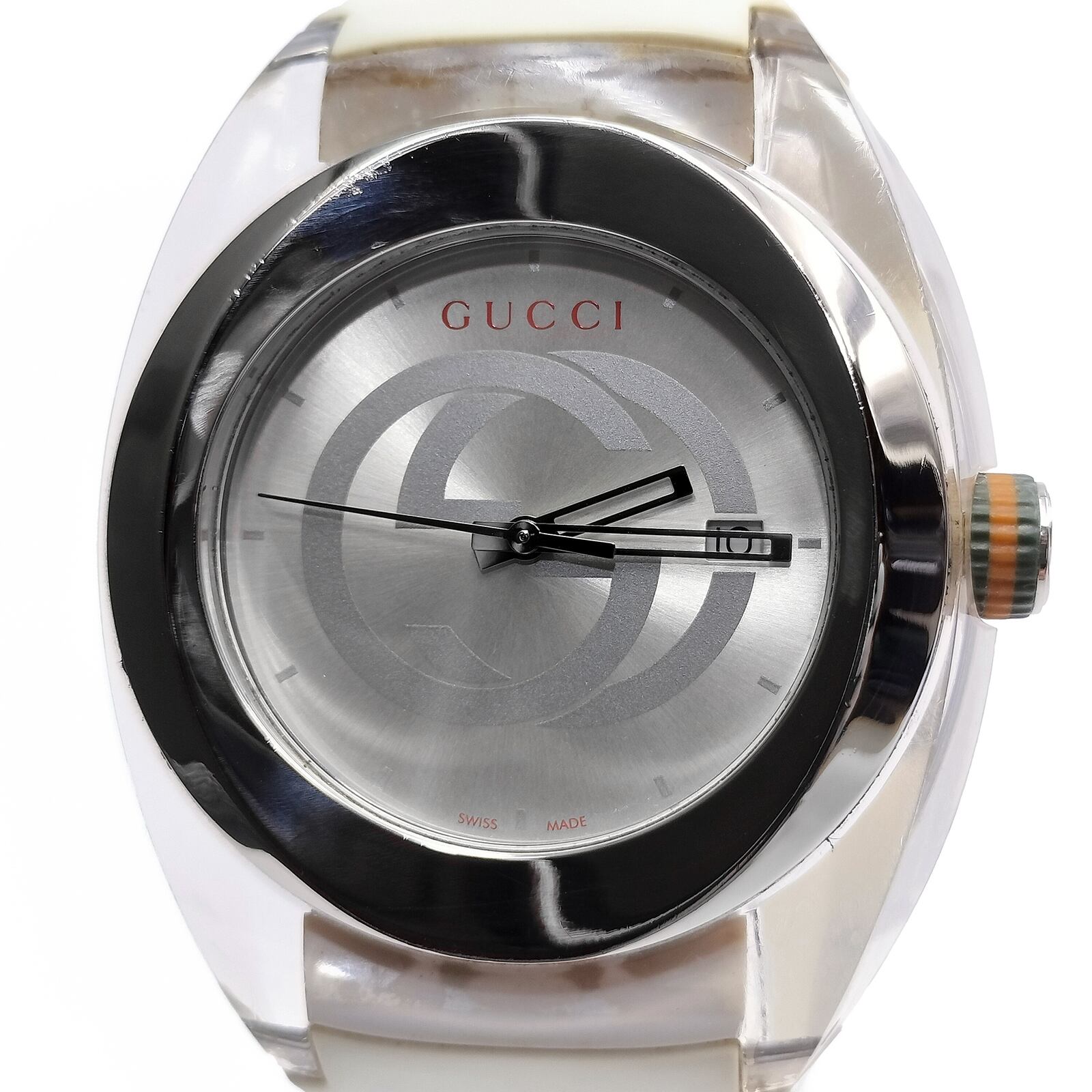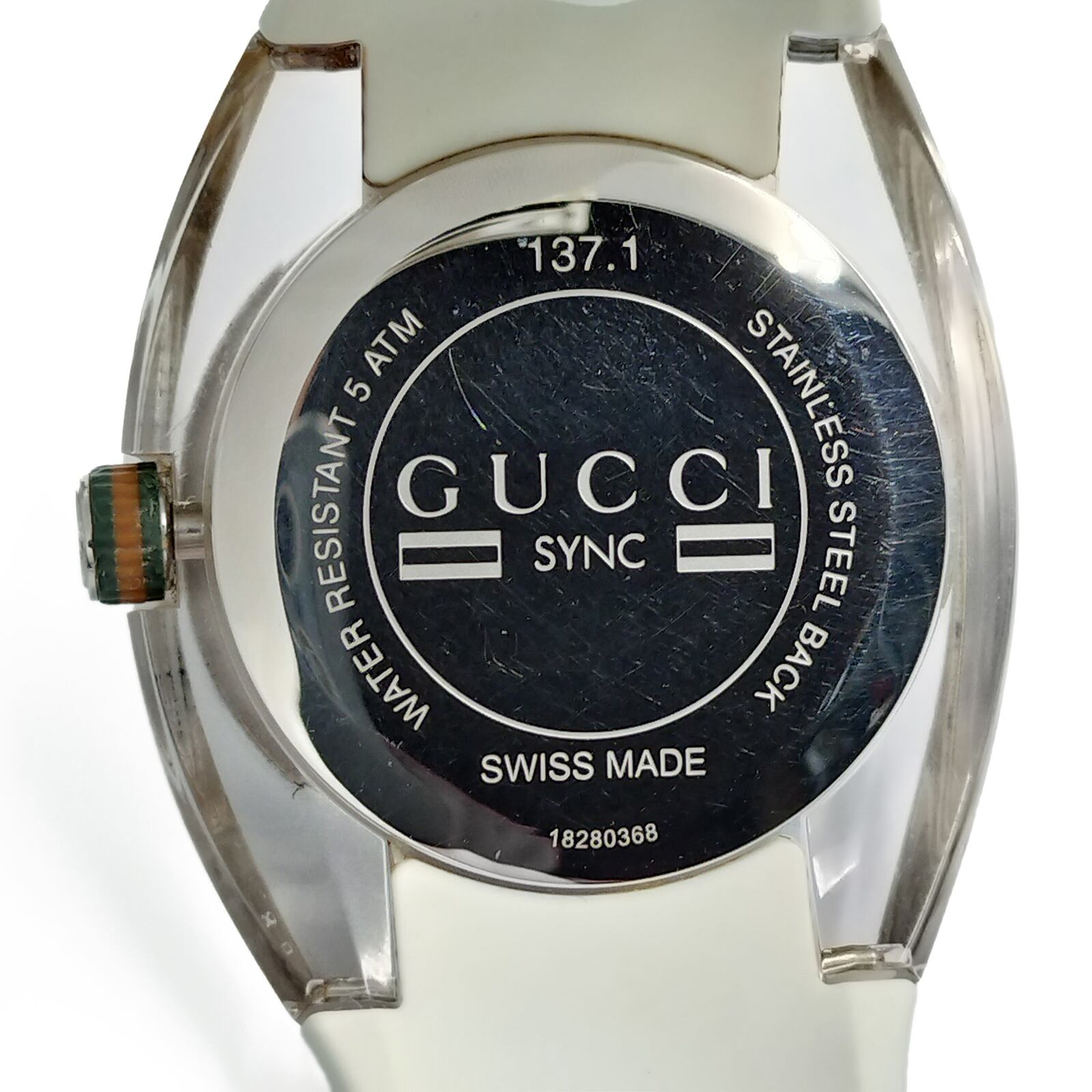 送料無料 GUCCI グッチ 腕時計 クオーツ SYNC シンク メンズ ユニセックスモデル インターロッキングG シェリーライン ホワイト系 グリーン X004