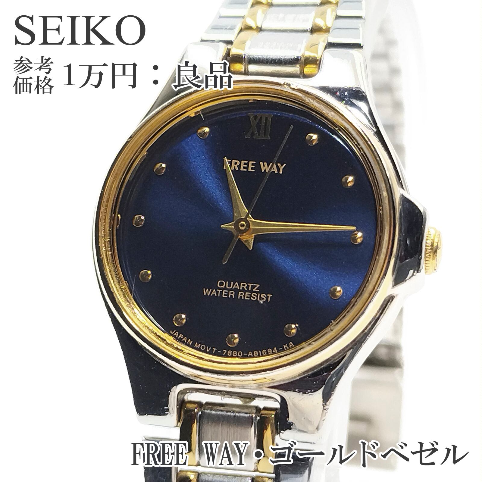 送料無料 セイコー 腕時計 クォーツ FREEWAY フリーウェイ 7680-A85005 レディース ボーイズ ゴールド ブルー コンビカラー シンプル X009
