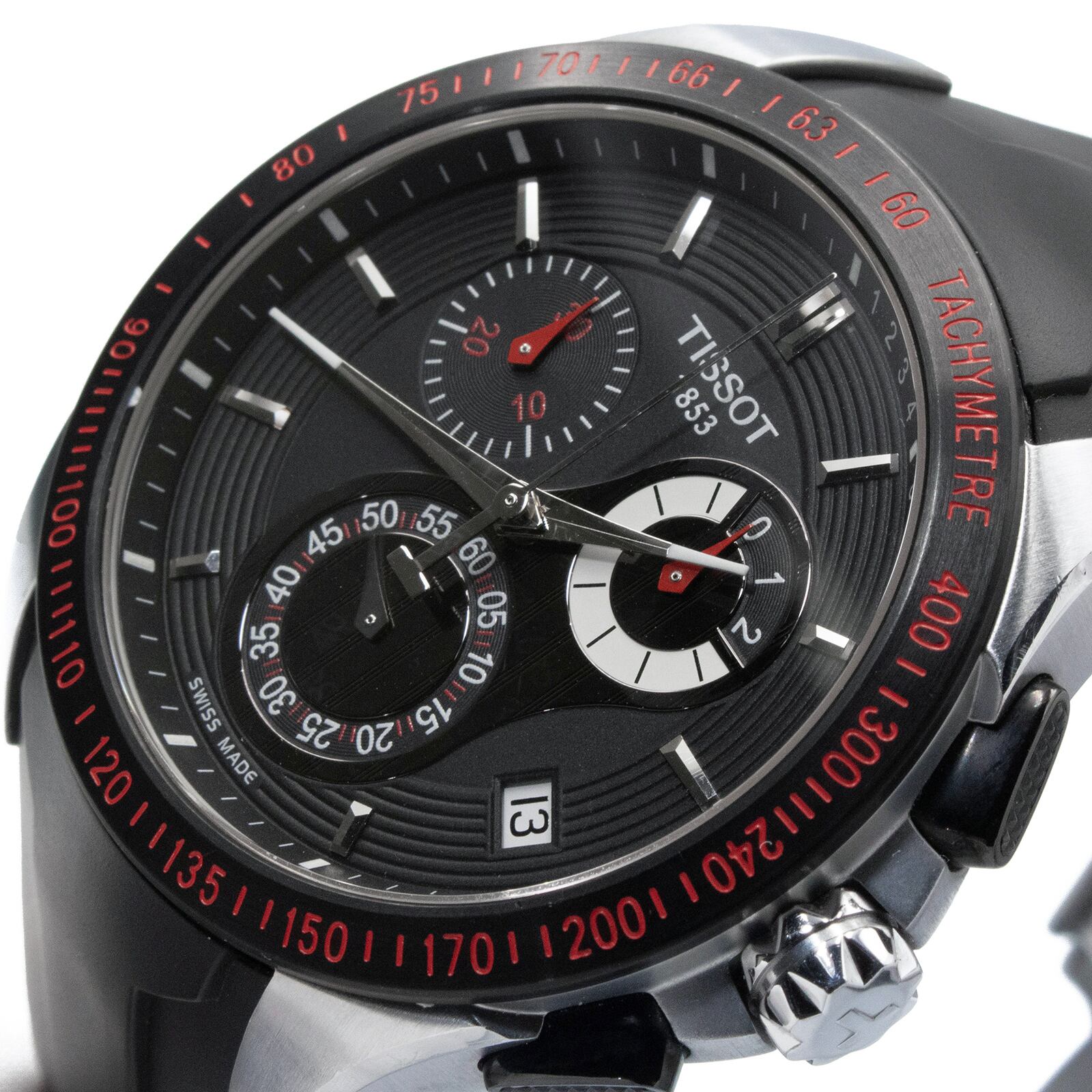 送料無料 TISSOT ティソ 腕時計 クオーツ Veloci-T メンズ スポーツウォッチ スモセコ デイト表示 海外限定モデル ブラック シルバー 綺麗 X014