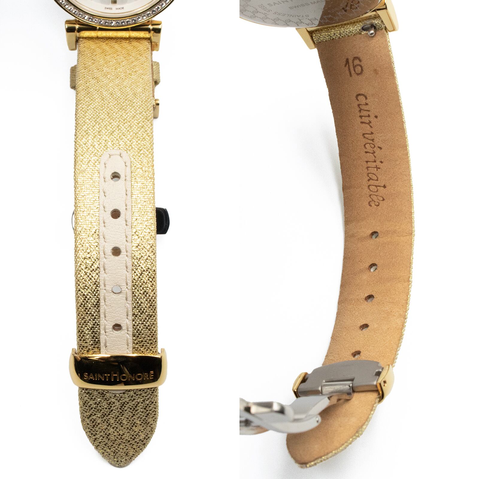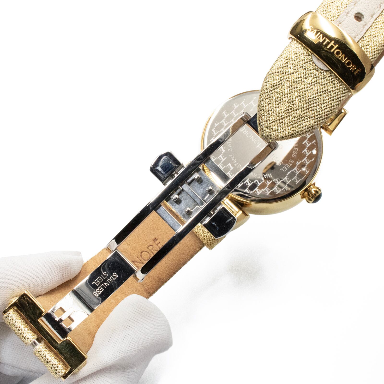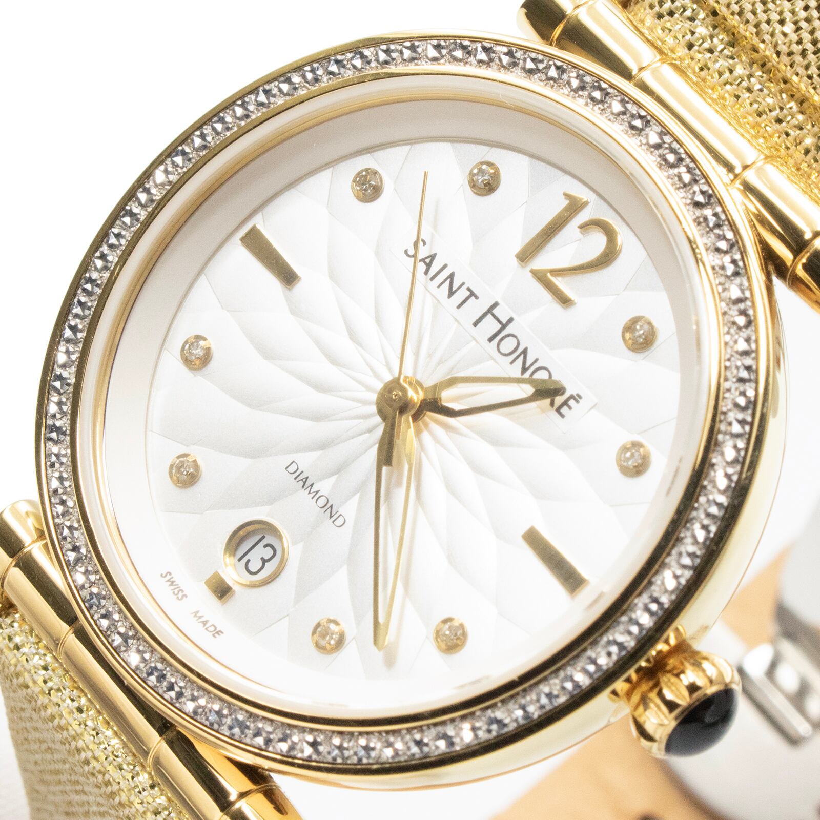 送料無料 SAINT HONORE サントノーレ 腕時計 クオーツ 新品 レディースウォッチ 8Pダイヤモンド ロゴ ビジューベゼル ゴールド金具 綺麗 Q007