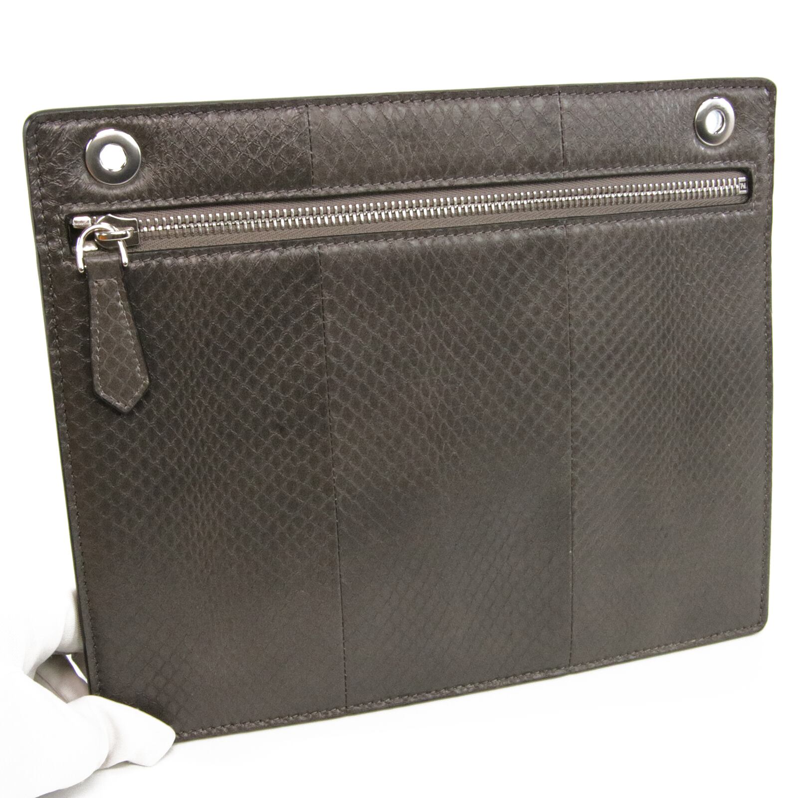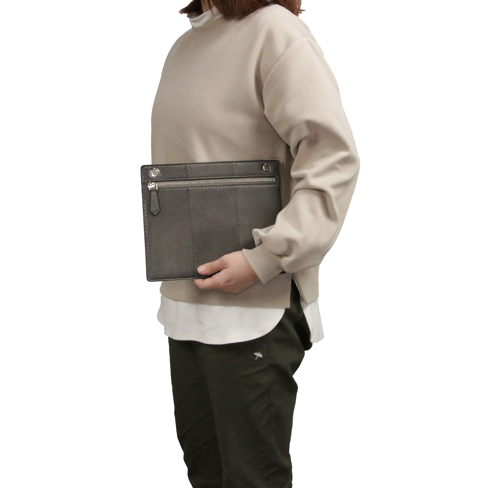 本物 送料無料 フェンディ クラッチバッグ セカンドバッグ 新品 メンズ レディース パイソン ズッカ グレー FFロゴ スリム 鞄 バック B240