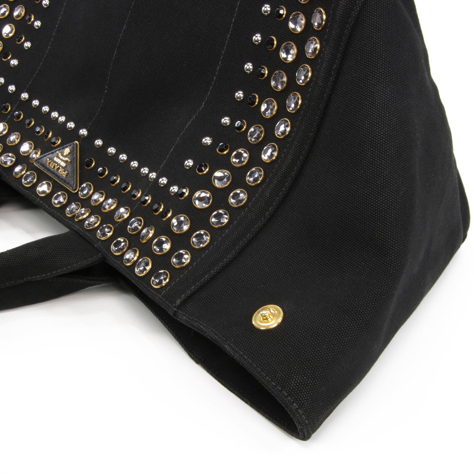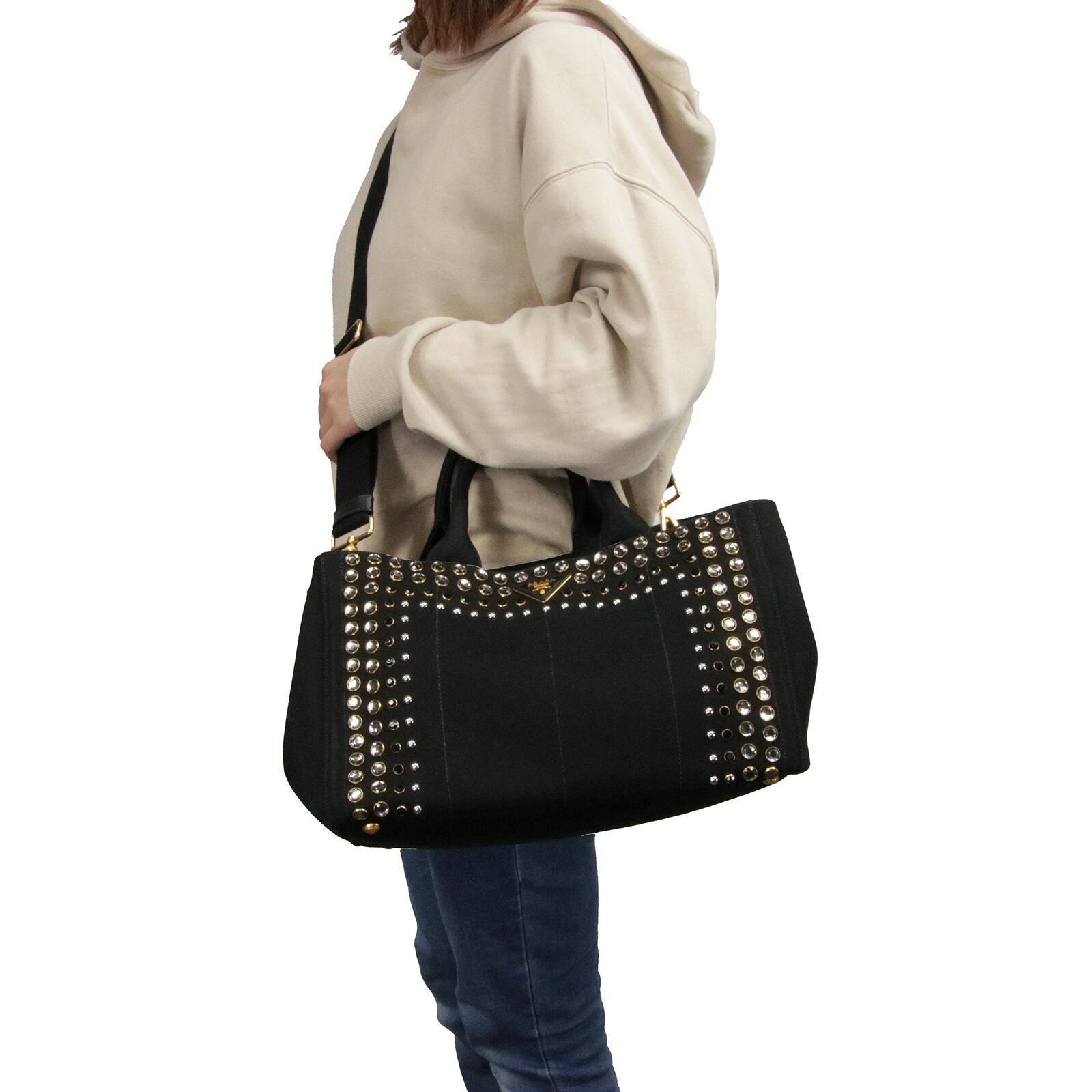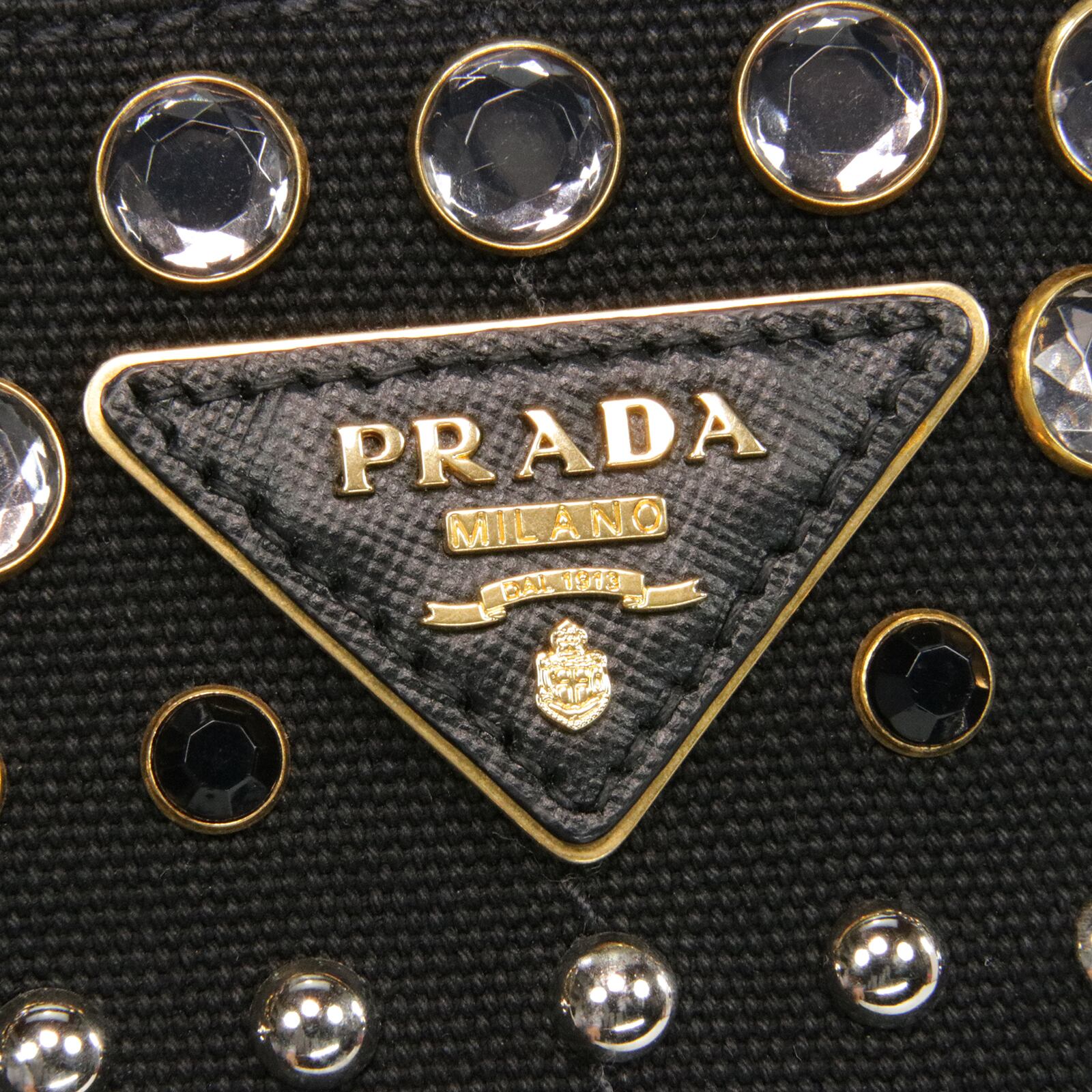 本物 送料無料 プラダ 2WAYショルダーバッグ ハンドバッグ レディース レザー カナパ Mサイズ 黒 ブラック 斜め掛け ロゴ ビジュー B243