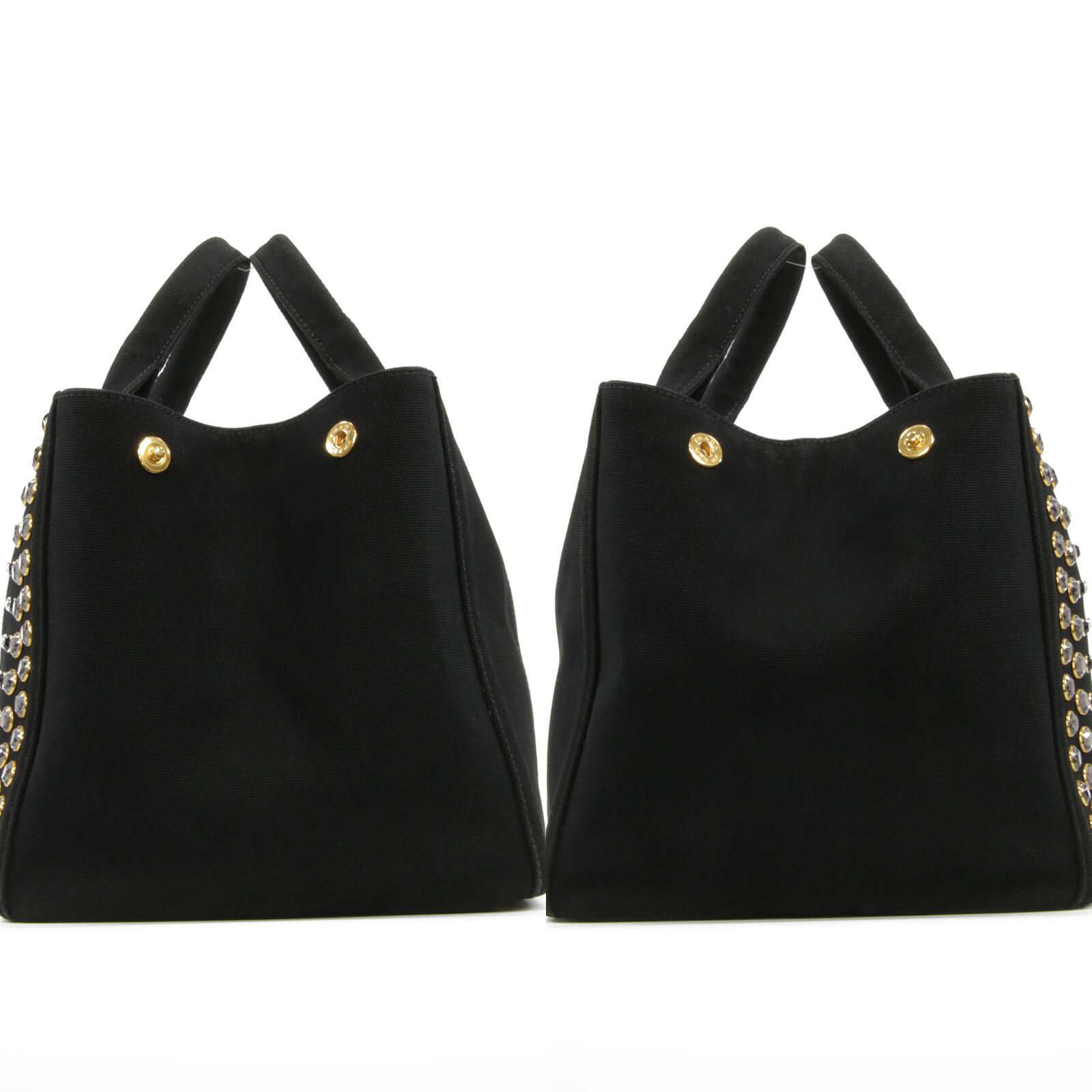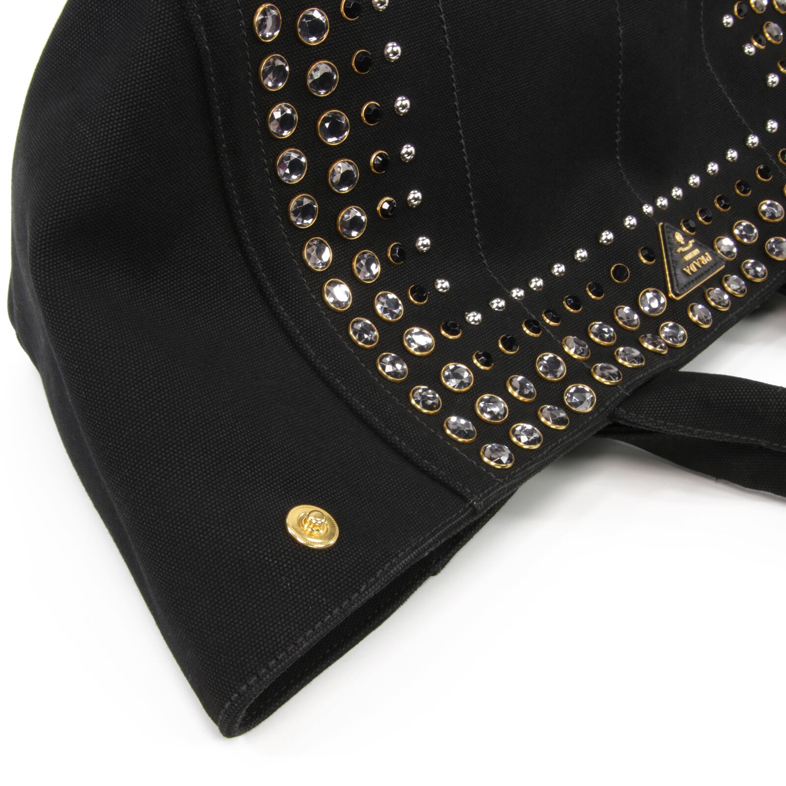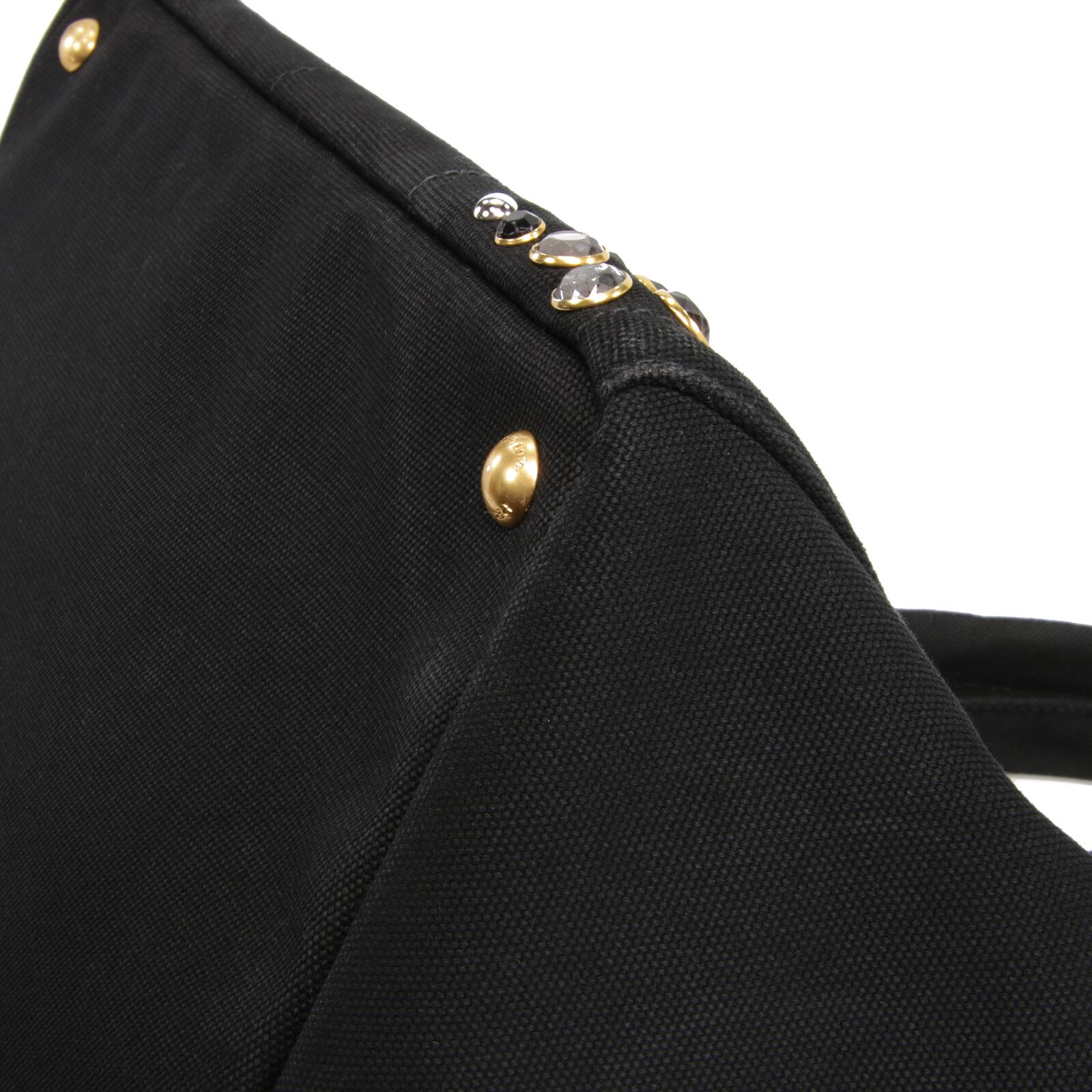 本物 送料無料 プラダ 2WAYショルダーバッグ ハンドバッグ レディース レザー カナパ Mサイズ 黒 ブラック 斜め掛け ロゴ ビジュー B243