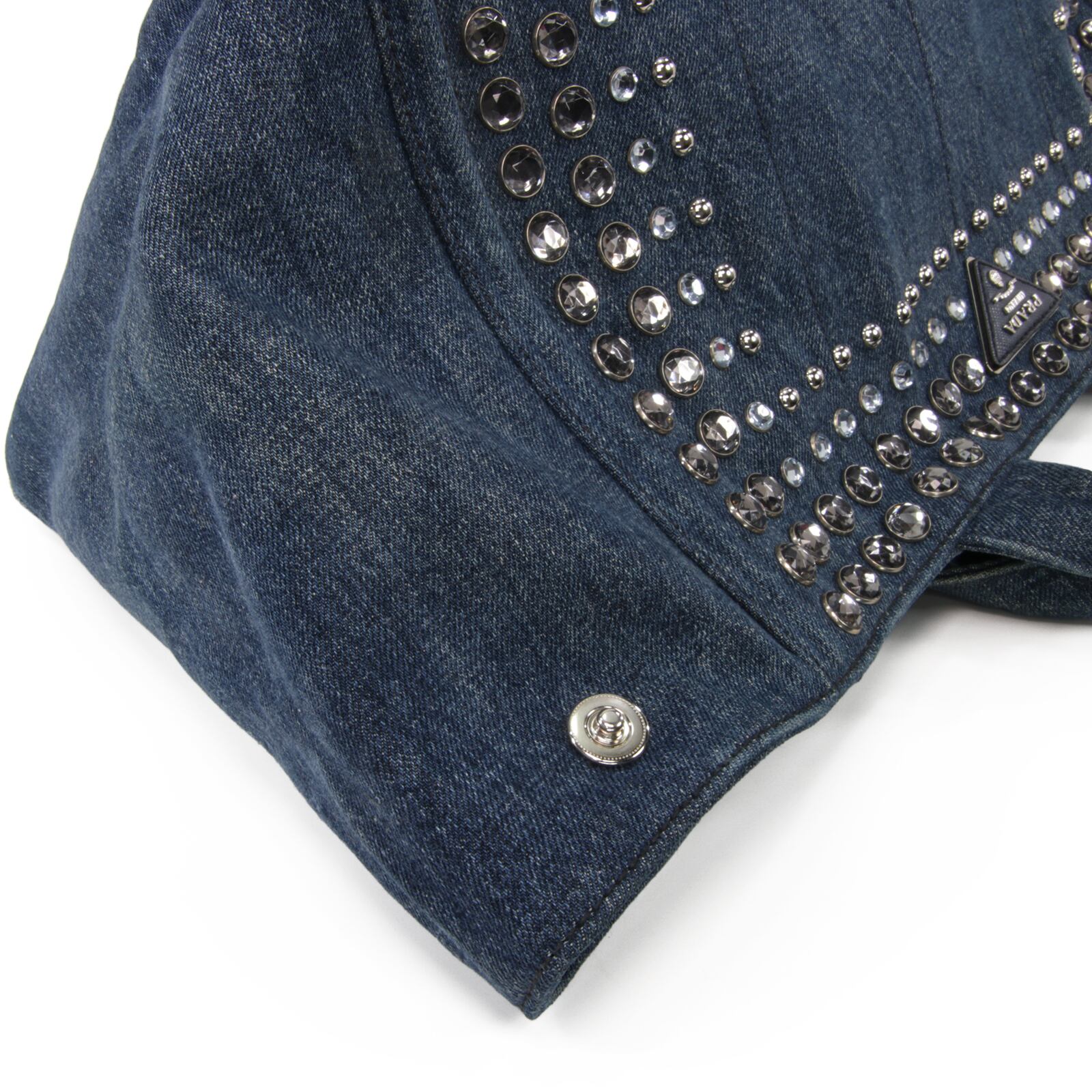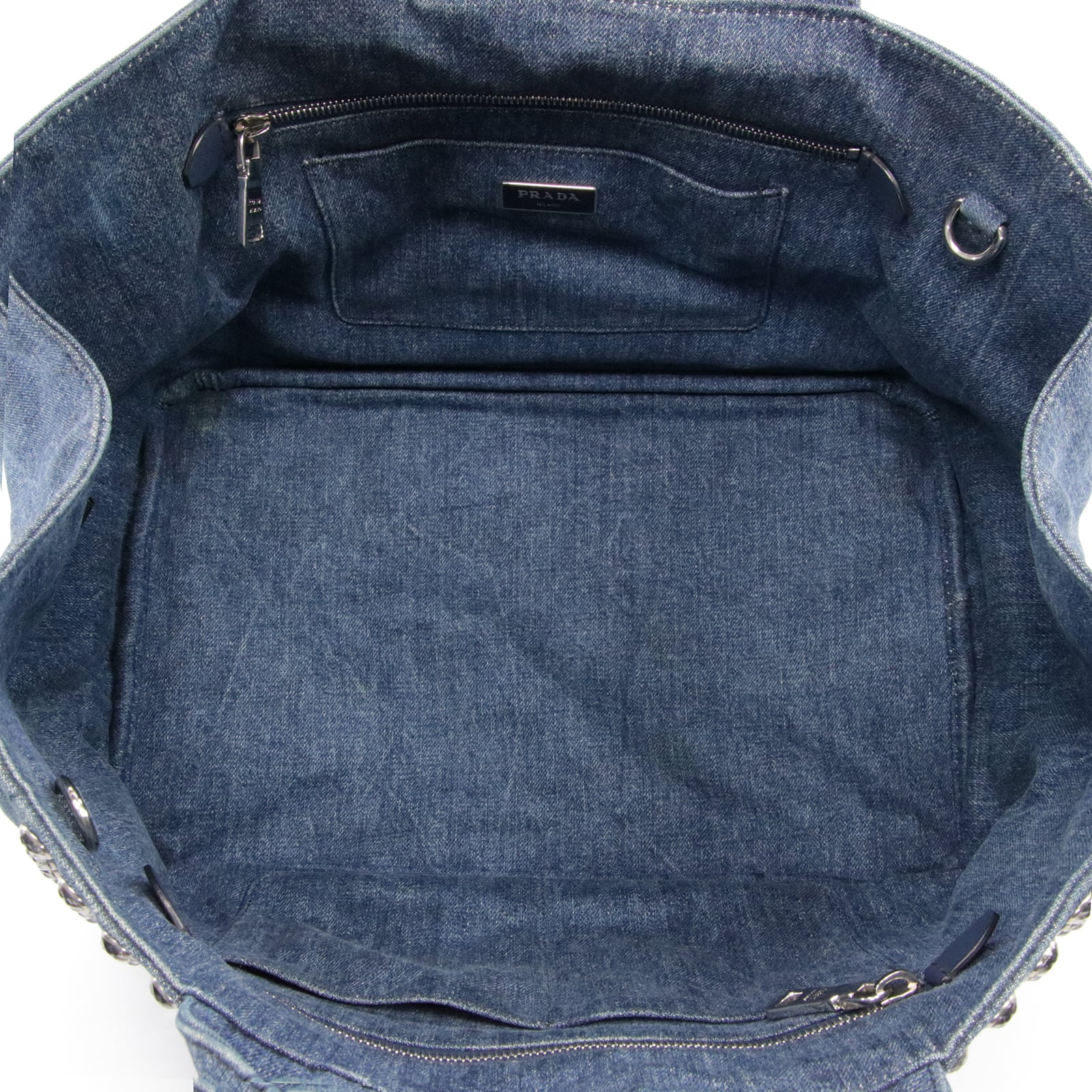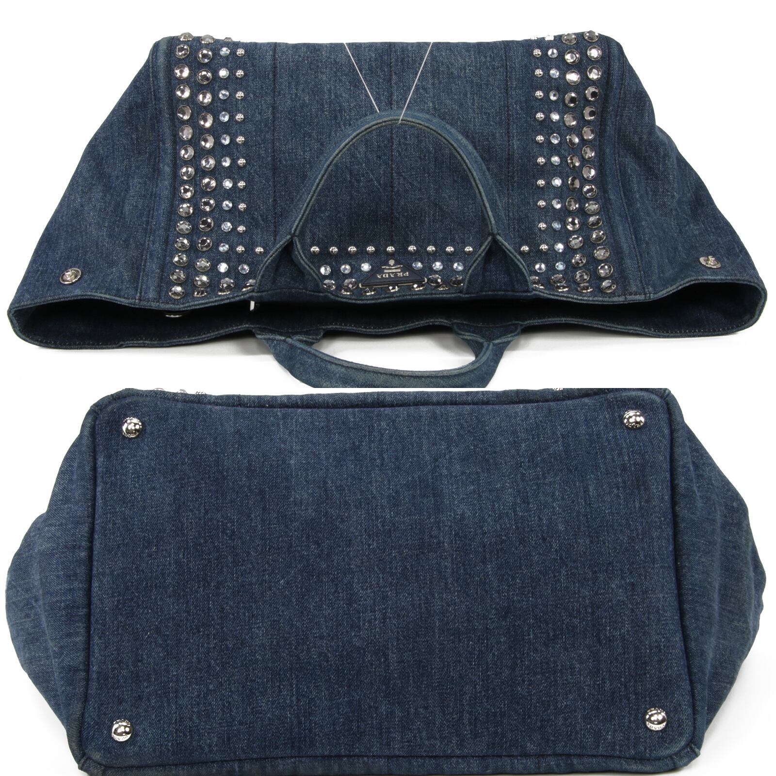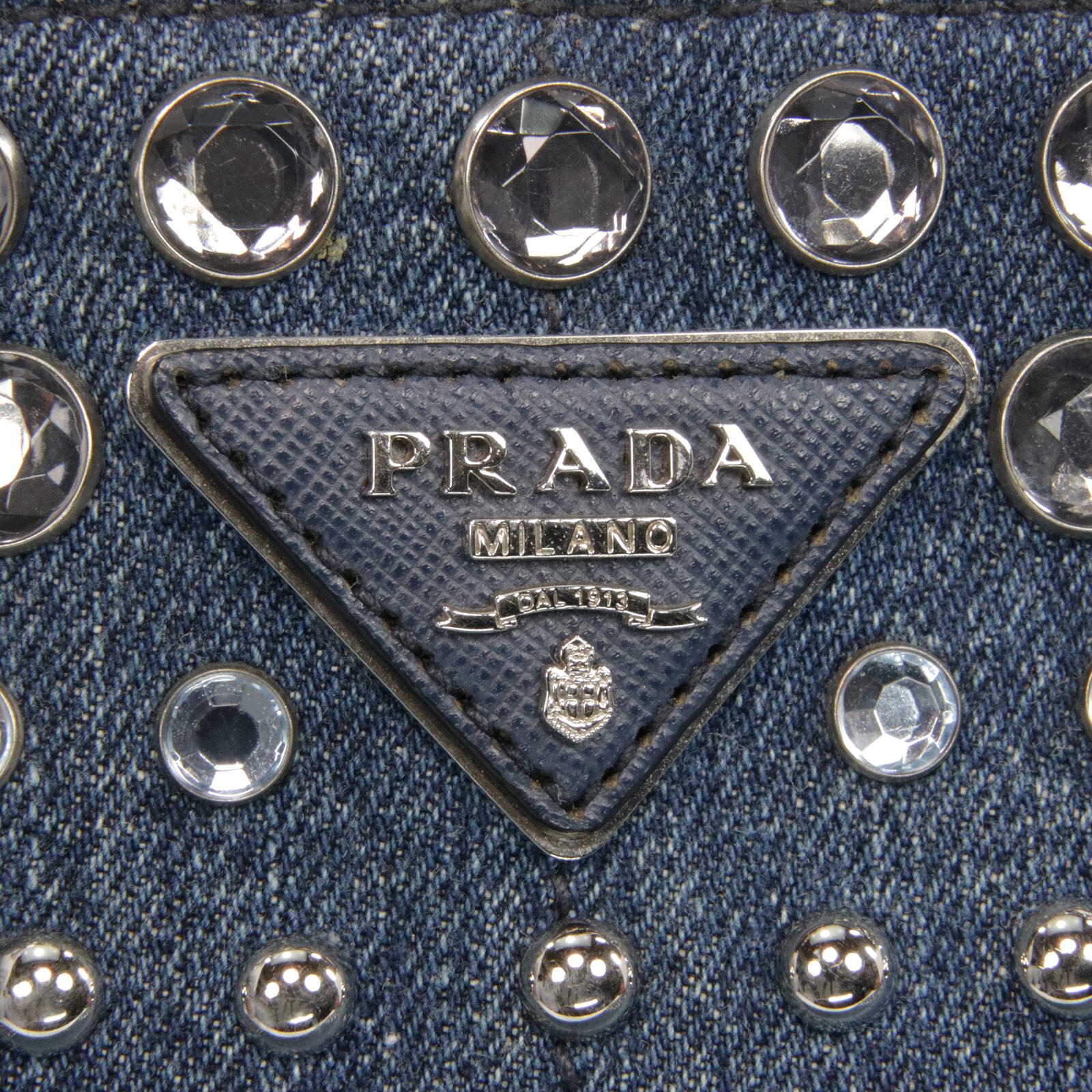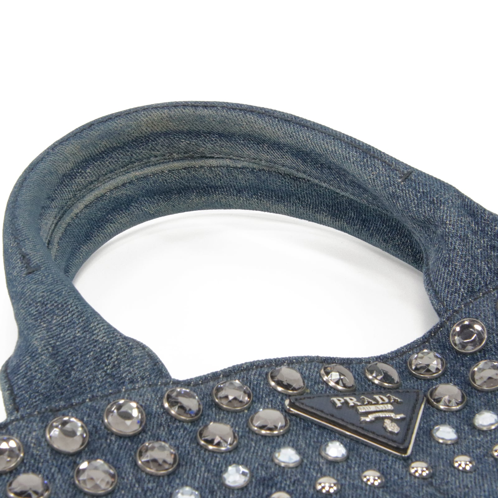本物 送料無料 プラダ 2WAYショルダーバッグ ハンドバッグ レディース デニム カナパ Mサイズ 青 ブルー 斜め掛け 三角ロゴ ビジュー B244
