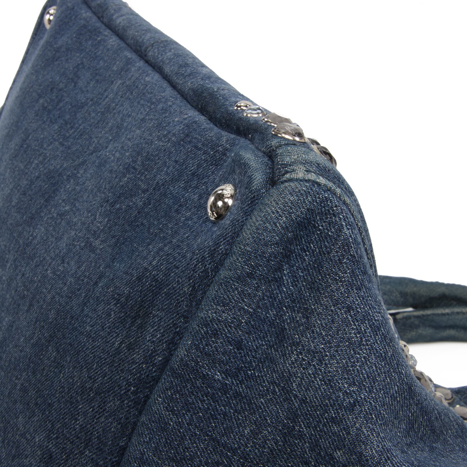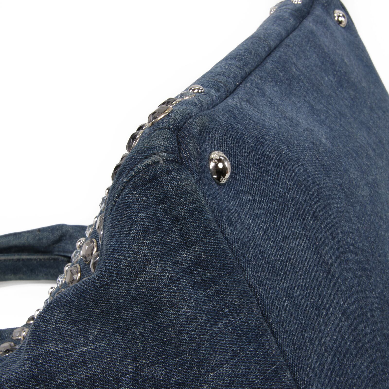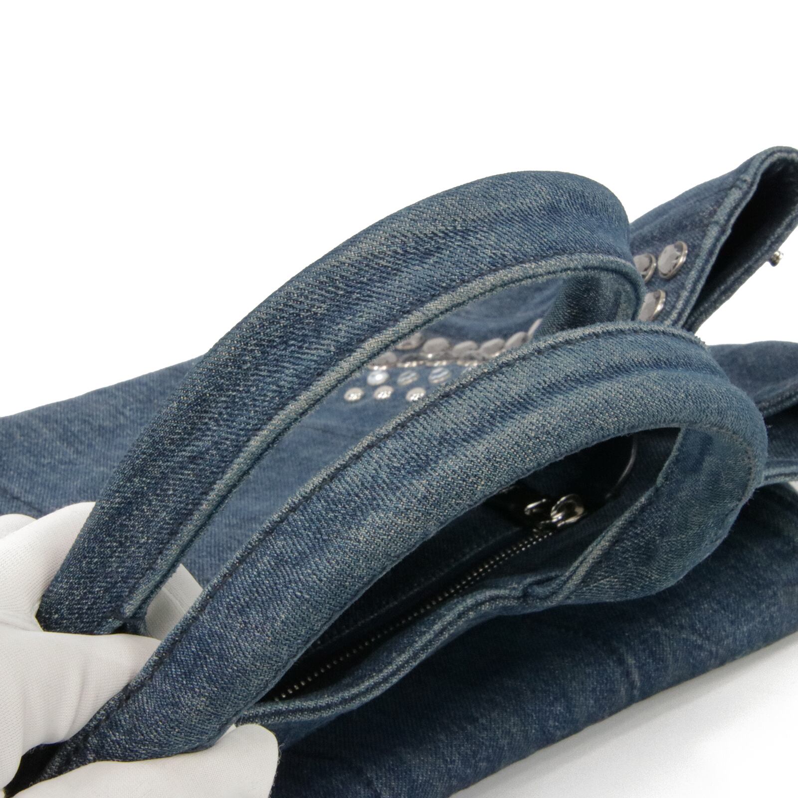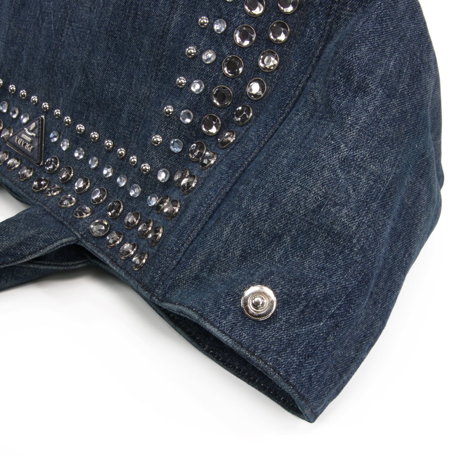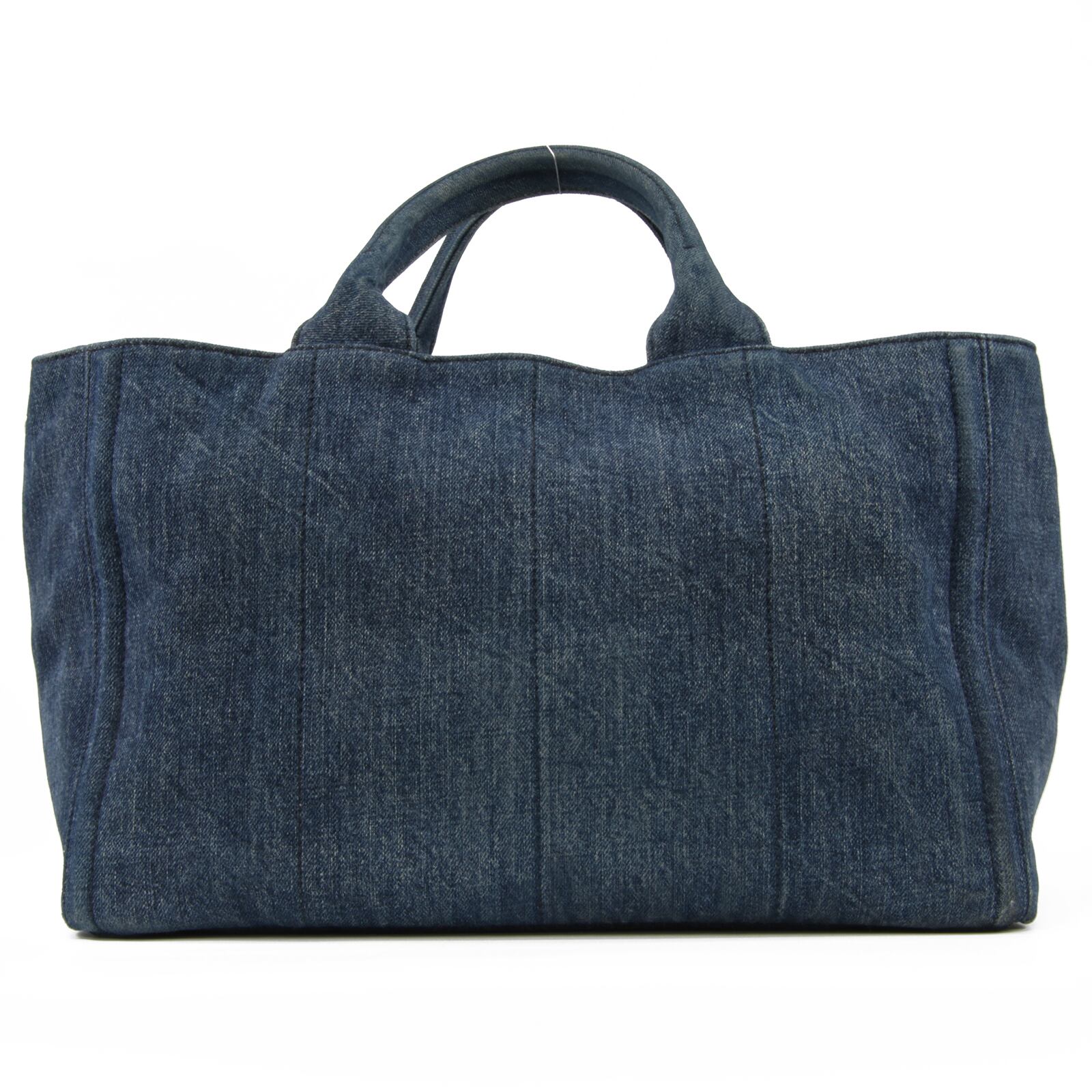 本物 送料無料 プラダ 2WAYショルダーバッグ ハンドバッグ レディース デニム カナパ Mサイズ 青 ブルー 斜め掛け 三角ロゴ ビジュー B244