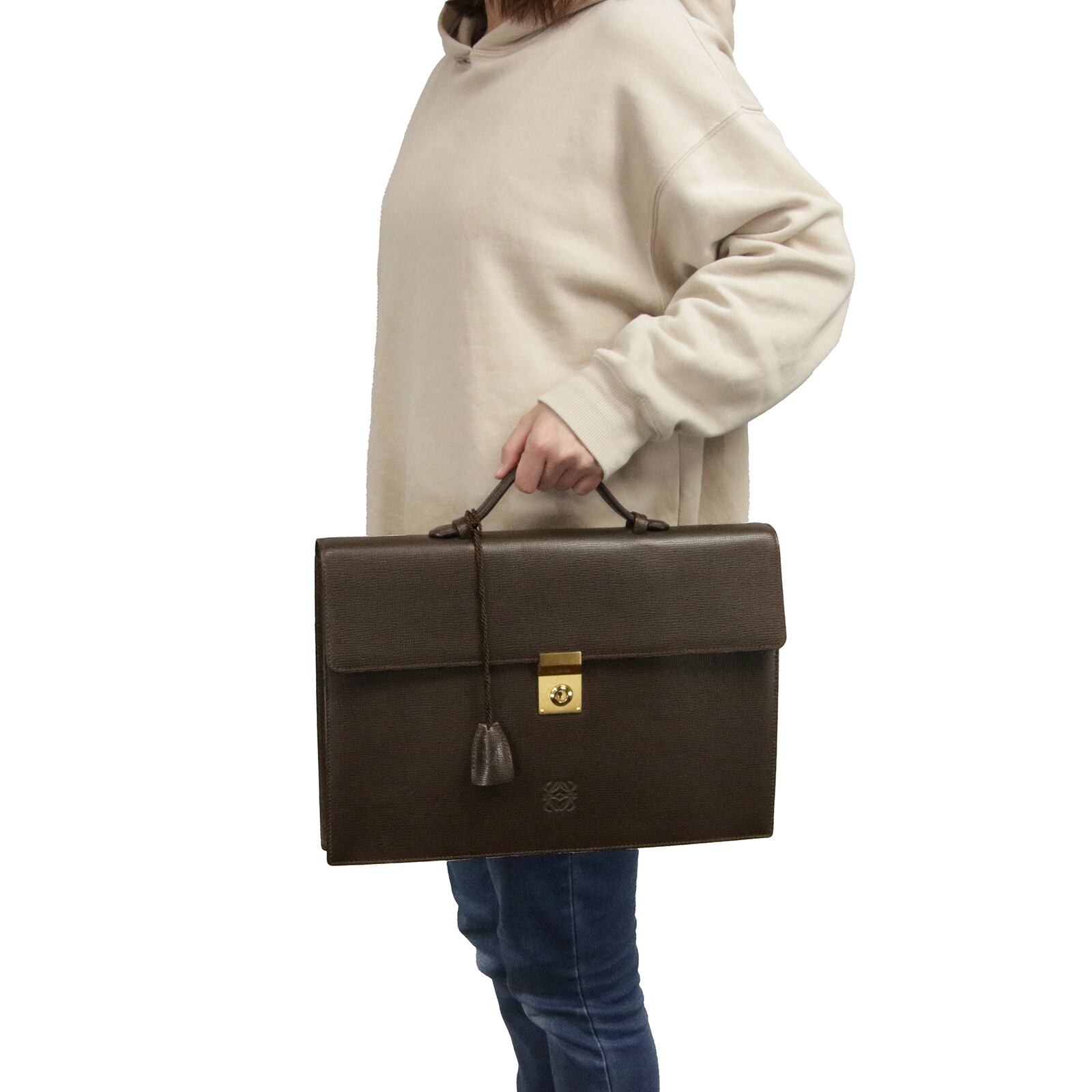 本物 送料無料 ロエベ ハンドバッグ ビジネスバッグ ブリーフケース メンズ レディース アナグラム 茶色 ブラウン 自立 ロゴ バック B245