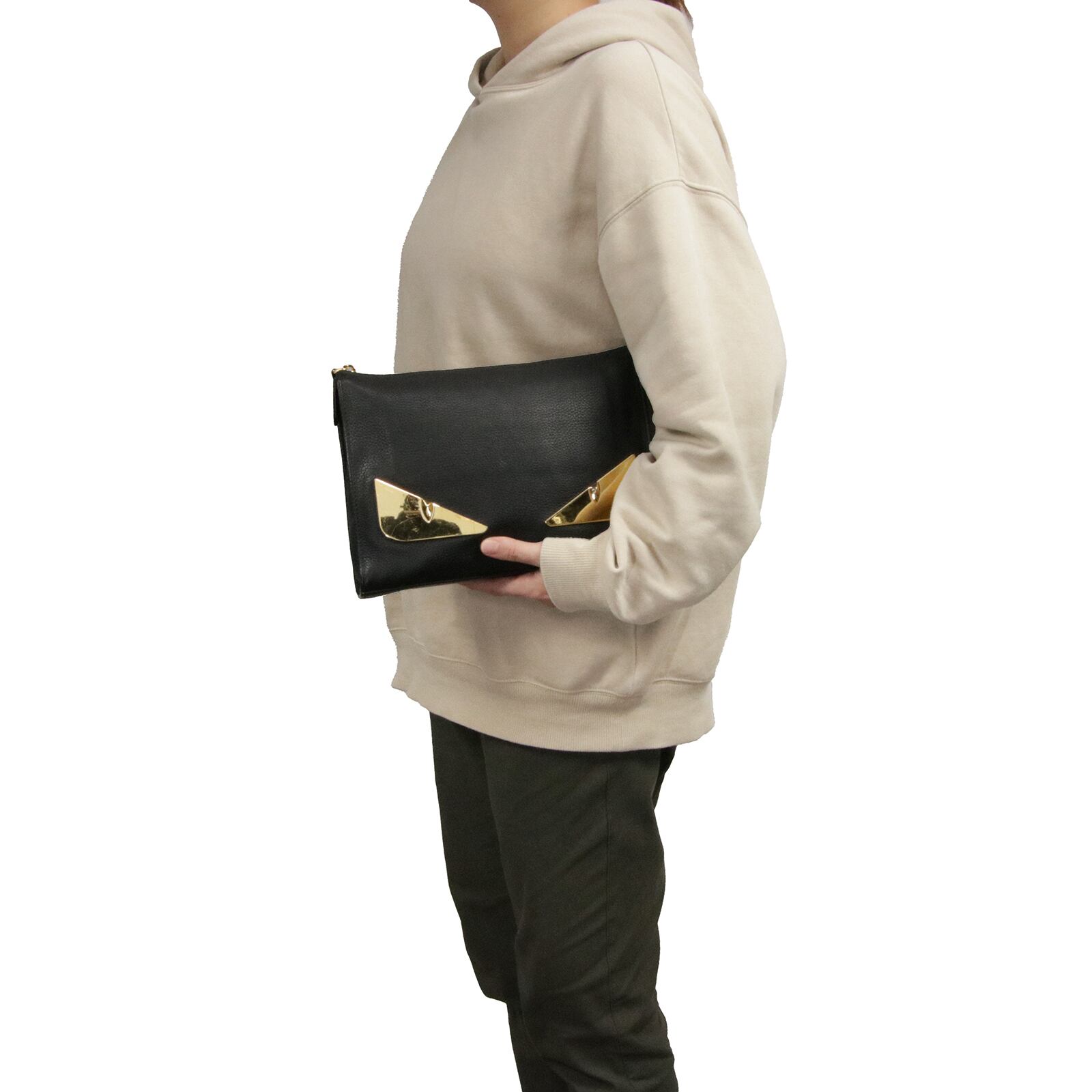 本物 送料無料 フェンディ クラッチバッグ セカンドバッグ メンズ レディース バッグバグズ モンスター 黒 ブラック 顔 目 鞄 バック B248