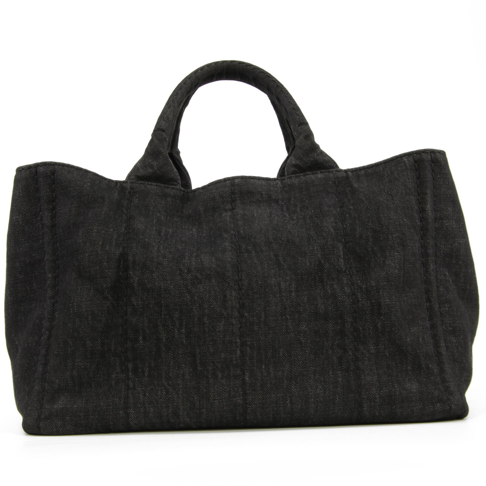 本物 送料無料 プラダ 2WAYショルダーバッグ ハンドバッグ レディース デニム カナパ M 黒 ブラック 斜め掛け 特大ロゴ 鞄 バック L112