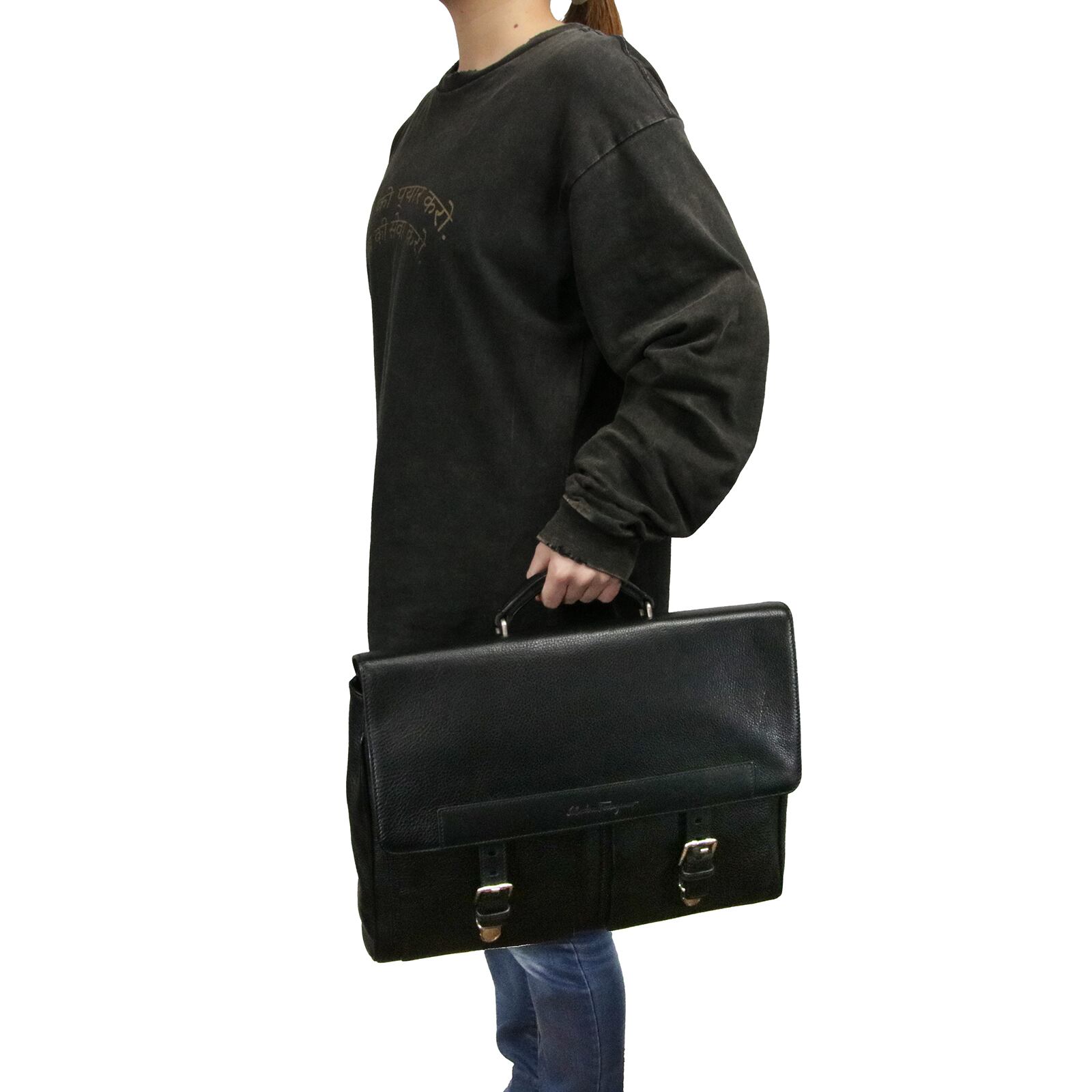 本物 送料無料 フェラガモ ハンドバッグ ビジネスバッグ ブリーフケース メンズ 黒 ブラック 革 レザー ロゴ A4 大容量 鞄 バック L113