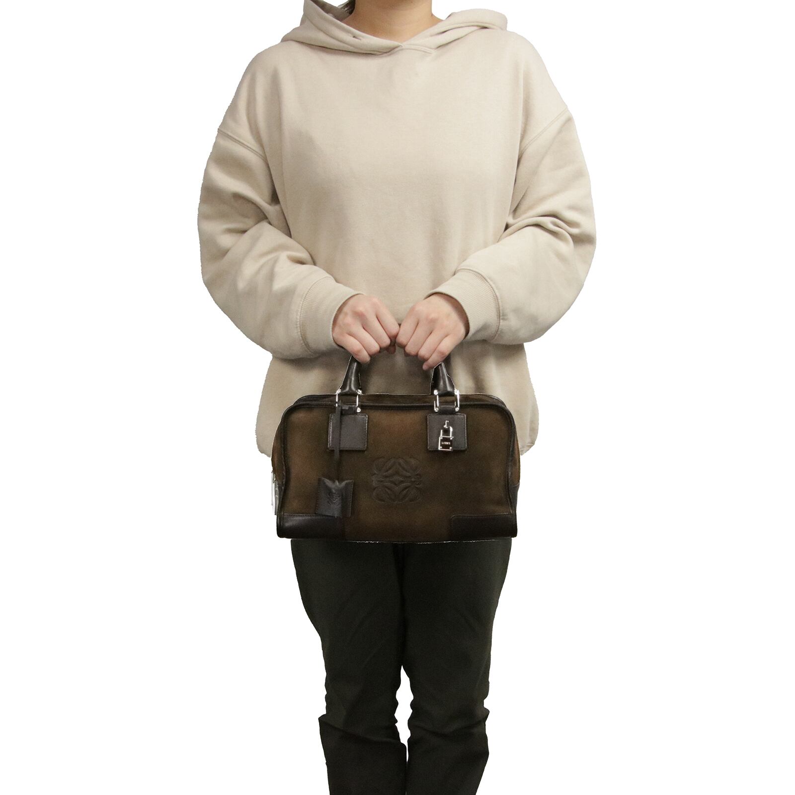本物 送料無料 ロエベ ハンドバッグ レディース アマソナ29 茶色 ブラウン 自立 アナグラム 革 レザー ロゴ マーク 人気 鞄 バック L117