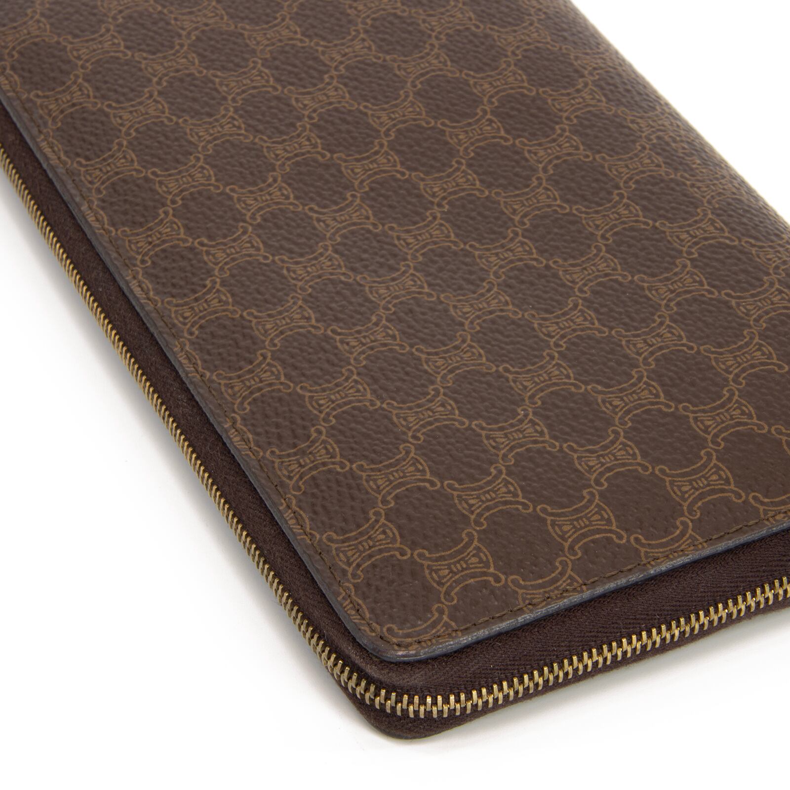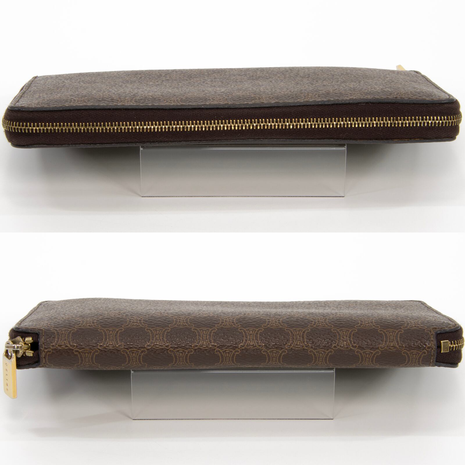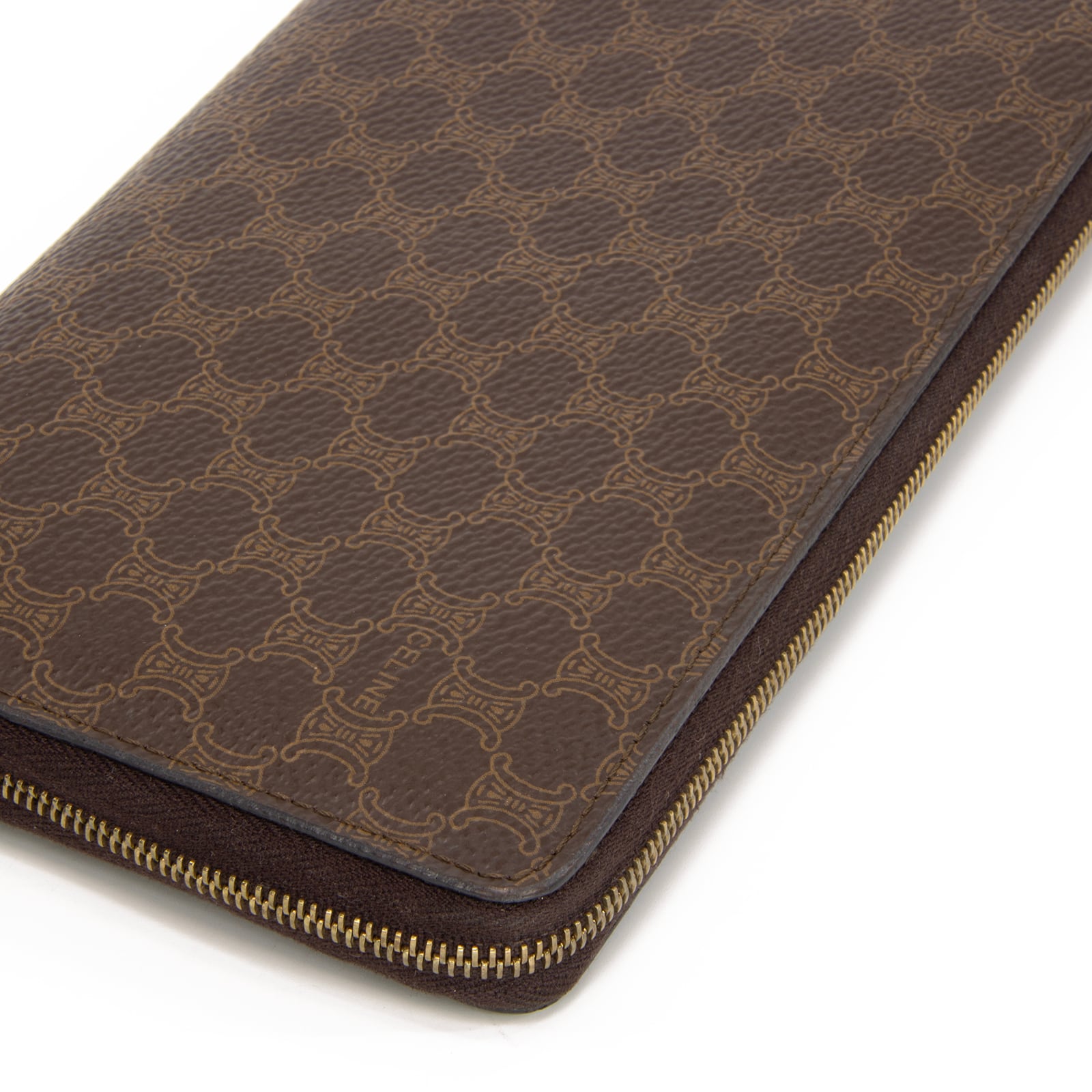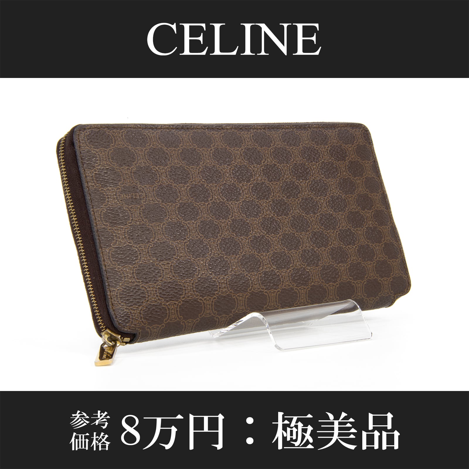本物 送料無料 セリーヌ 長財布 ラウンドファスナー ジップタイプ メンズ レディース マカダム 茶色 ブラウン ブラゾン 総柄 レア C190
