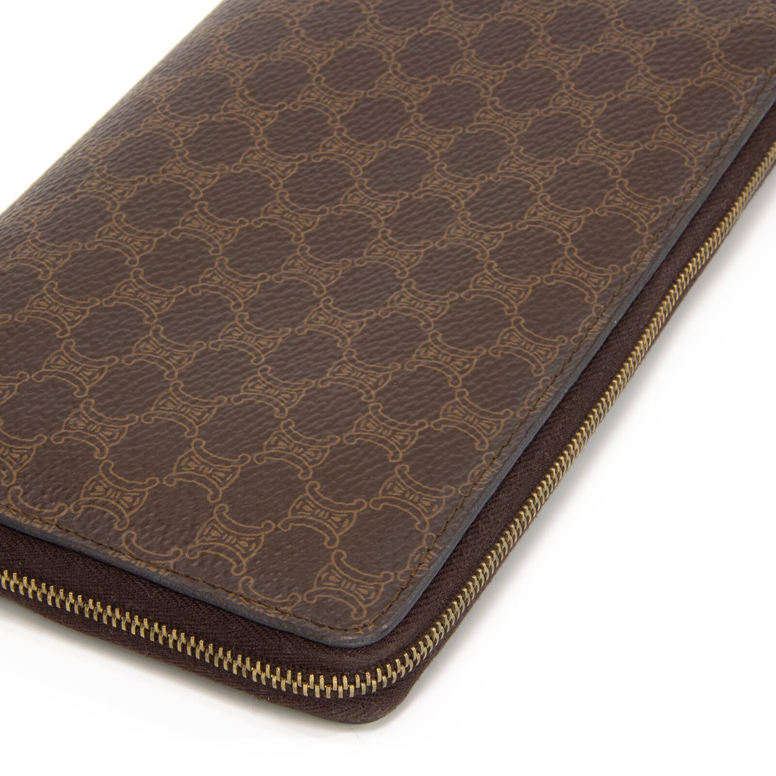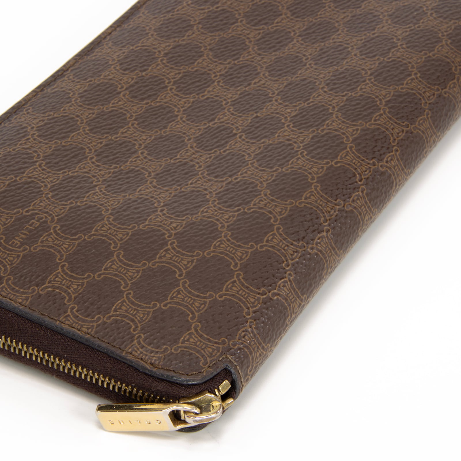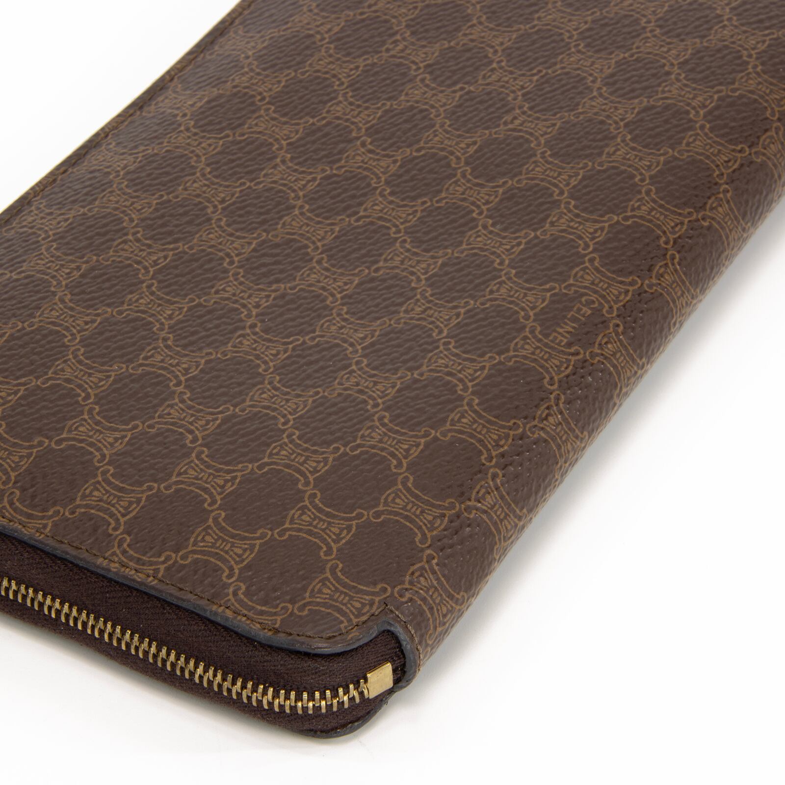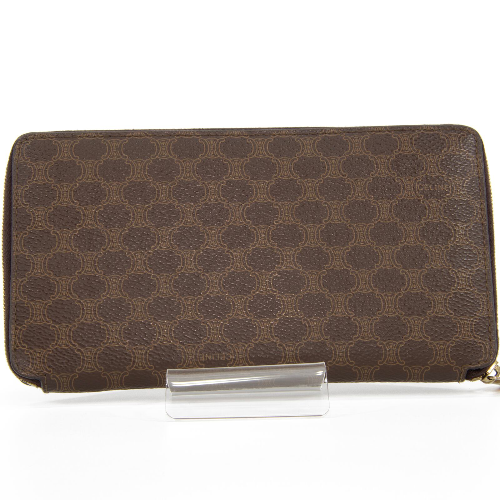 本物 送料無料 セリーヌ 長財布 ラウンドファスナー ジップタイプ メンズ レディース マカダム 茶色 ブラウン ブラゾン 総柄 レア C190