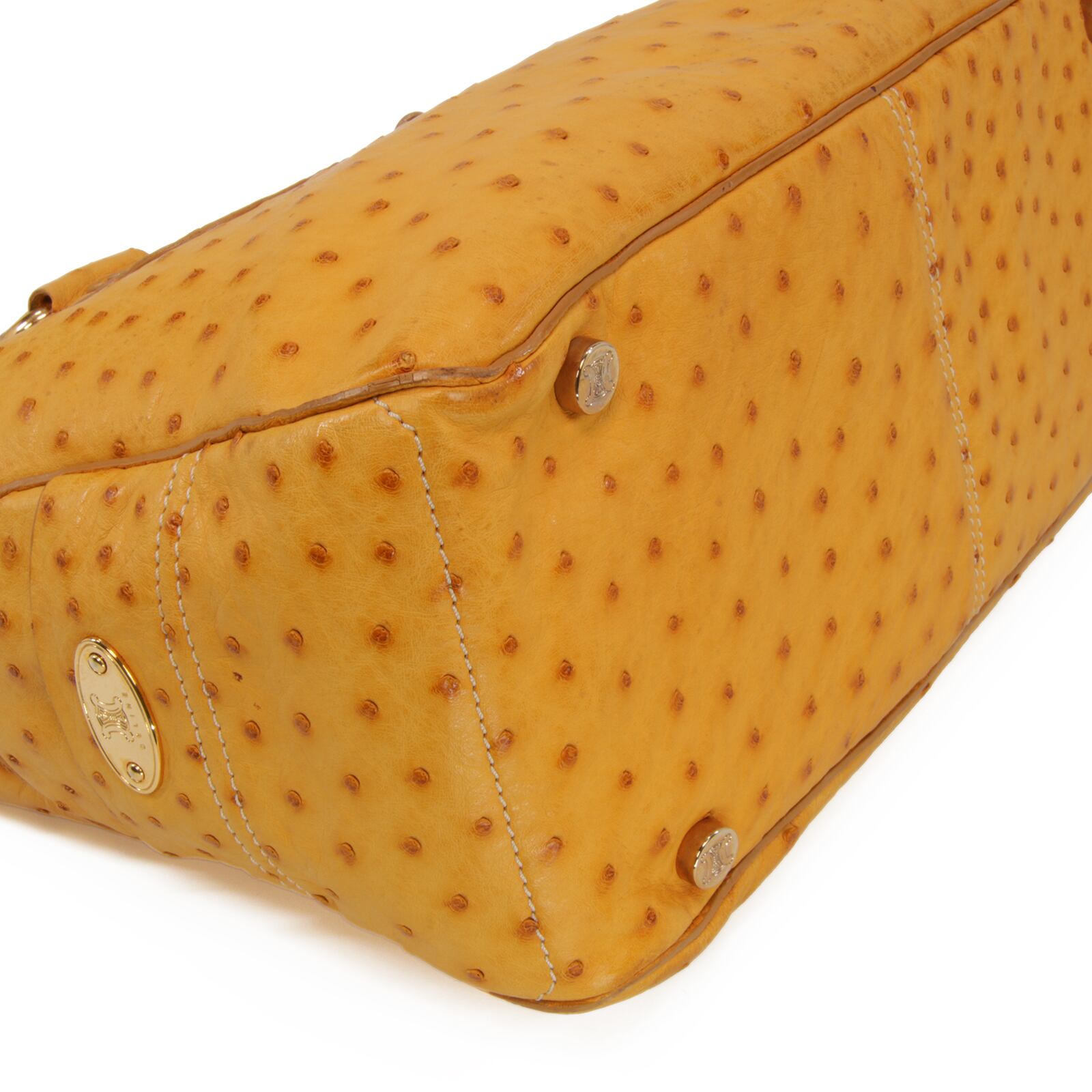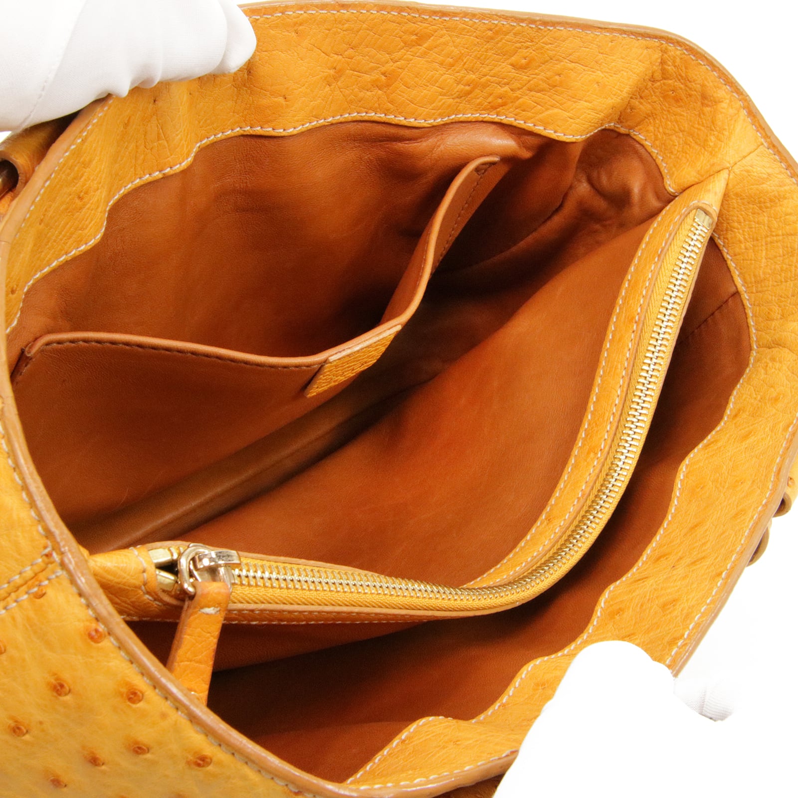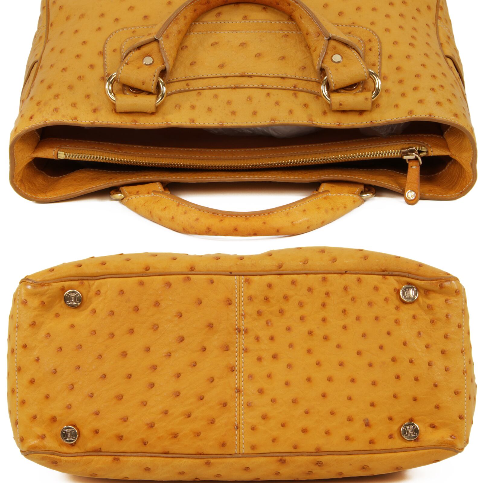 本物 送料無料 セリーヌ ハンドバッグ レディース オーストリッチ ブギーバッグ 茶色 ブラウン 最高級 レア マカダム ロゴ 鞄 バック L119