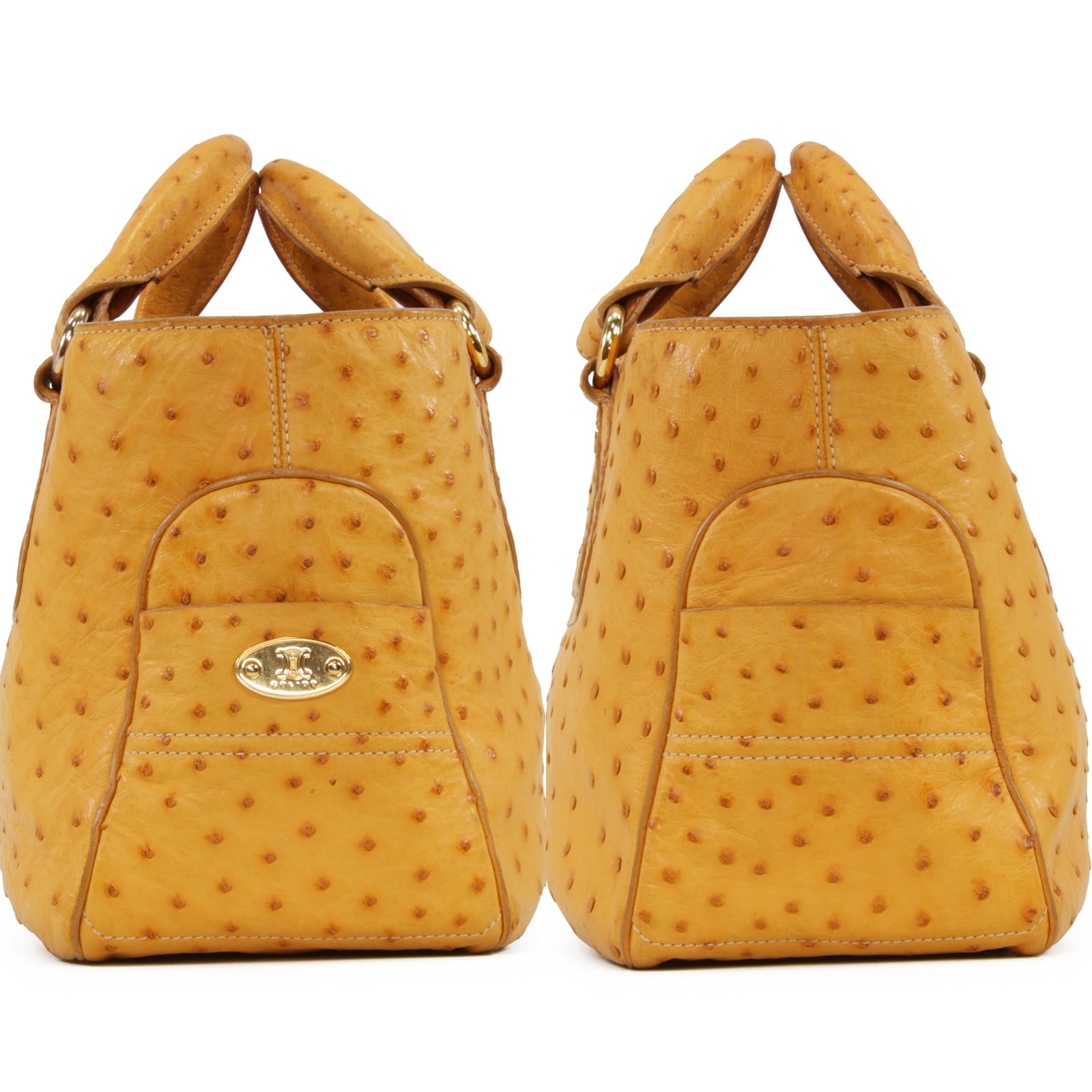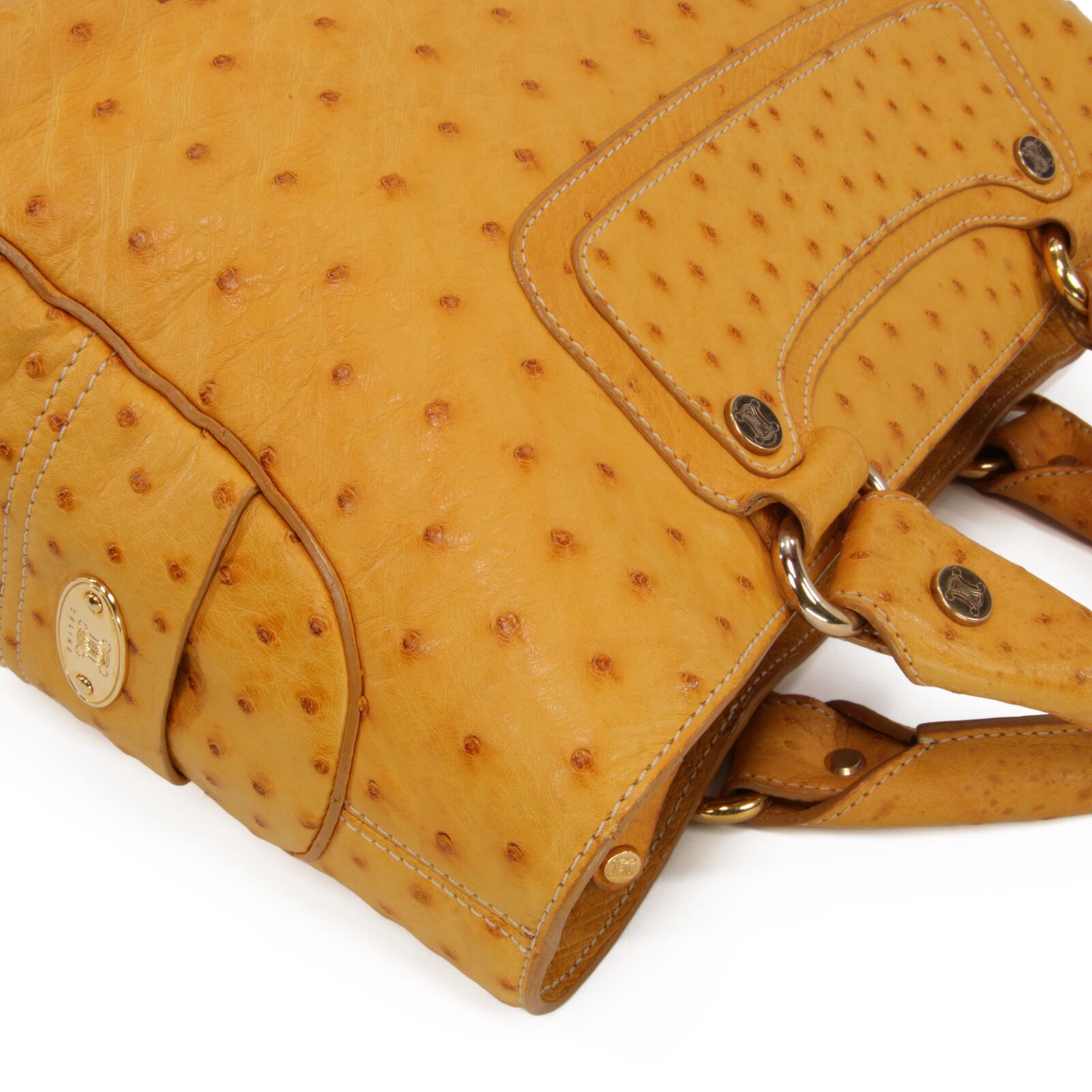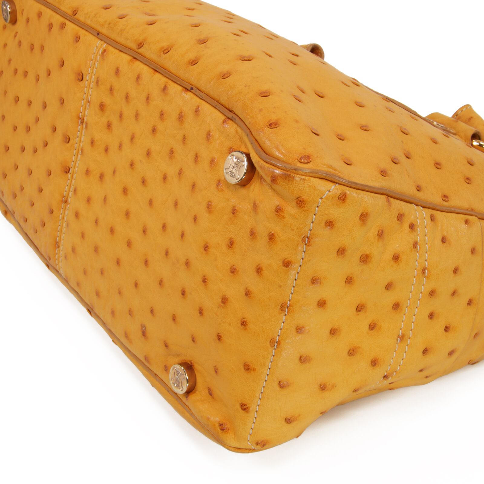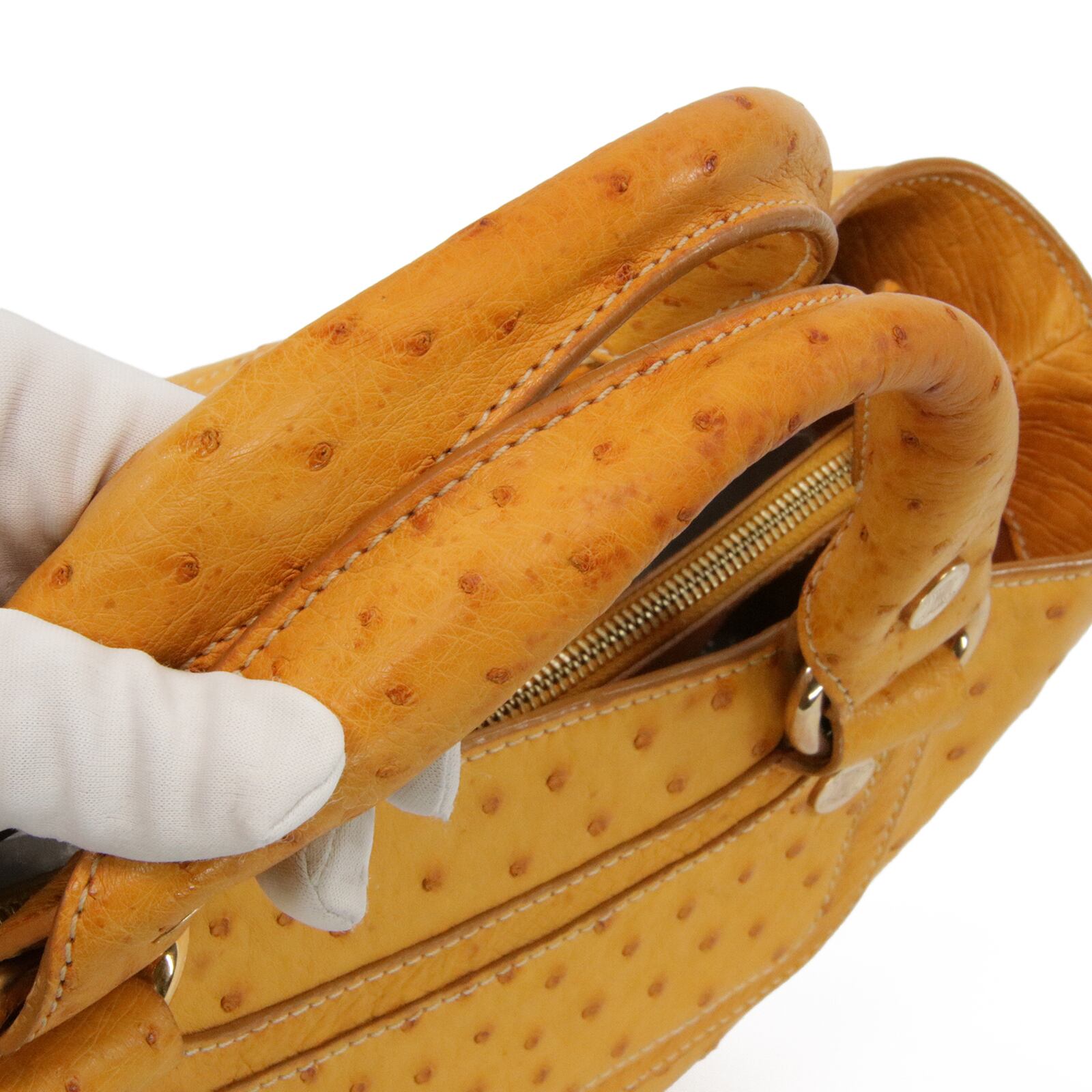 本物 送料無料 セリーヌ ハンドバッグ レディース オーストリッチ ブギーバッグ 茶色 ブラウン 最高級 レア マカダム ロゴ 鞄 バック L119