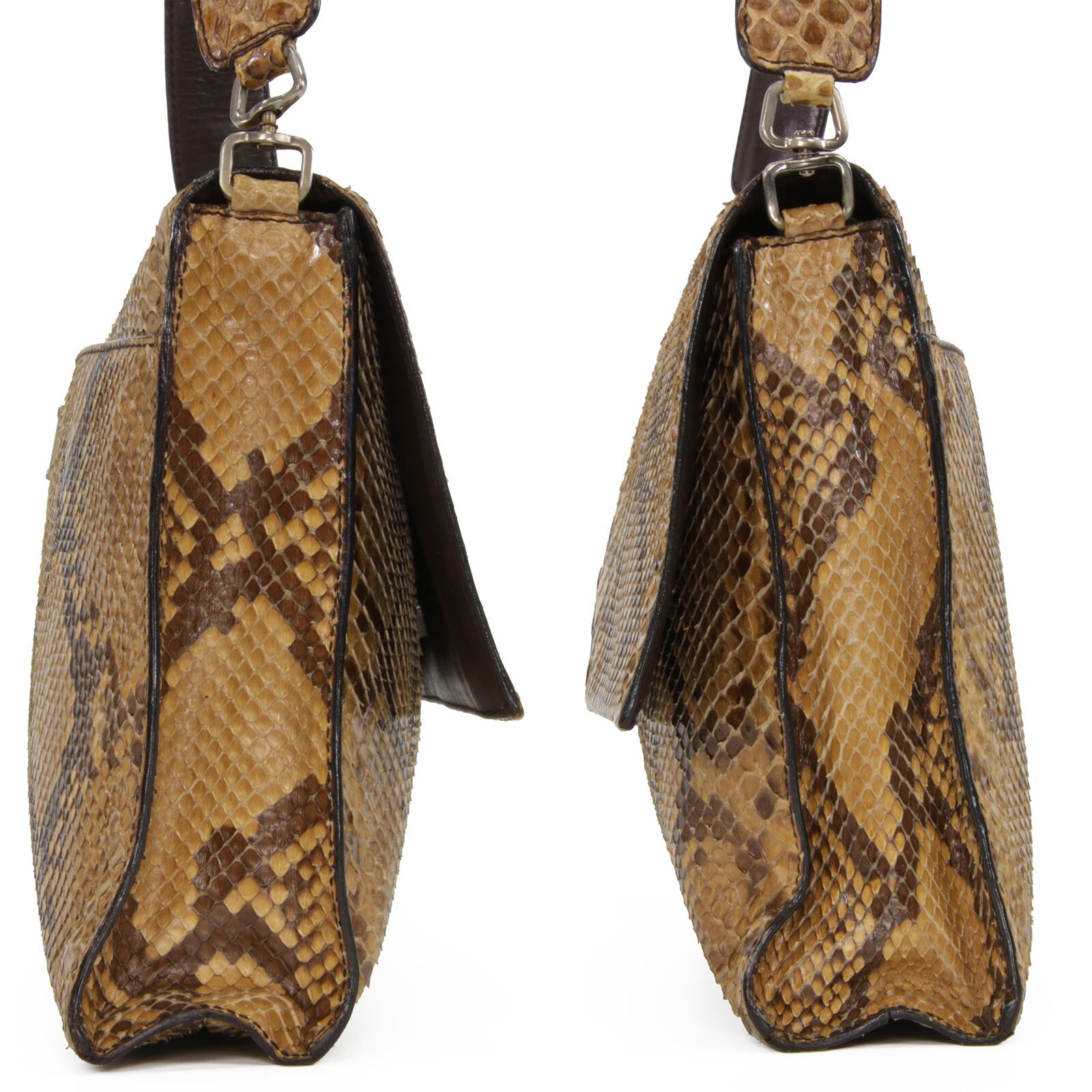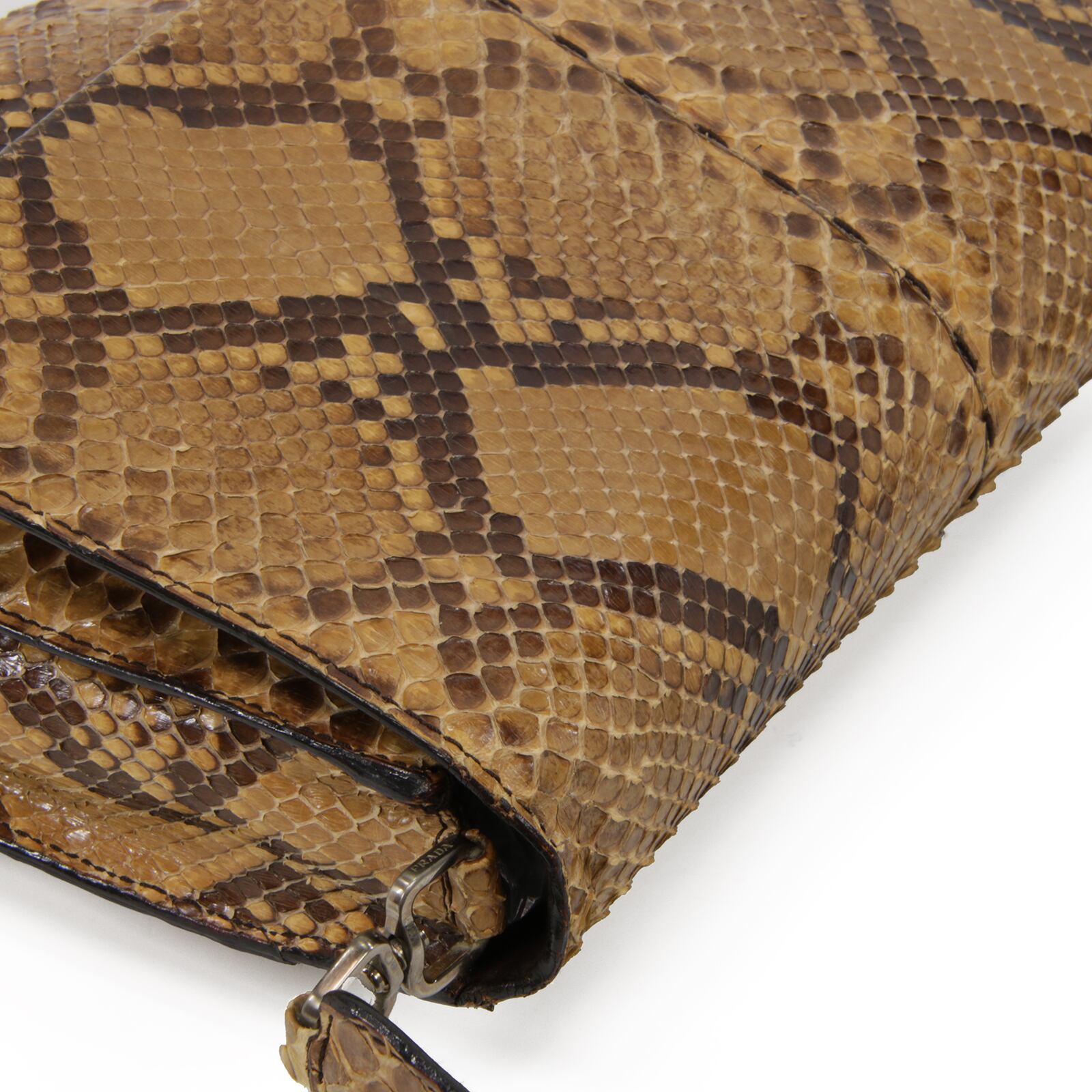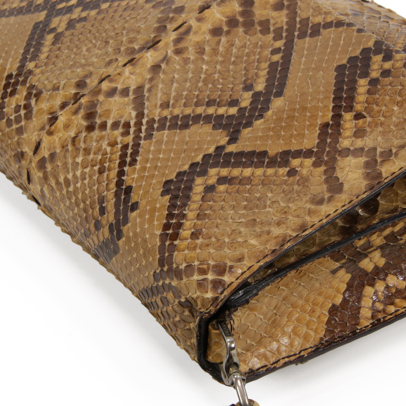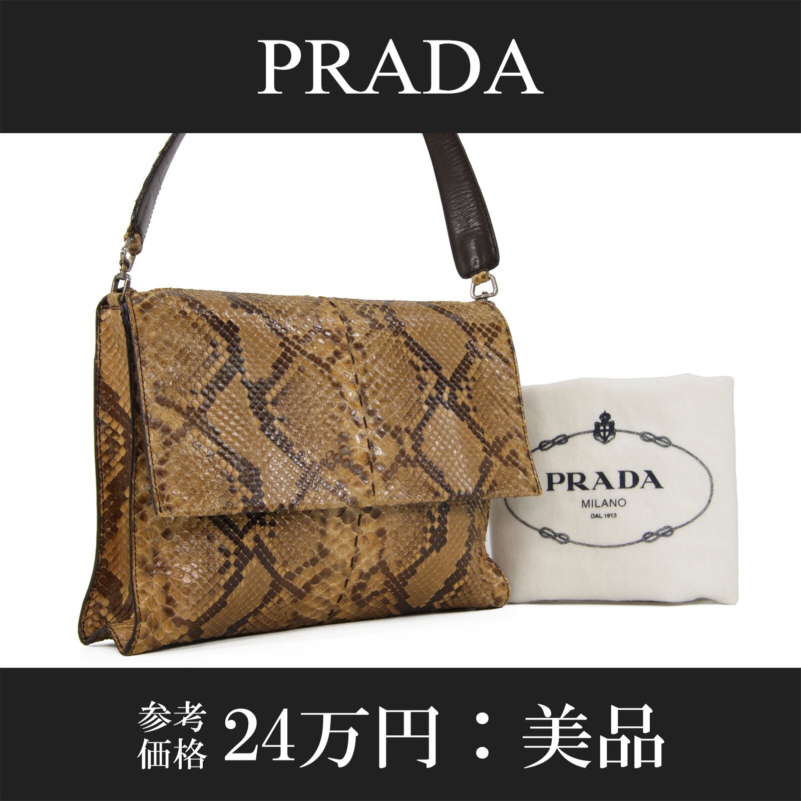 本物 送料無料 プラダ セミショルダーバッグ レディース パイソン 茶色 ブラウン 蛇革 最高級 三角ロゴ パーティーバッグ 鞄 バック L121