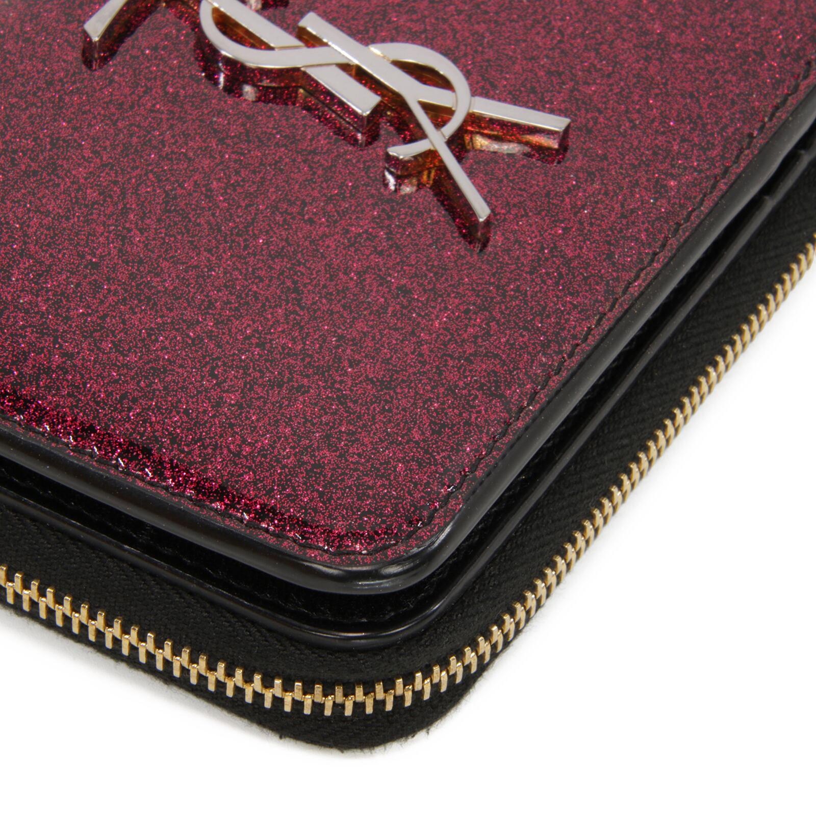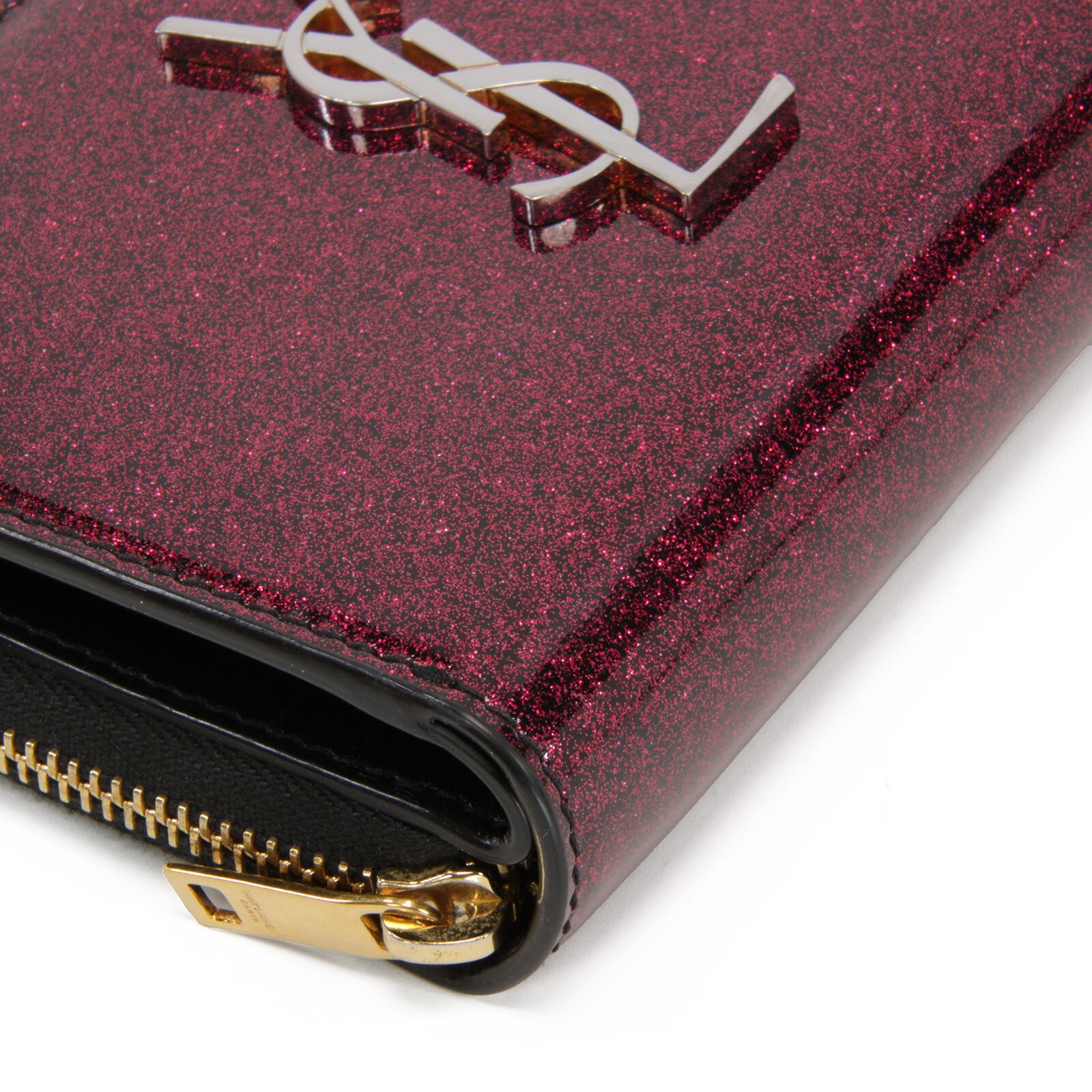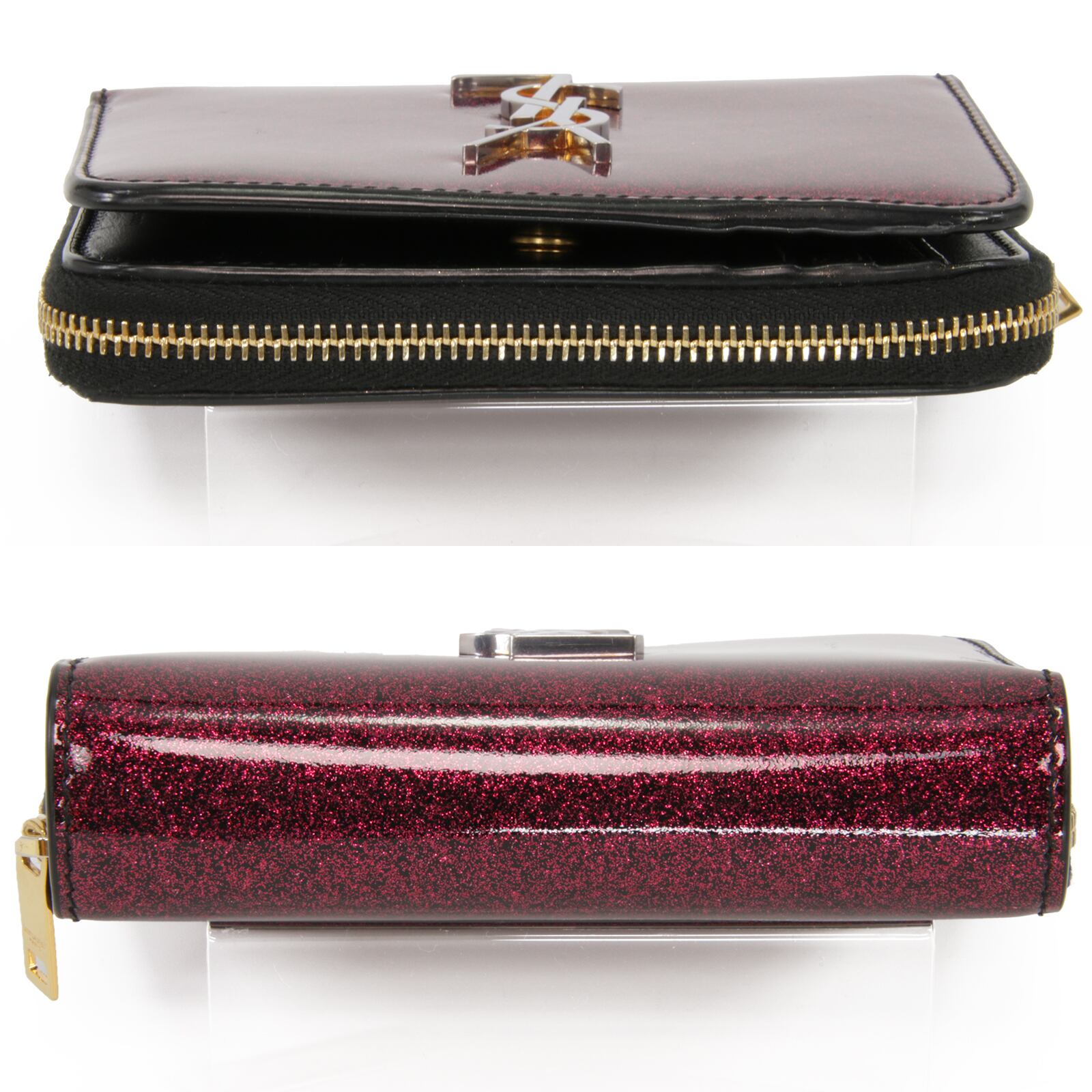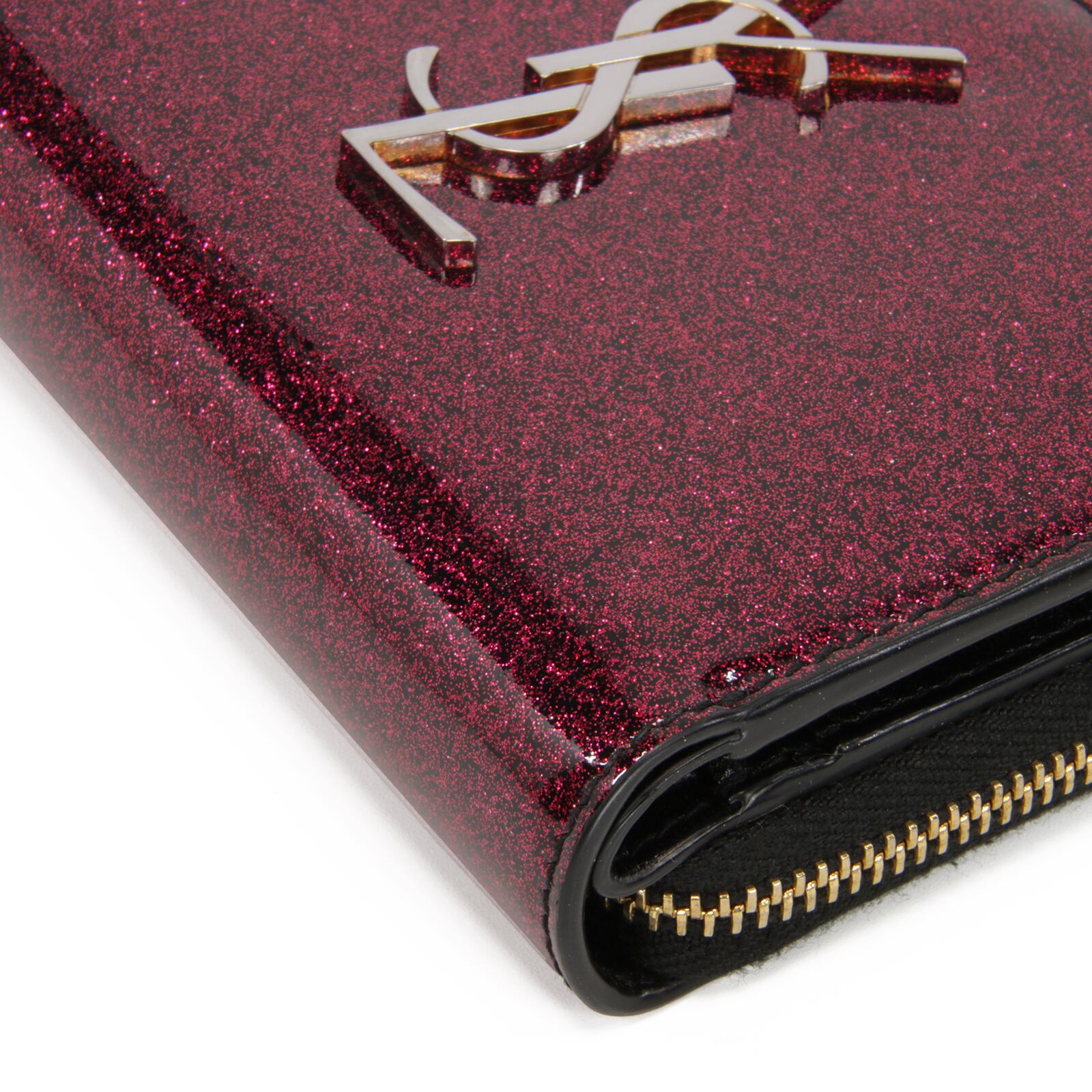 本物 送料無料 サンローラン 短財布 ラウンドファスナー レディース クリスマス限定 ガーネット キラキラ YSLロゴ スリム コンパクト C196