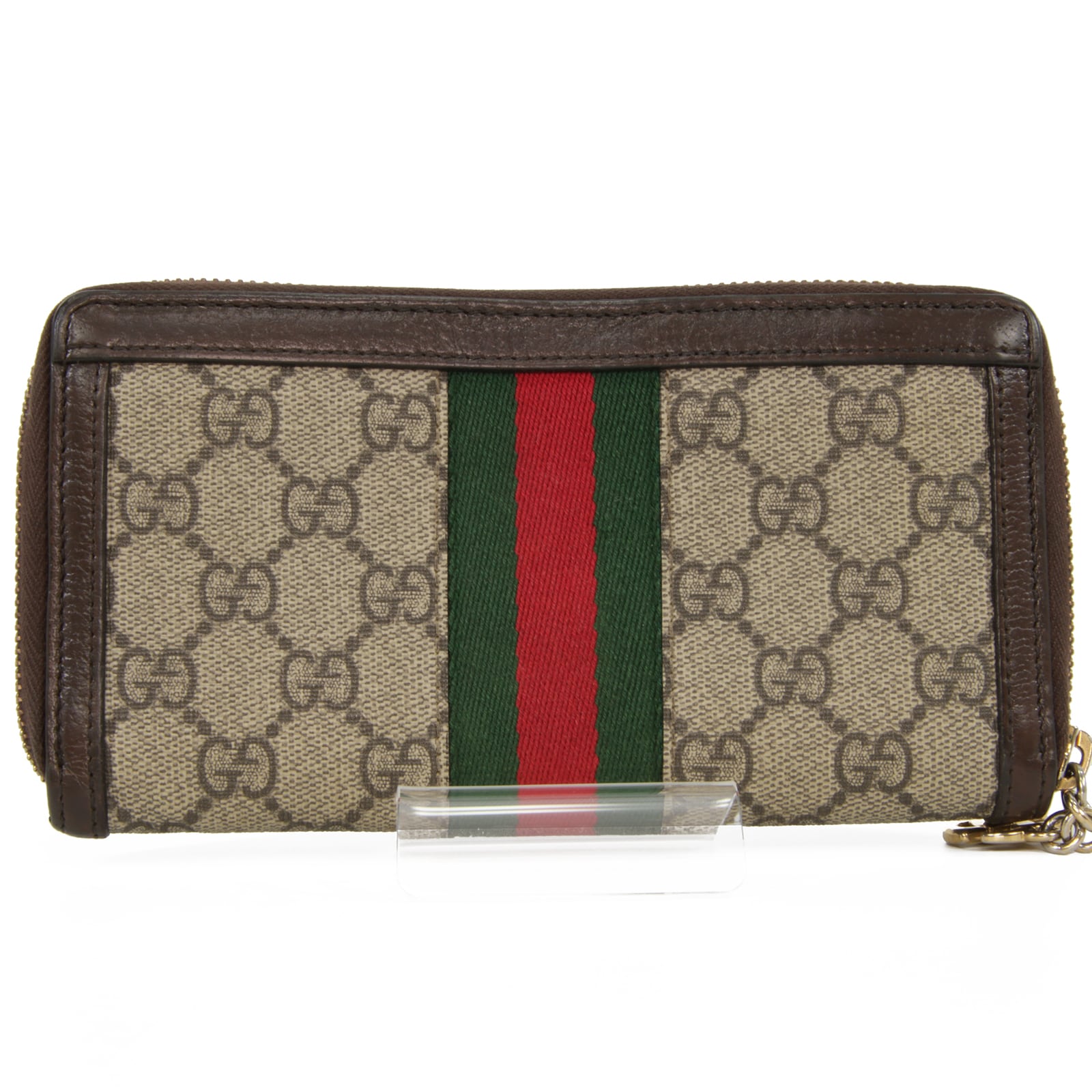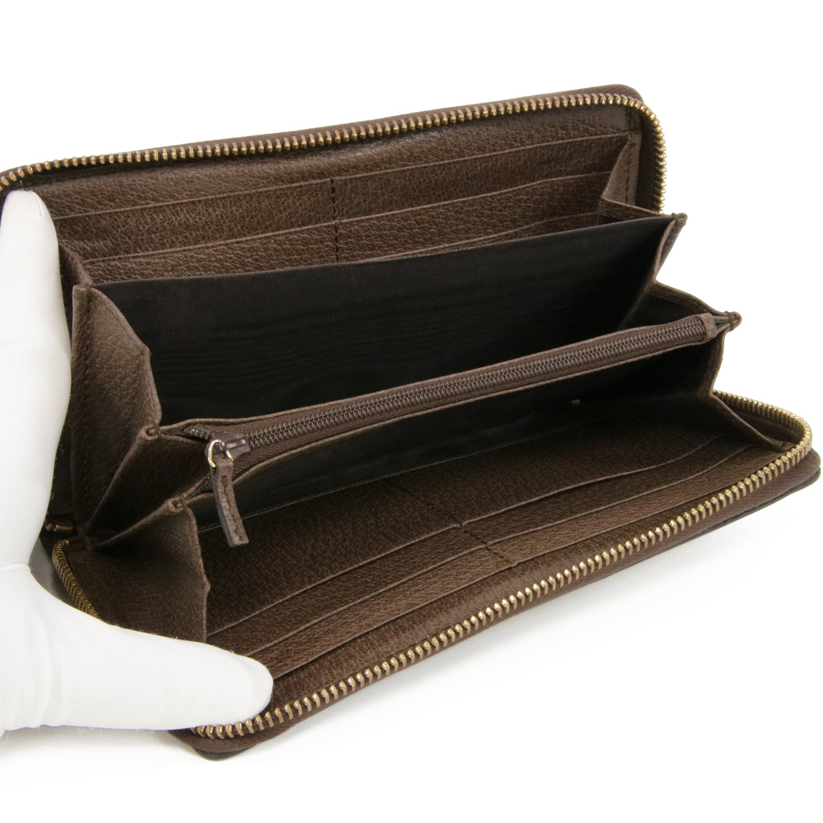 本物 送料無料 グッチ 長財布 ラウンドファスナー メンズ レディース オフィディア 茶色 シェリーライン マーモント GG金具 ロゴ 綺麗 C198