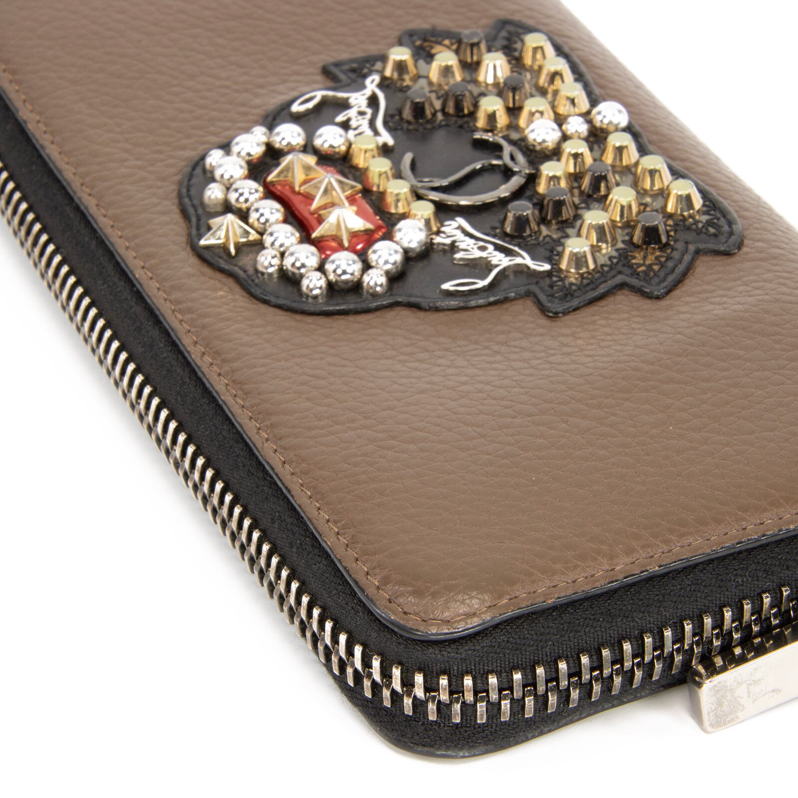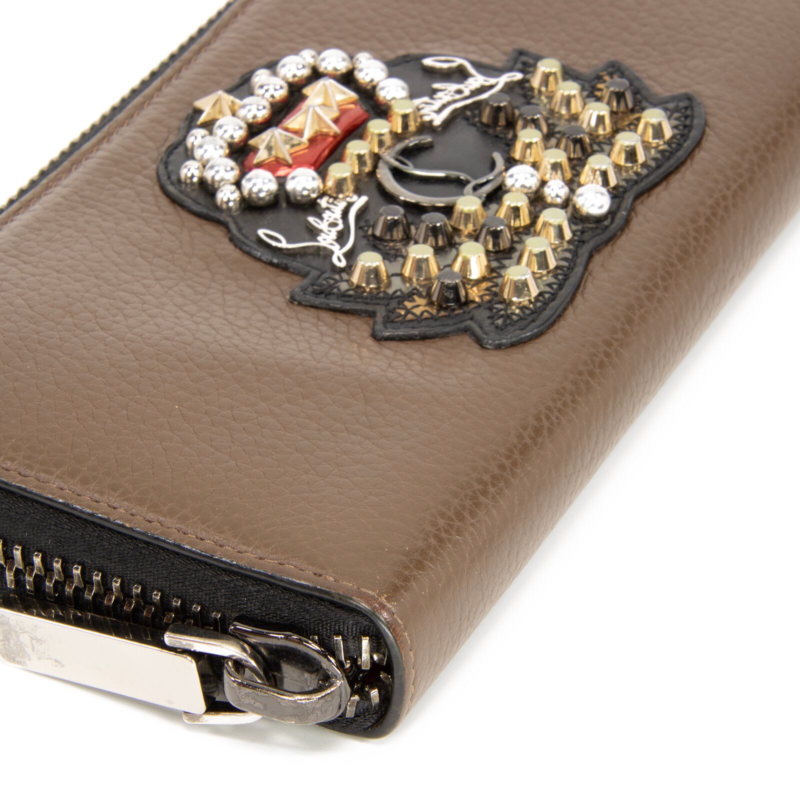本物 送料無料 ルブタン 長財布 ラウンドファスナー メンズ レディース パネトーネ 茶色 ブラウン スタッズ 王冠 エンブレム レア T030