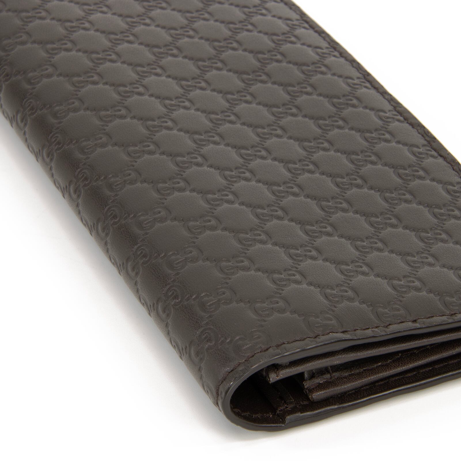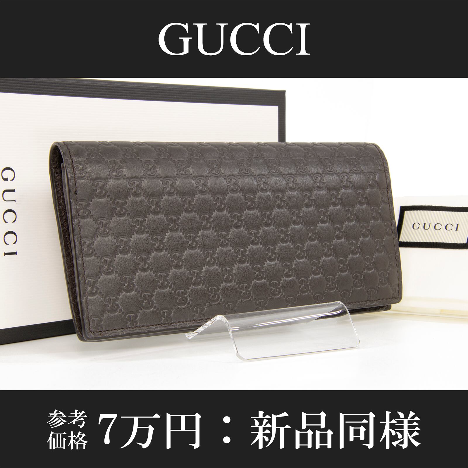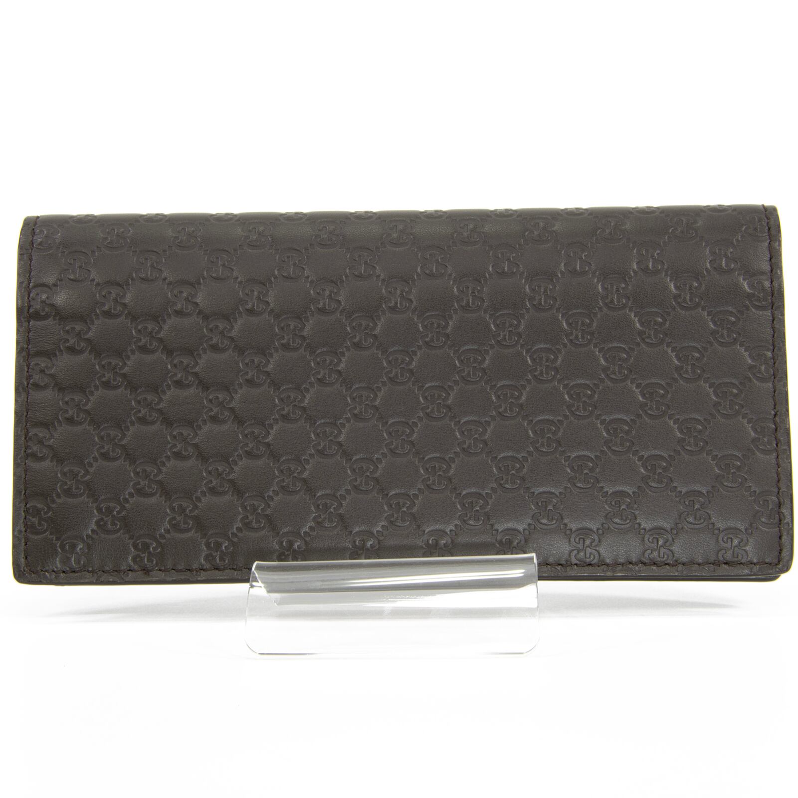 本物 送料無料 グッチ 長財布 二つ折り財布 メンズ レディース マイクログッチシマ 茶色 ブラウン GG柄 マーク スリム スマート 綺麗 T031