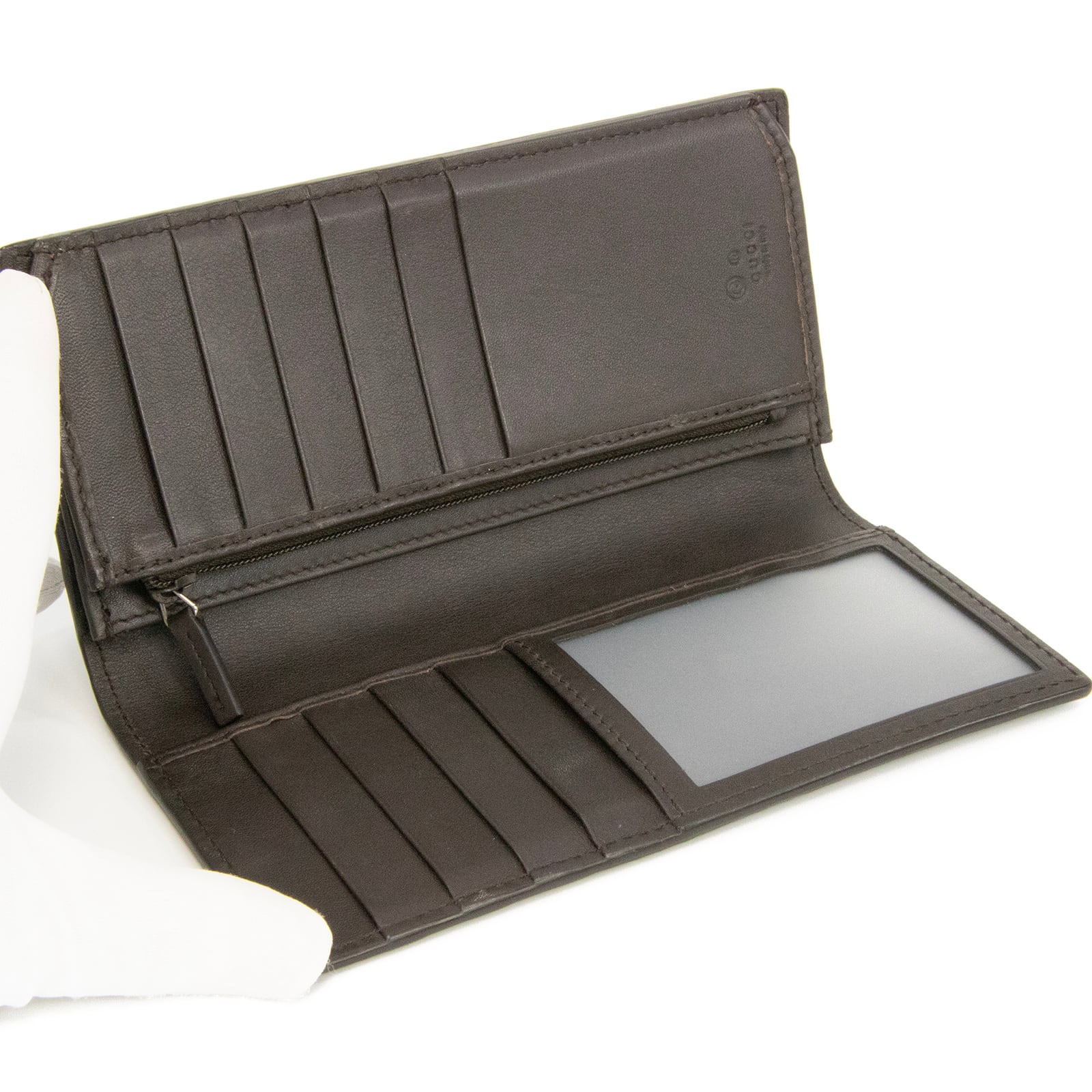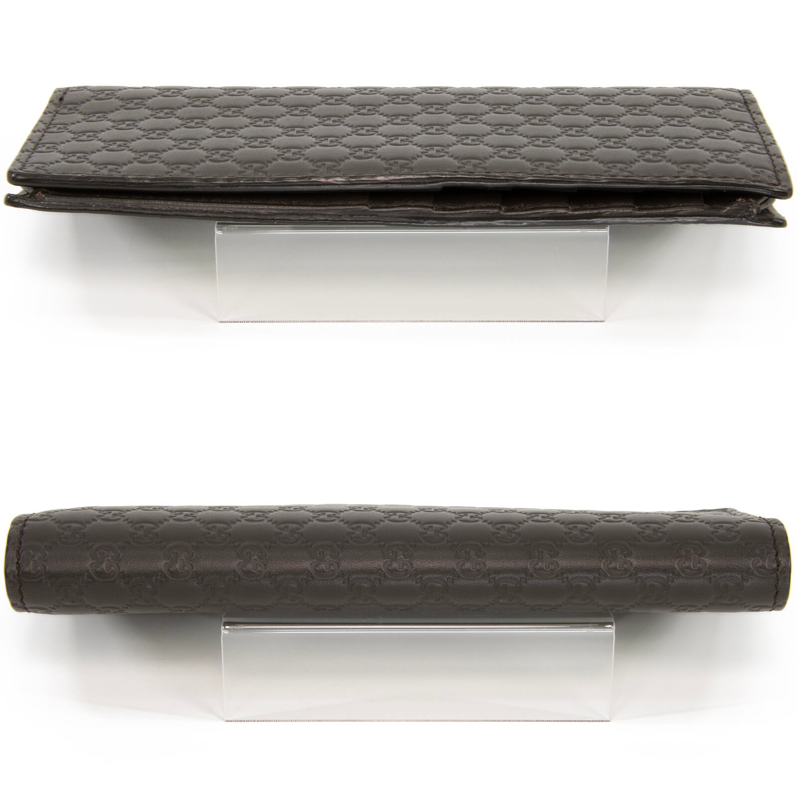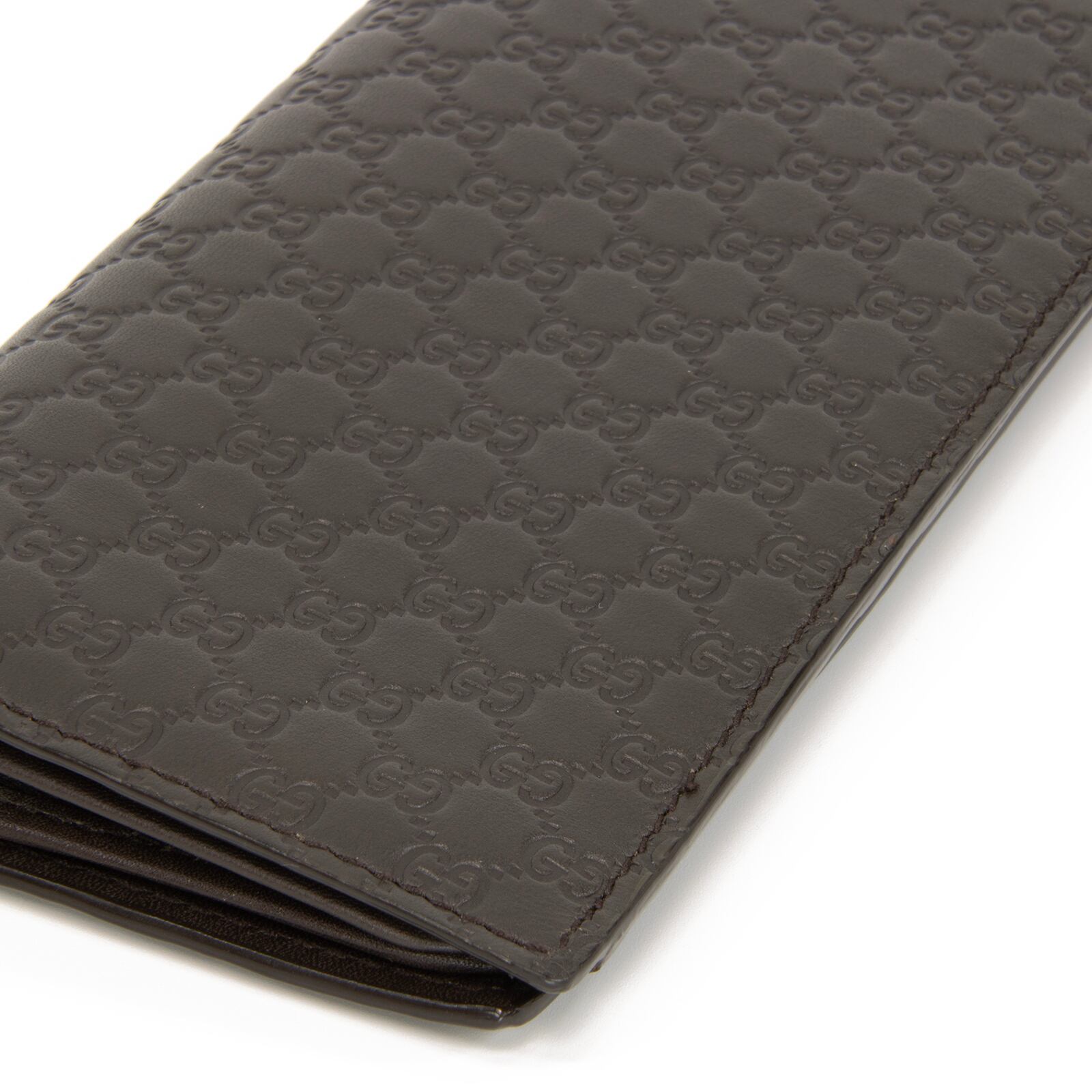 本物 送料無料 グッチ 長財布 二つ折り財布 メンズ レディース マイクログッチシマ 茶色 ブラウン GG柄 マーク スリム スマート 綺麗 T031