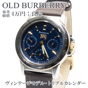 送料無料 バーバリー 腕時計 クオーツ ネイビーブルー シルバー 茶色 メンズ レディース ボーイズ シャドーホース シチズン製 レア X032