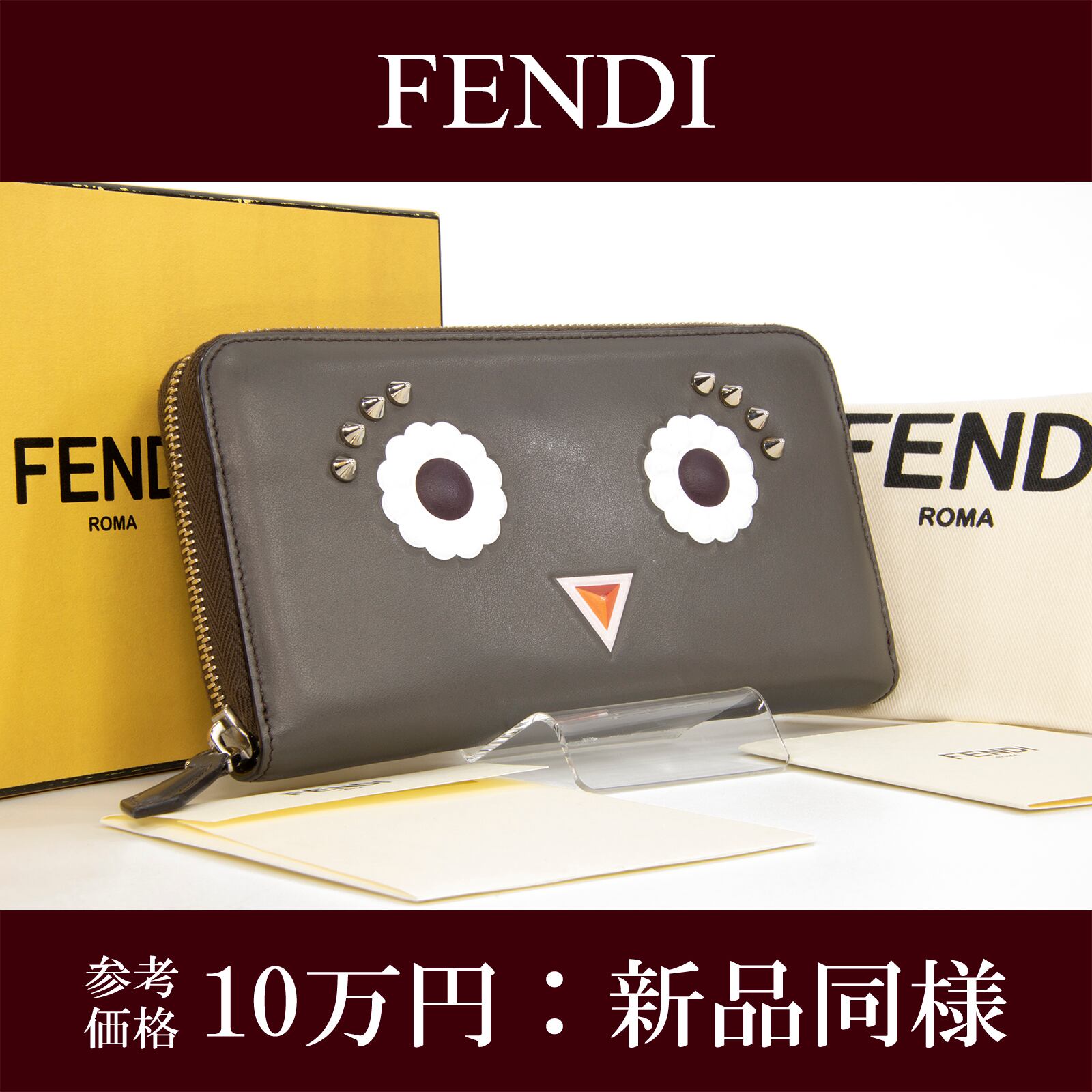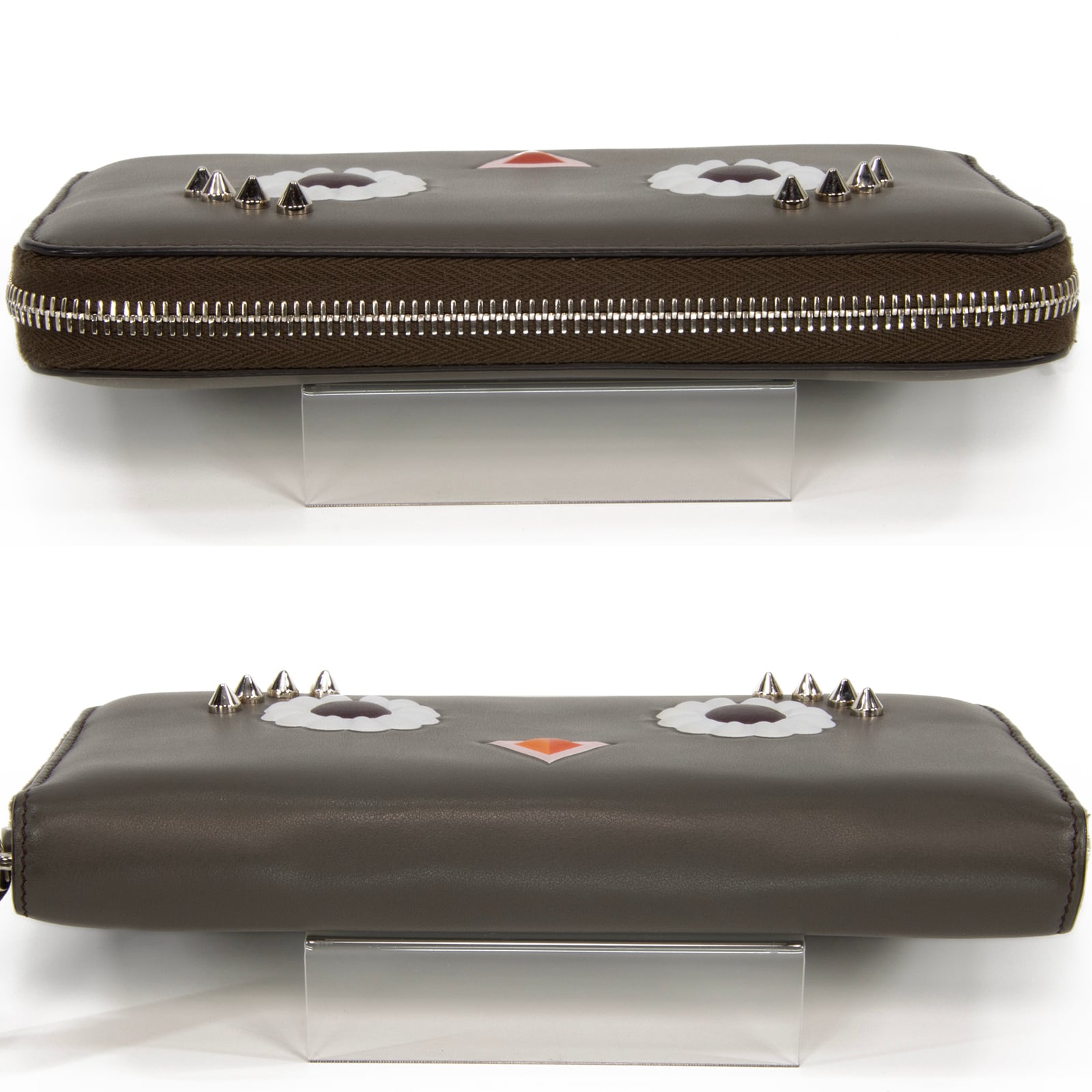 本物 送料無料 フェンディ 長財布 ラウンドファスナー 新品同様 メンズ レディース バッグバグズ モンスター グレー 顔 かわいい 綺麗 G086