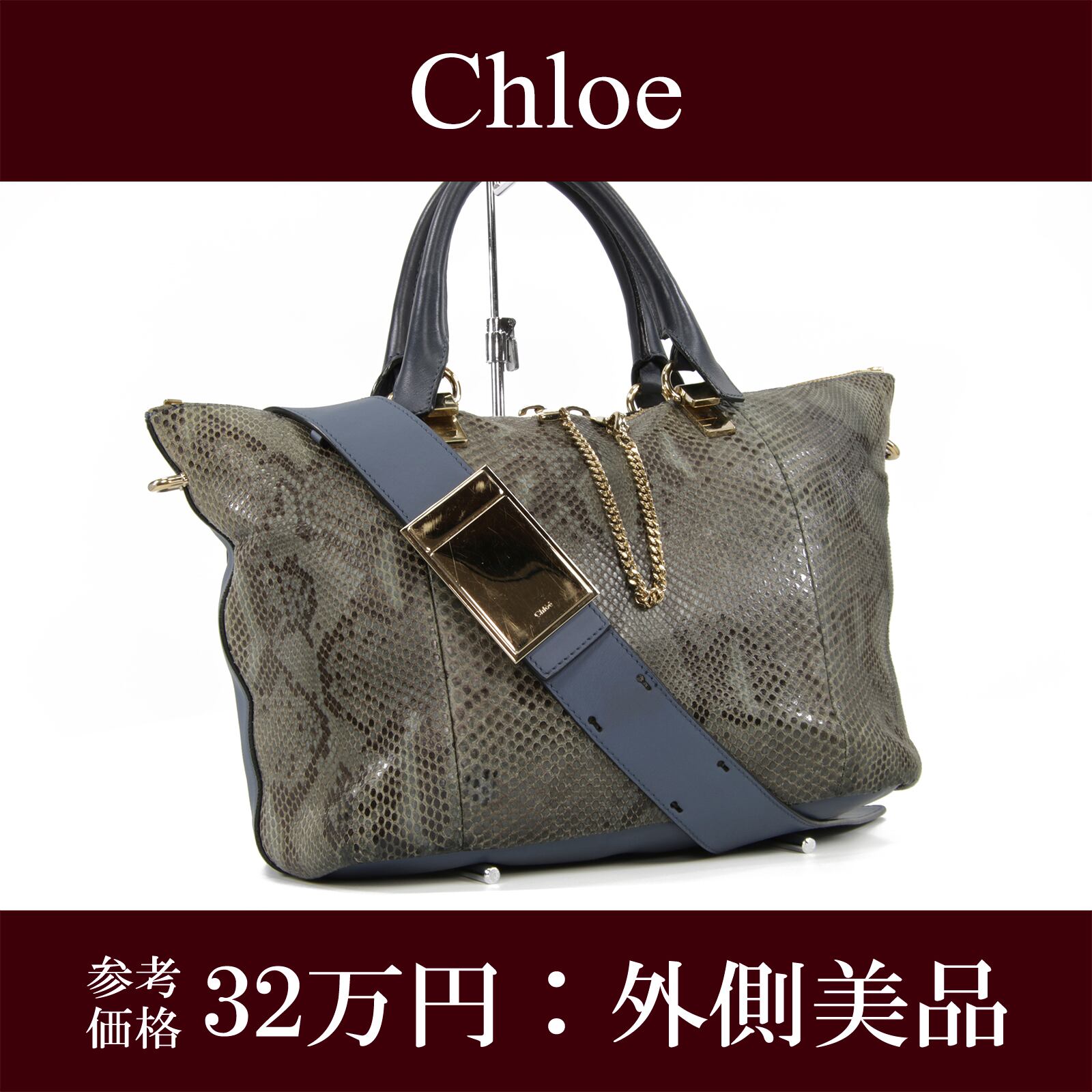 本物 送料無料 クロエ 2WAYショルダーバッグ ハンドバッグ レディース パイソン ベイリー フレンチグレー ランプブラック 斜め掛け 鞄 E339