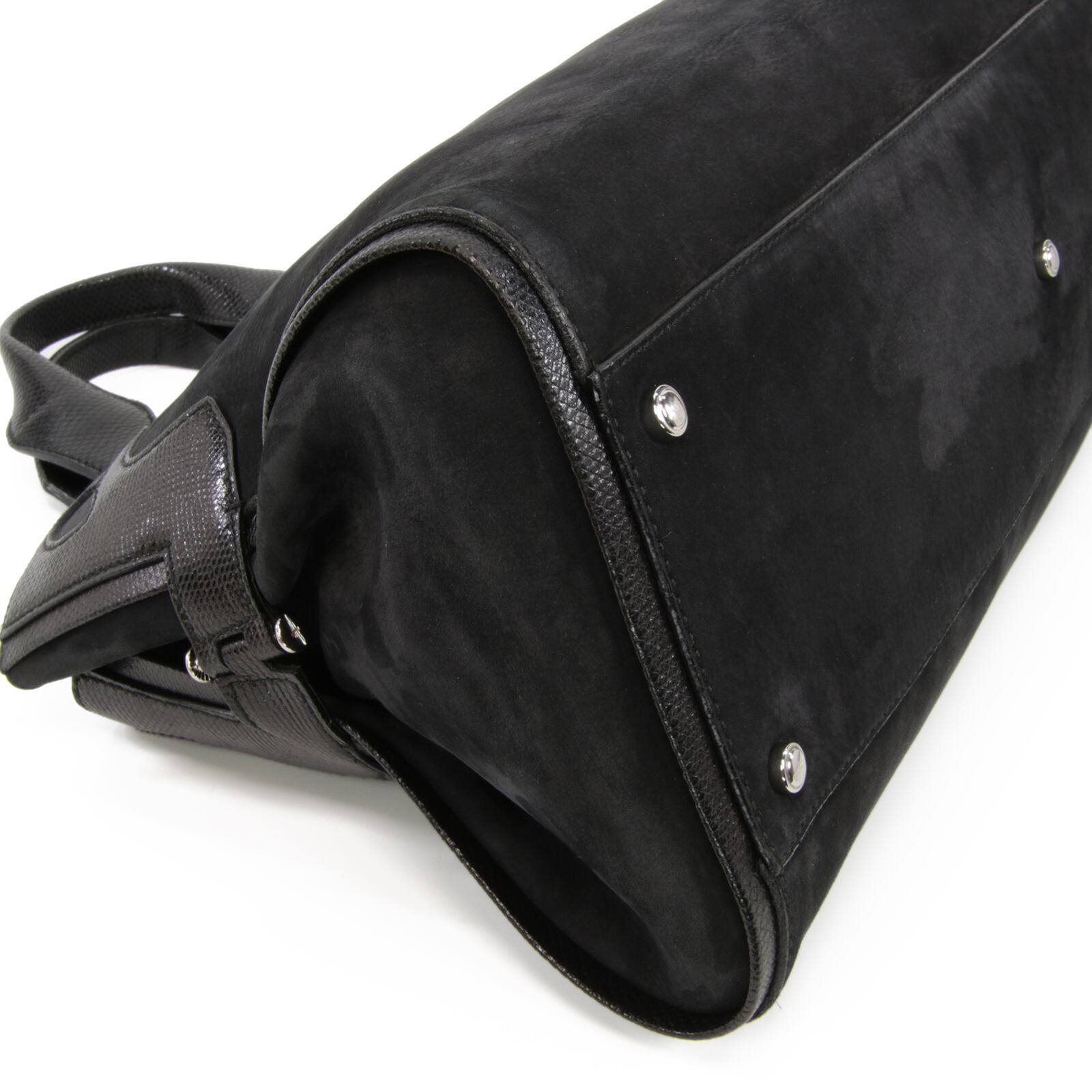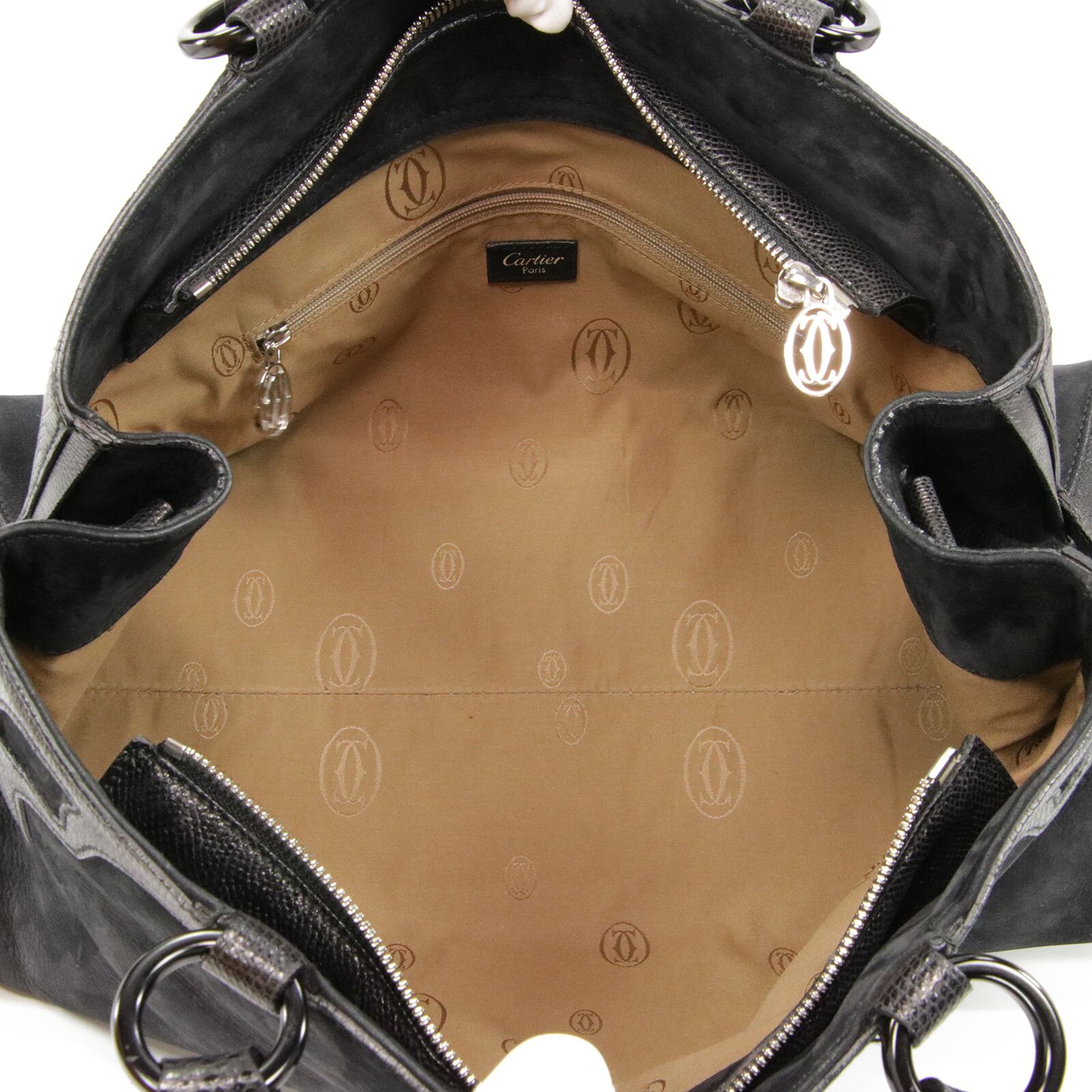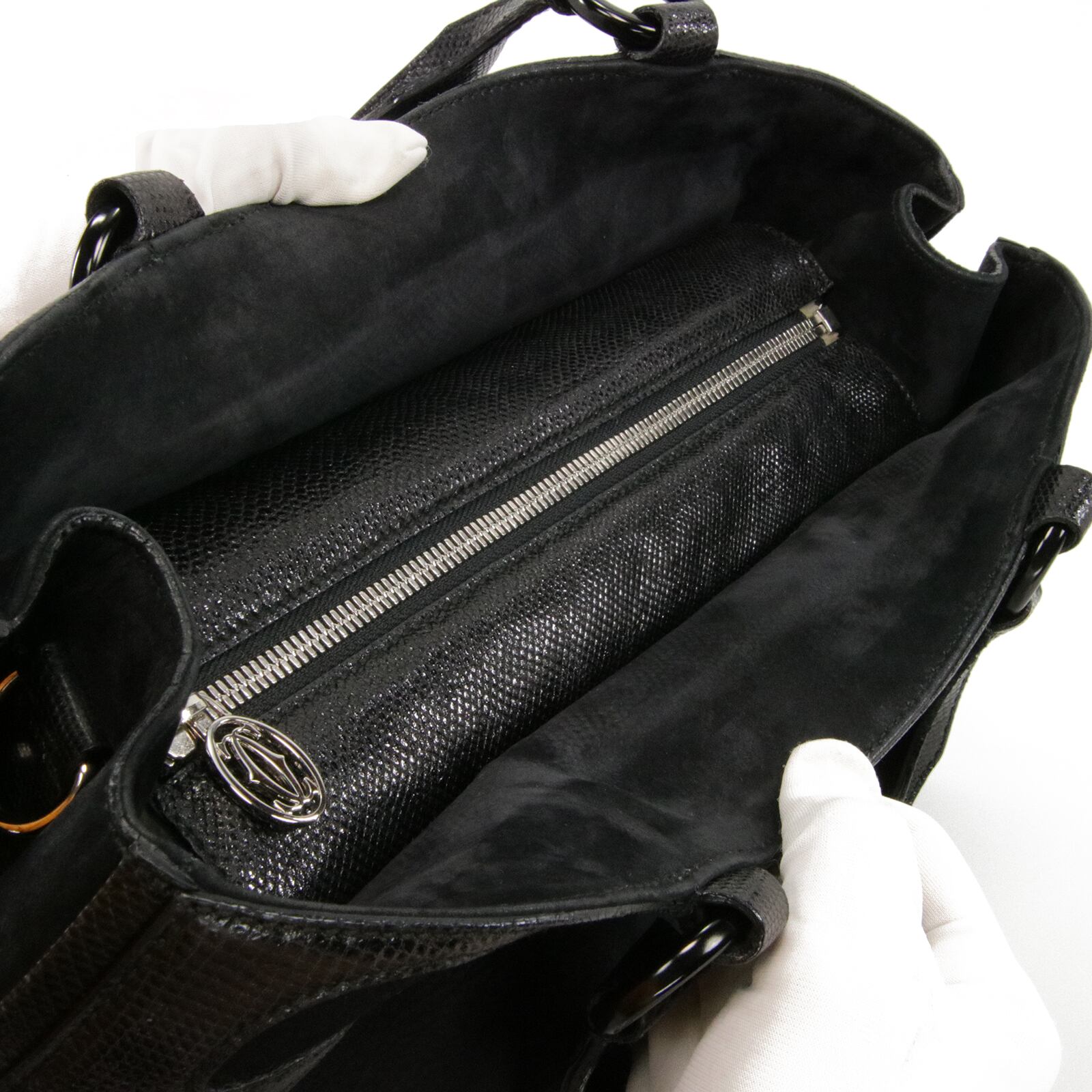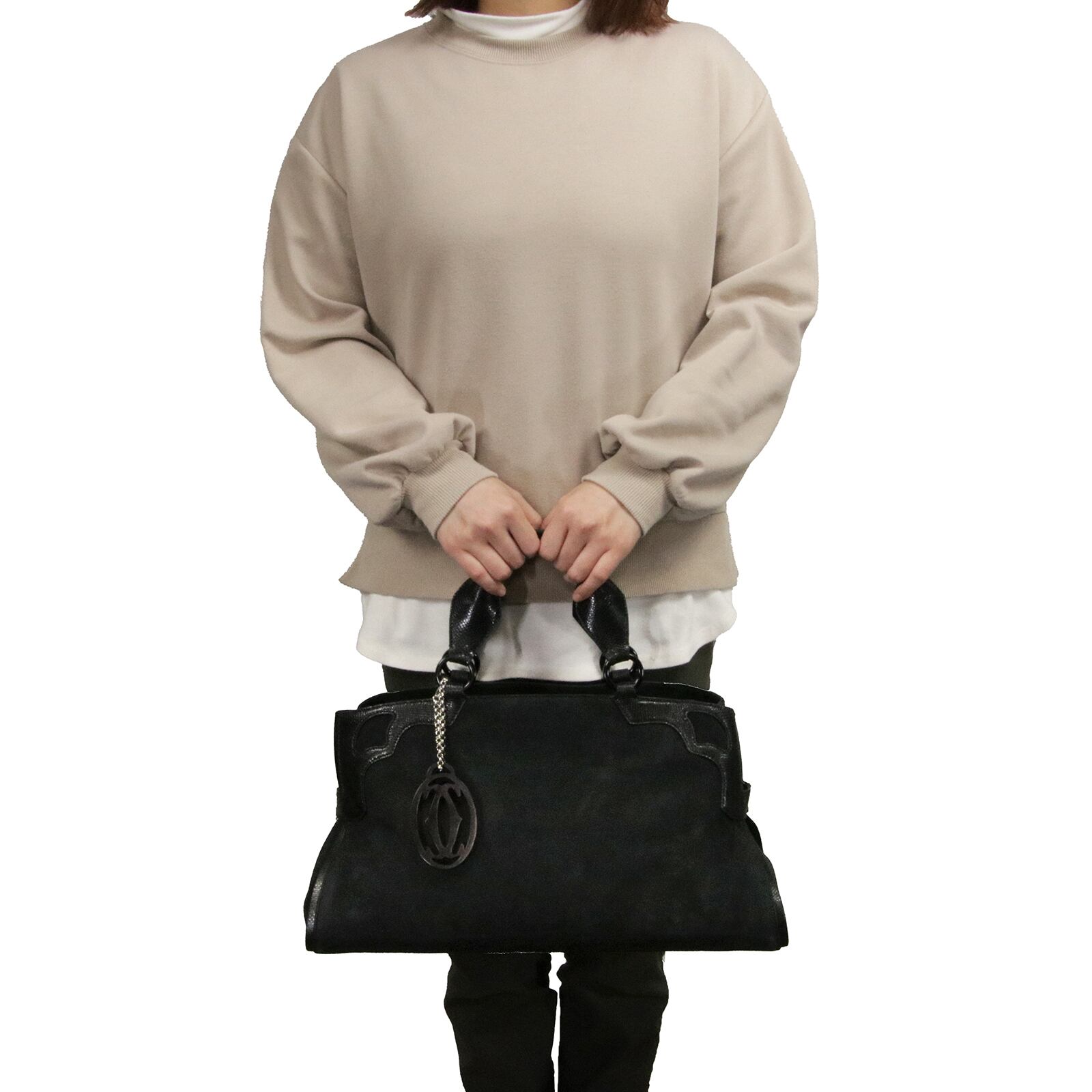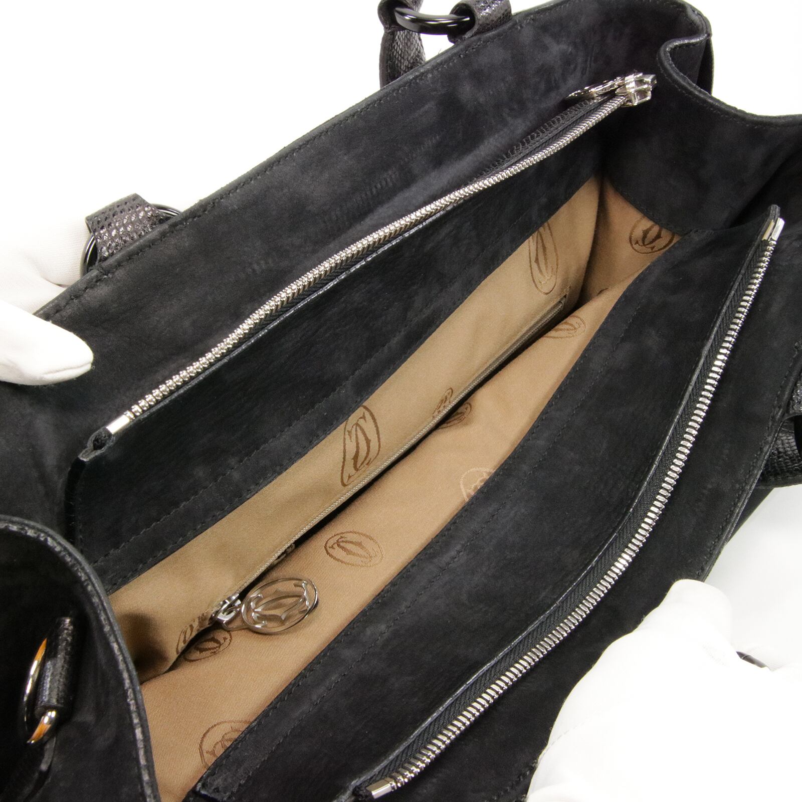 本物 送料無料 カルティエ ハンドバッグ レディース パイソン型押しレザー マルチェロ ドゥMM 黒 ブラック 蛇柄 レア 綺麗 鞄 バック E340