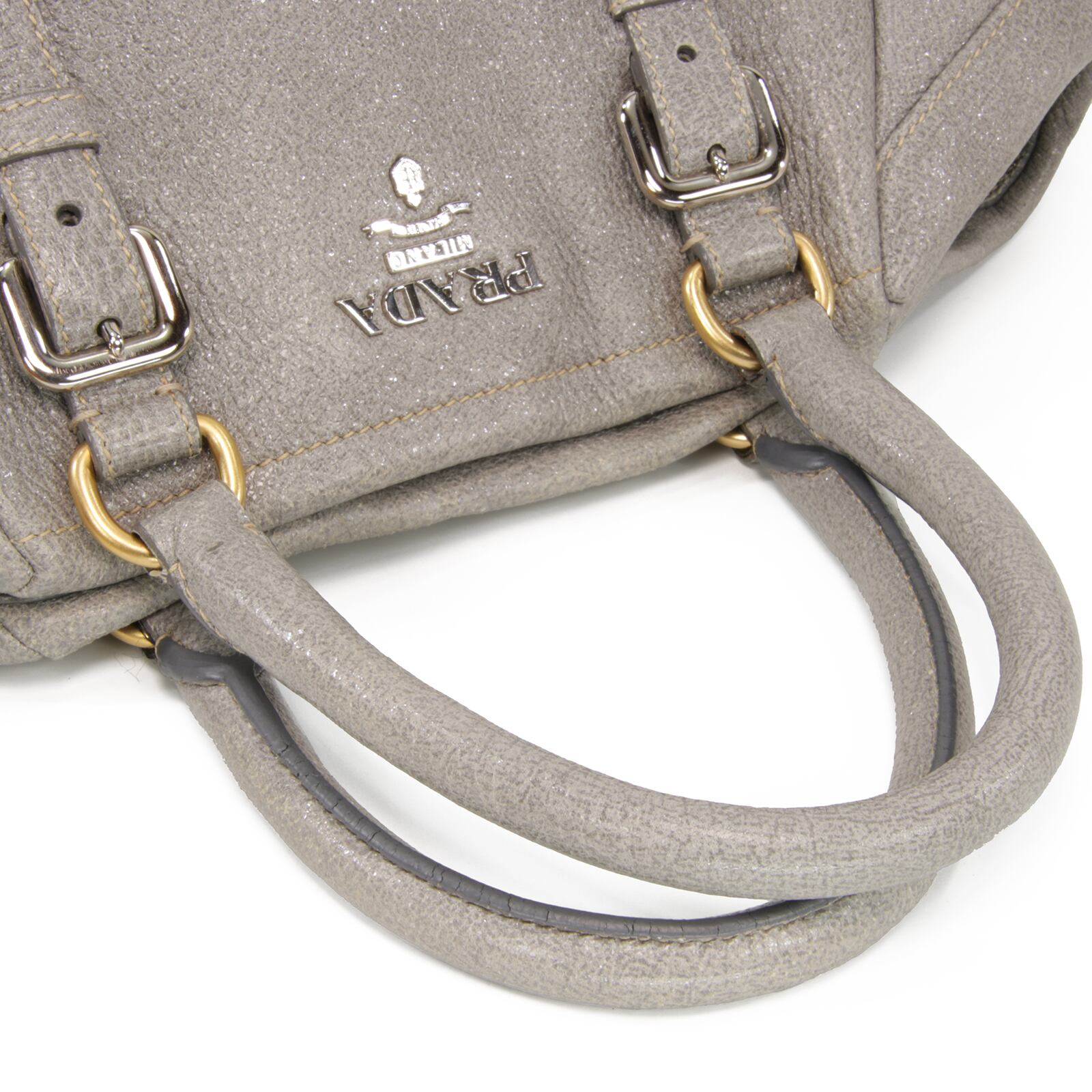 本物 送料無料 プラダ 2WAYショルダーバッグ ハンドバッグ メンズ レディース グレー 斜め掛け ロゴ キラキラ 鹿革 レア 鞄 バック E342