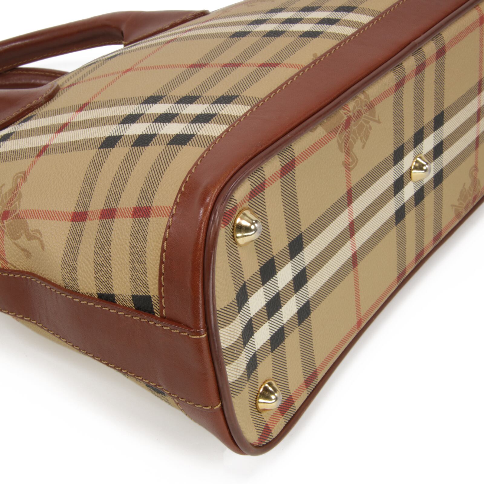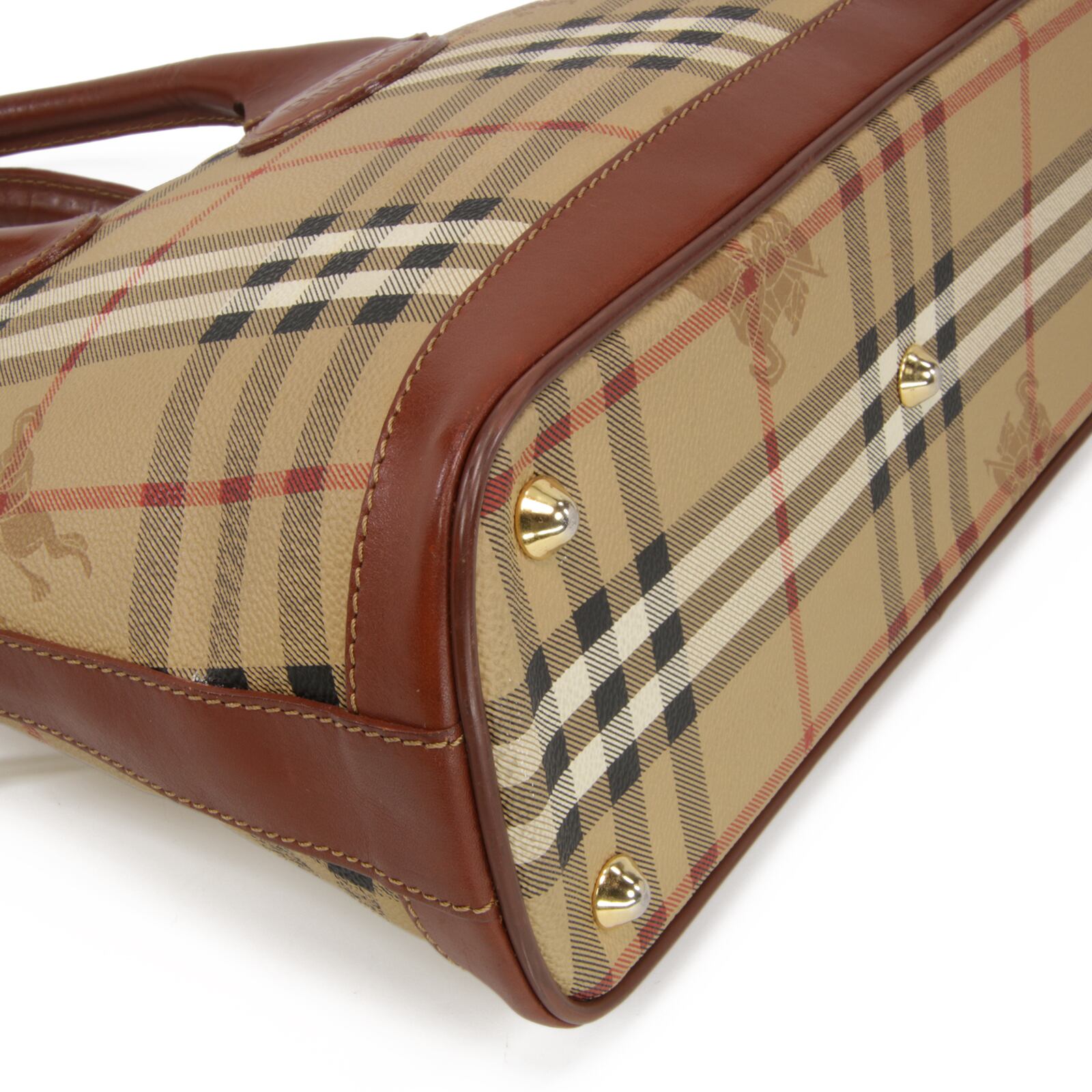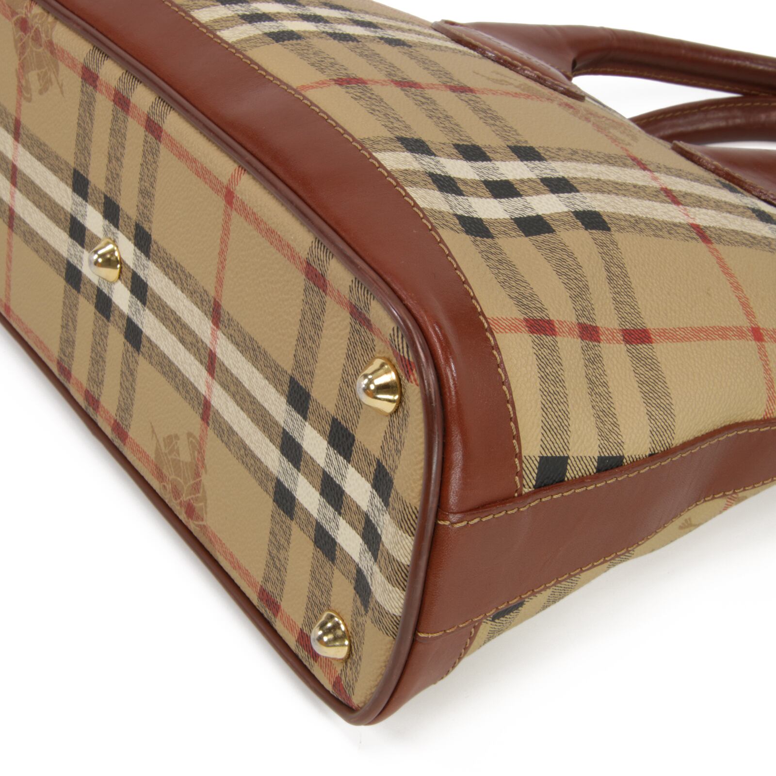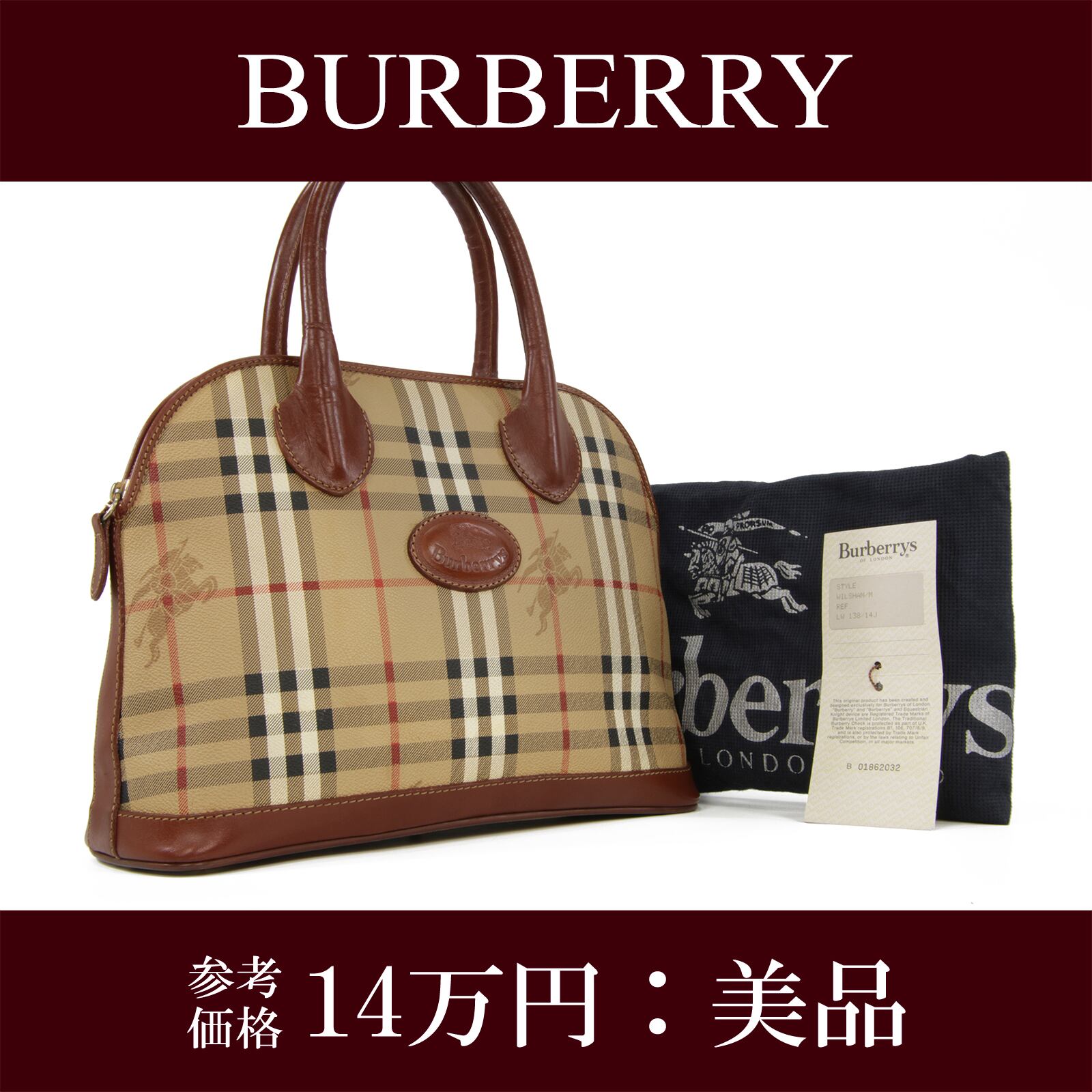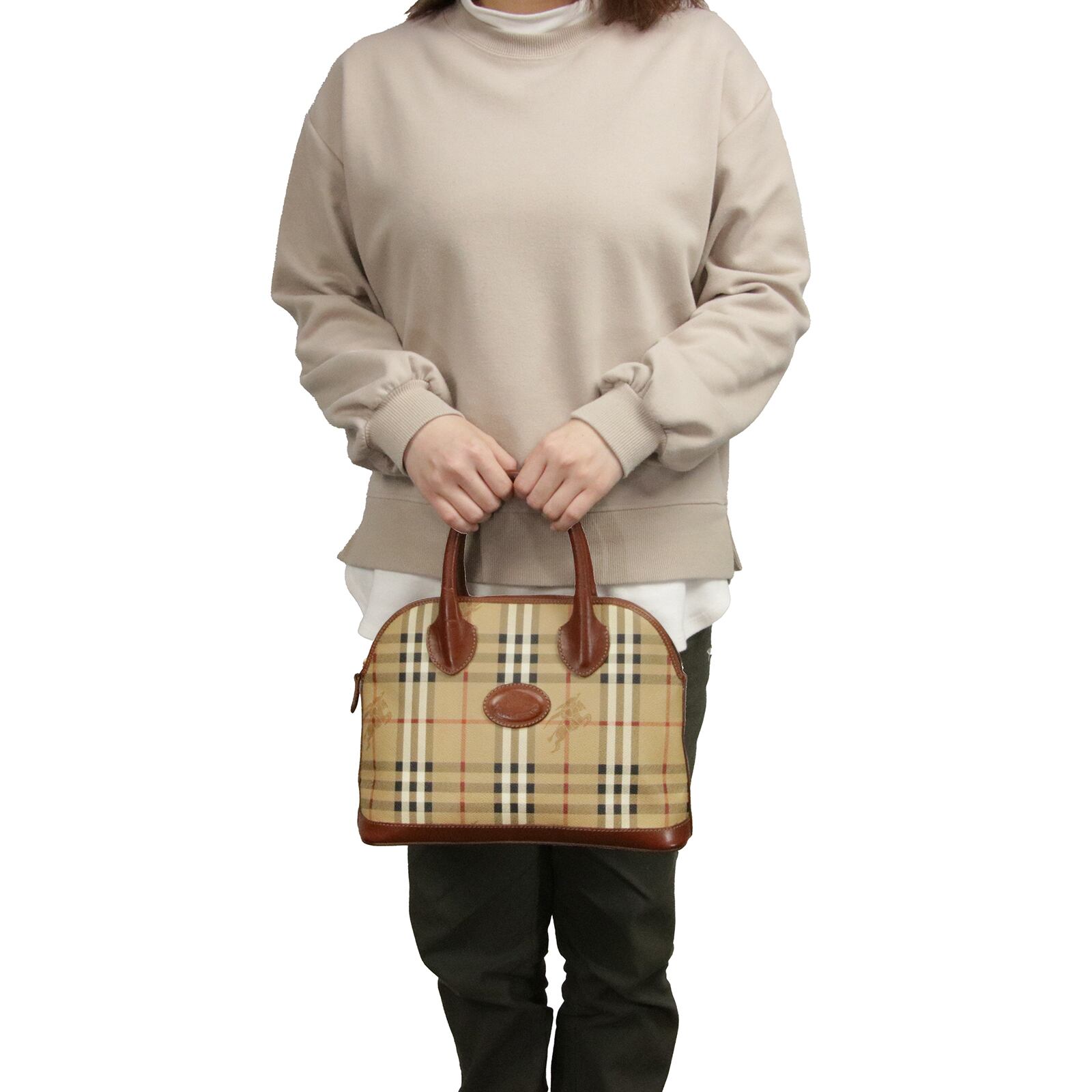 本物 送料無料 バーバリー ハンドバッグ メンズ レディース ベージュ 茶色 自立 かっちり ロゴ マーク シャドウホース ノバチェック E344