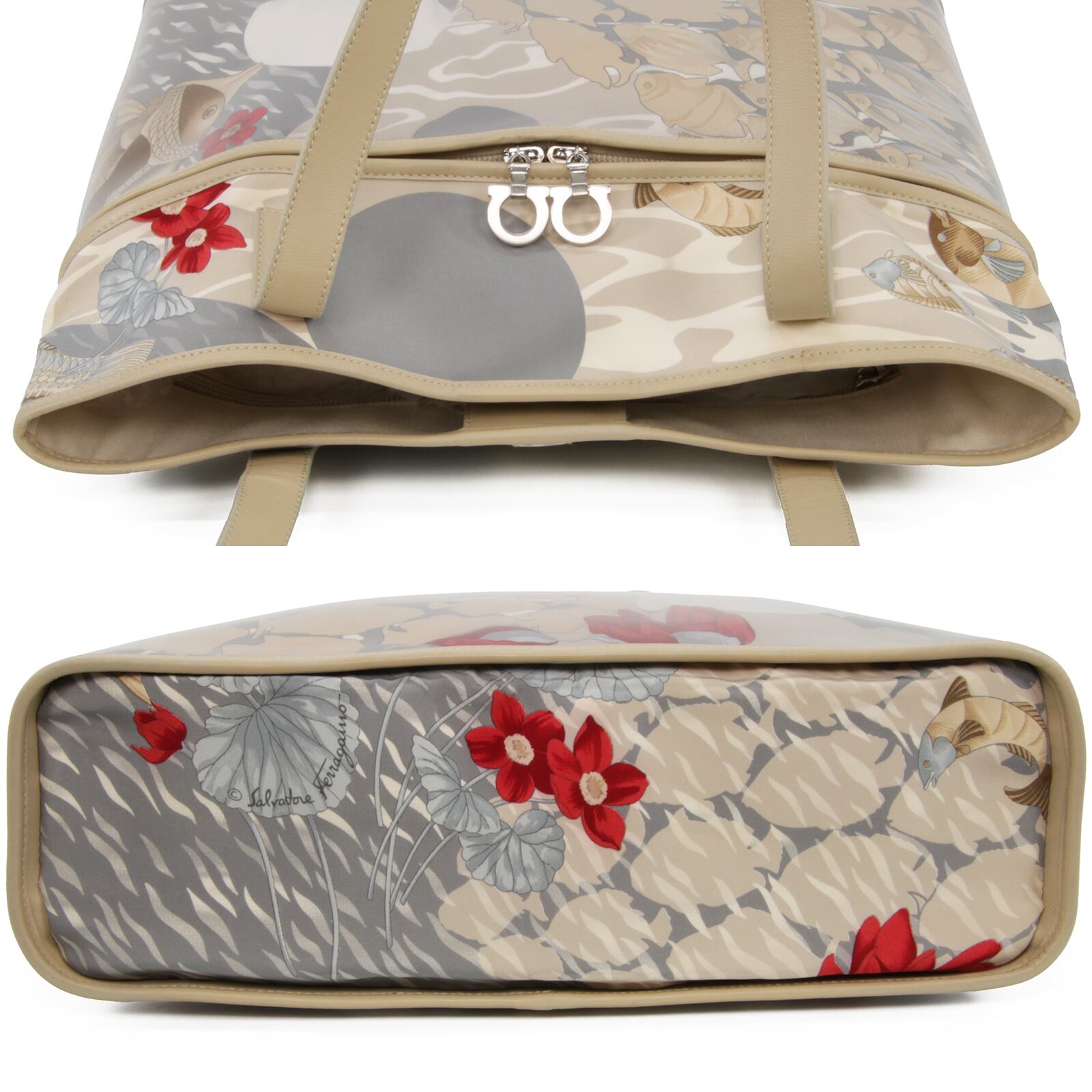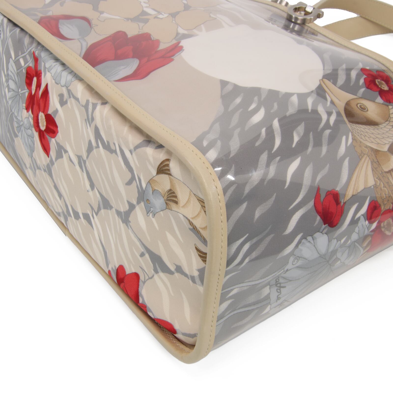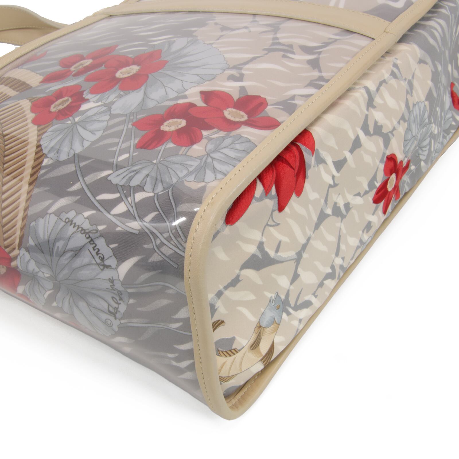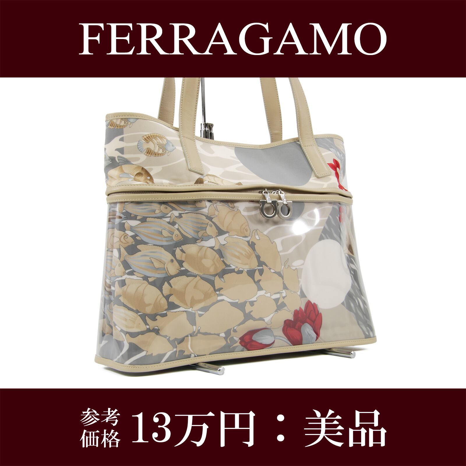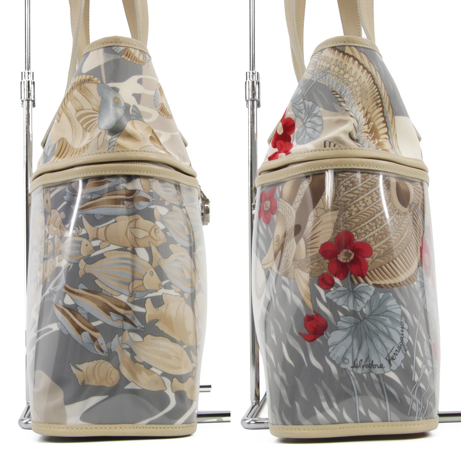 本物 送料無料 フェラガモ ハンドバッグ セミショルダーバッグ レディース ガンチーニ ベージュ 赤 白 花 フラワー 綺麗 鞄 バック E347