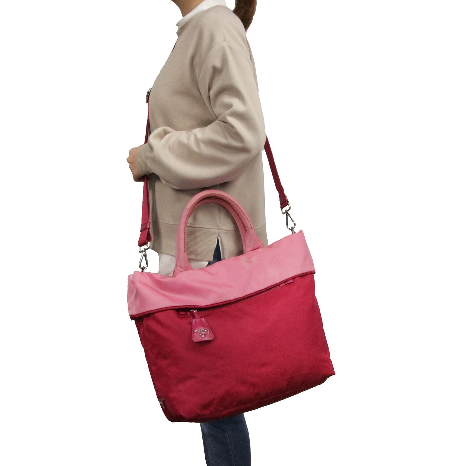 本物 送料無料 プラダ 2WAYショルダーバッグ ハンドバッグ レディース ナイロン パープル ピンク 斜め掛け かわいい ロゴ 鞄 バック E352
