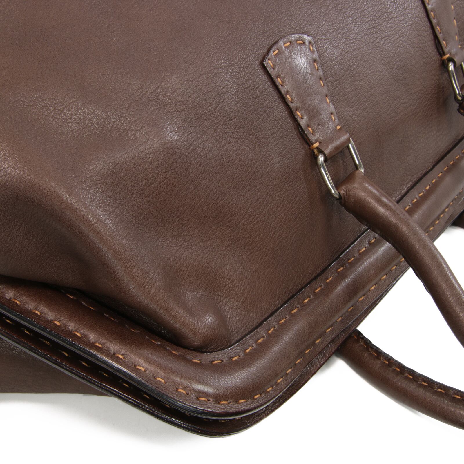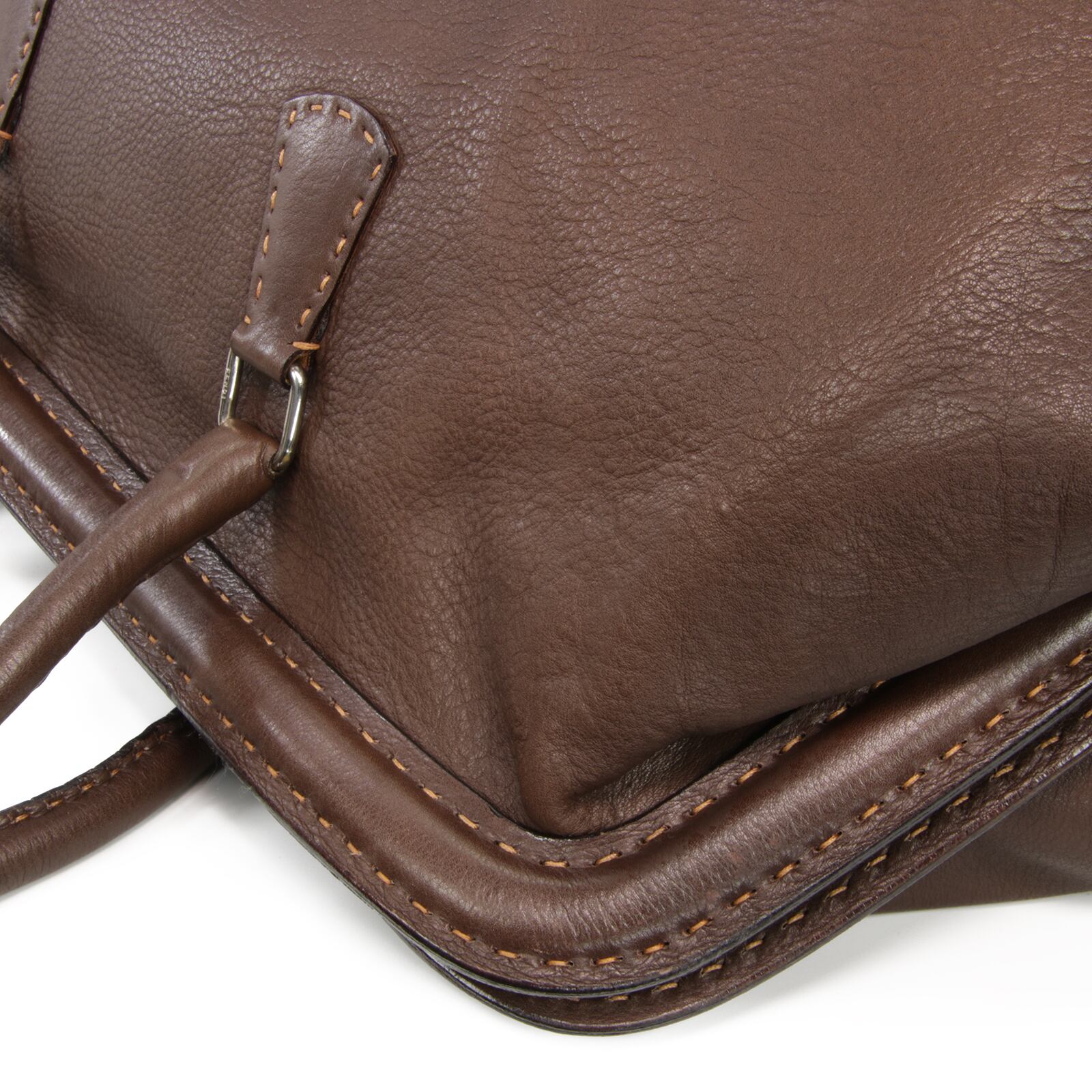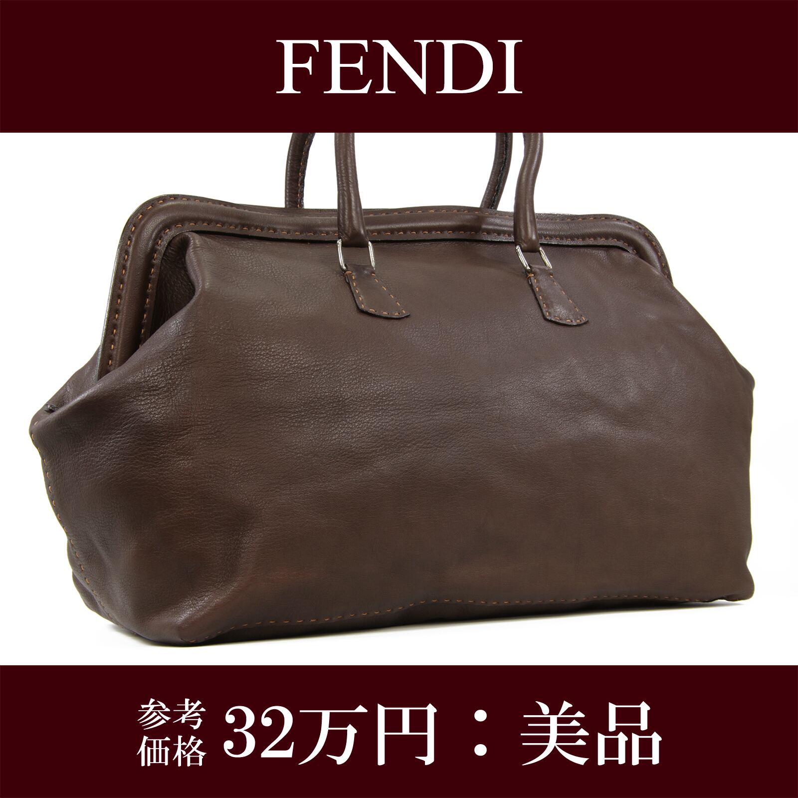 本物 送料無料 フェンディ ハンドバッグ ボストンバッグ メンズ レディース セレリア 茶色 ブラウン 革 レザー 大容量 レア 鞄 バック F195