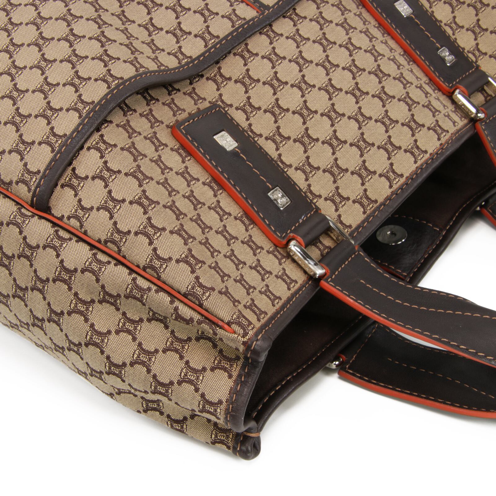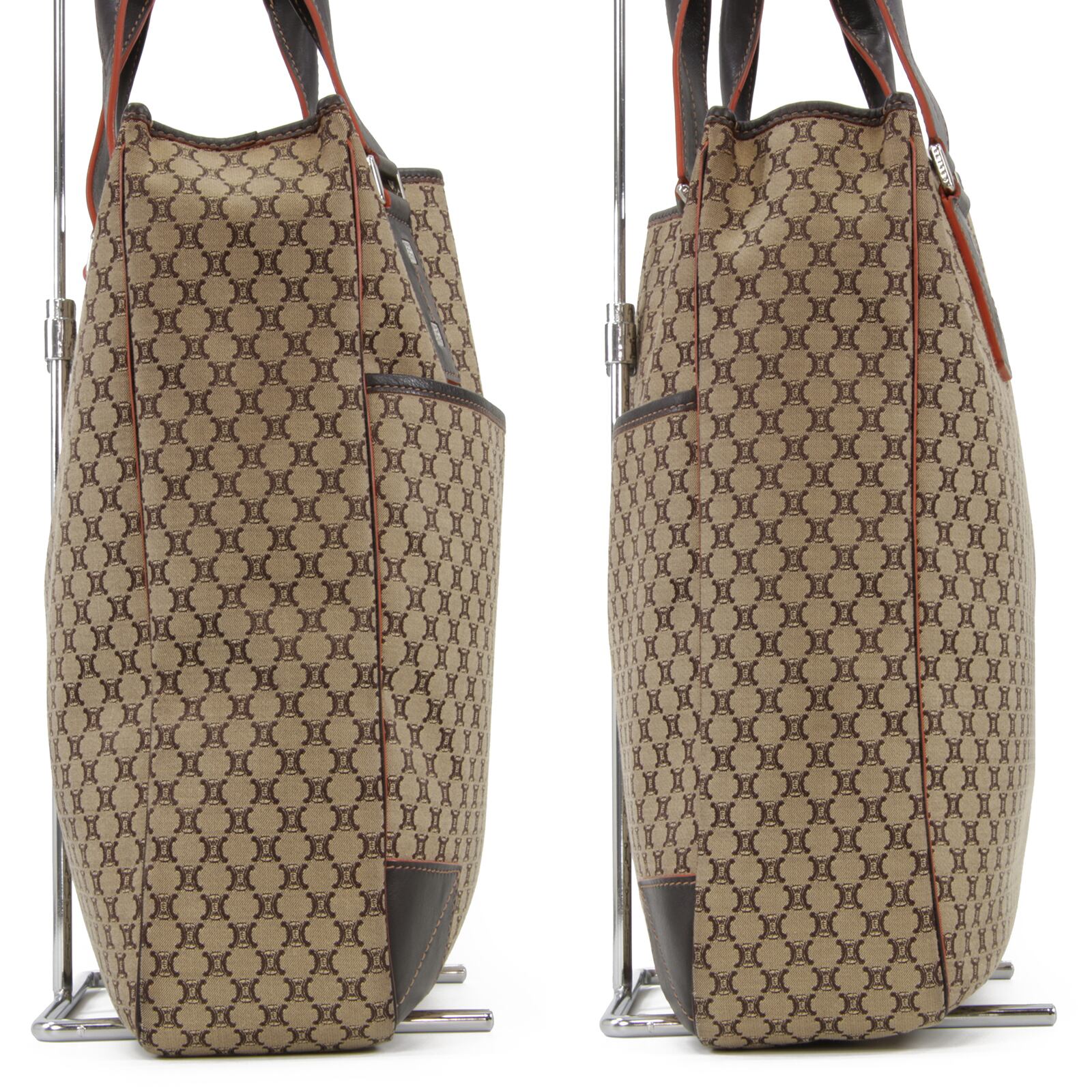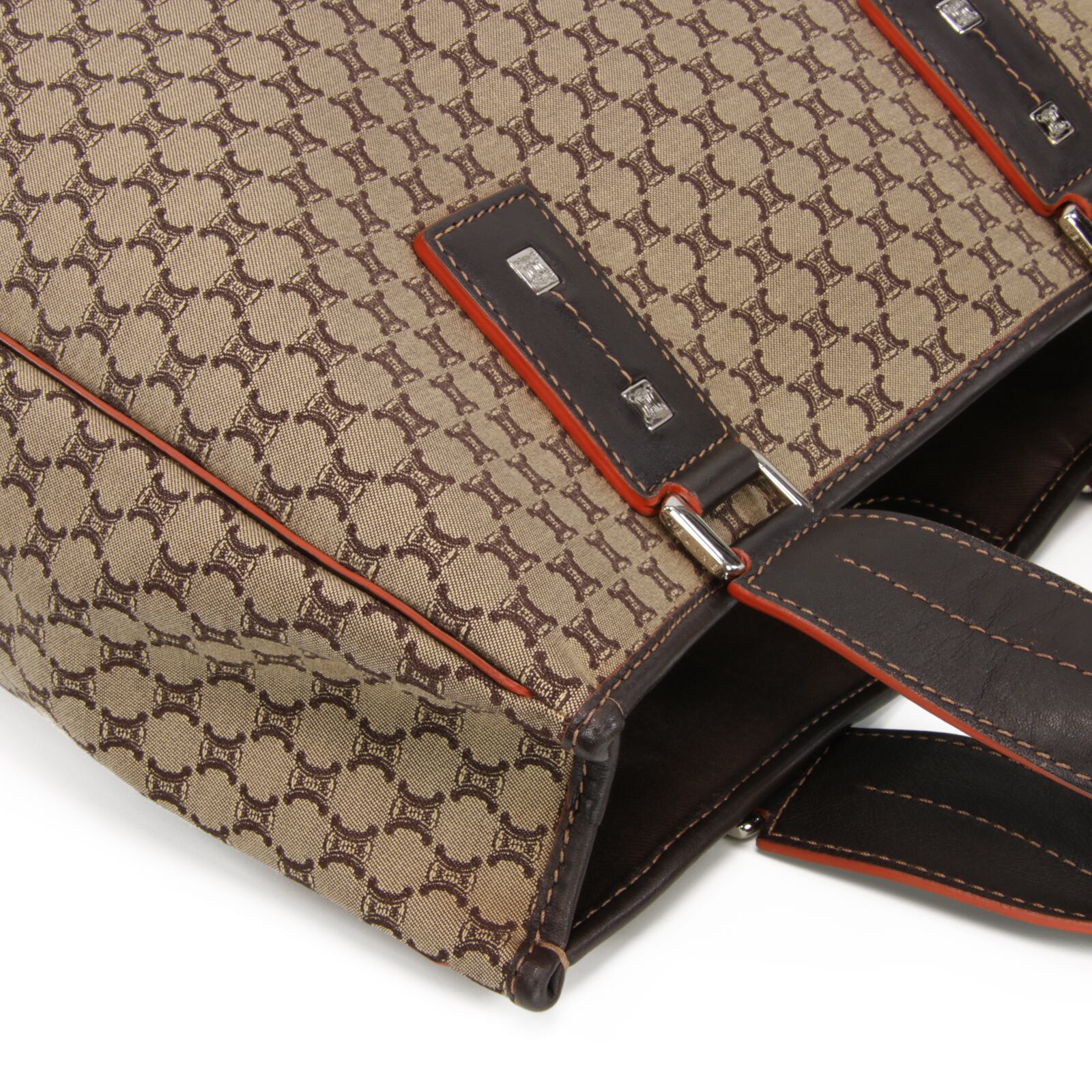 本物 送料無料 セリーヌ トートバッグ ハンドバッグ メンズ レディース マカダム ベージュ ブラウン ロゴ マーク ブラゾン 鞄 バック F197