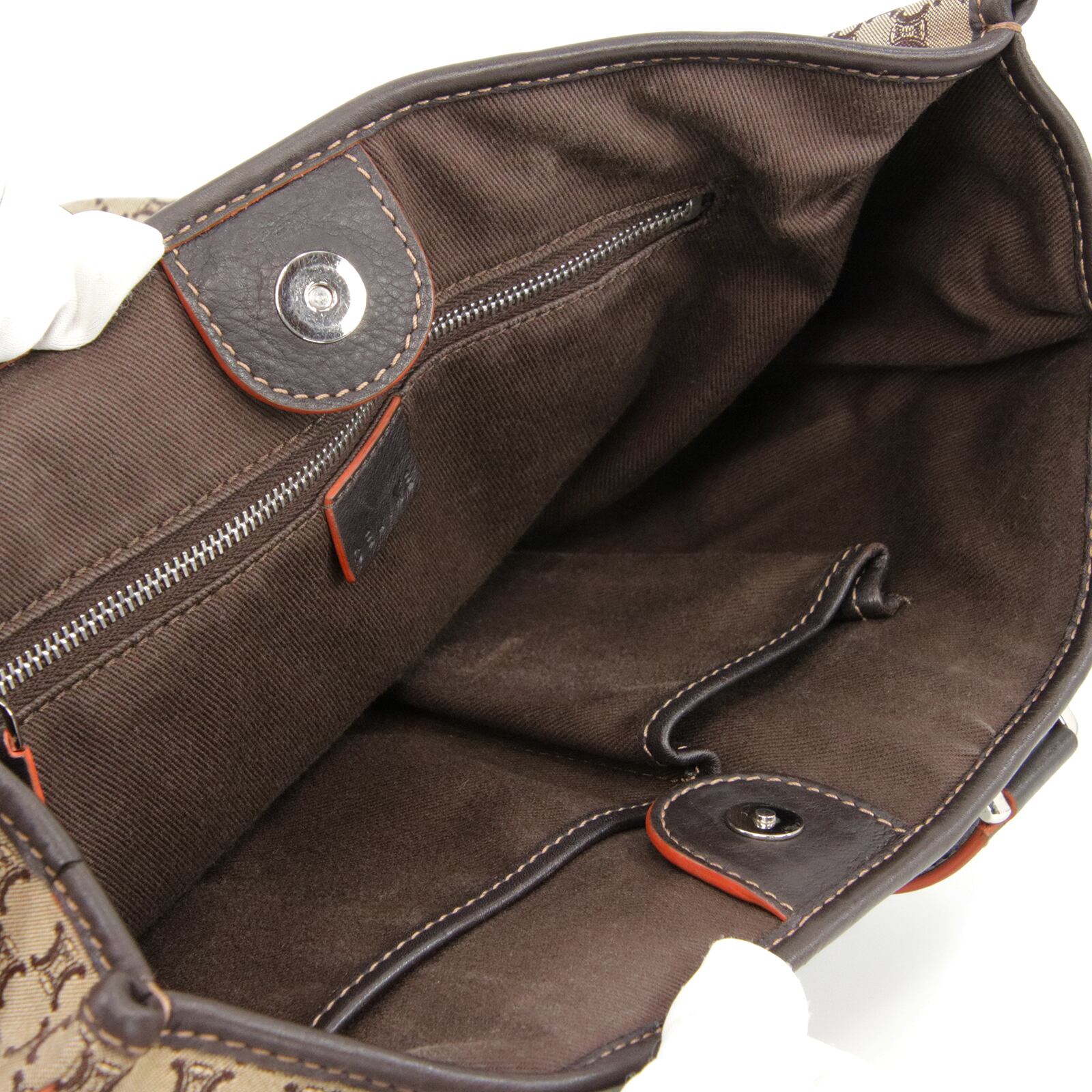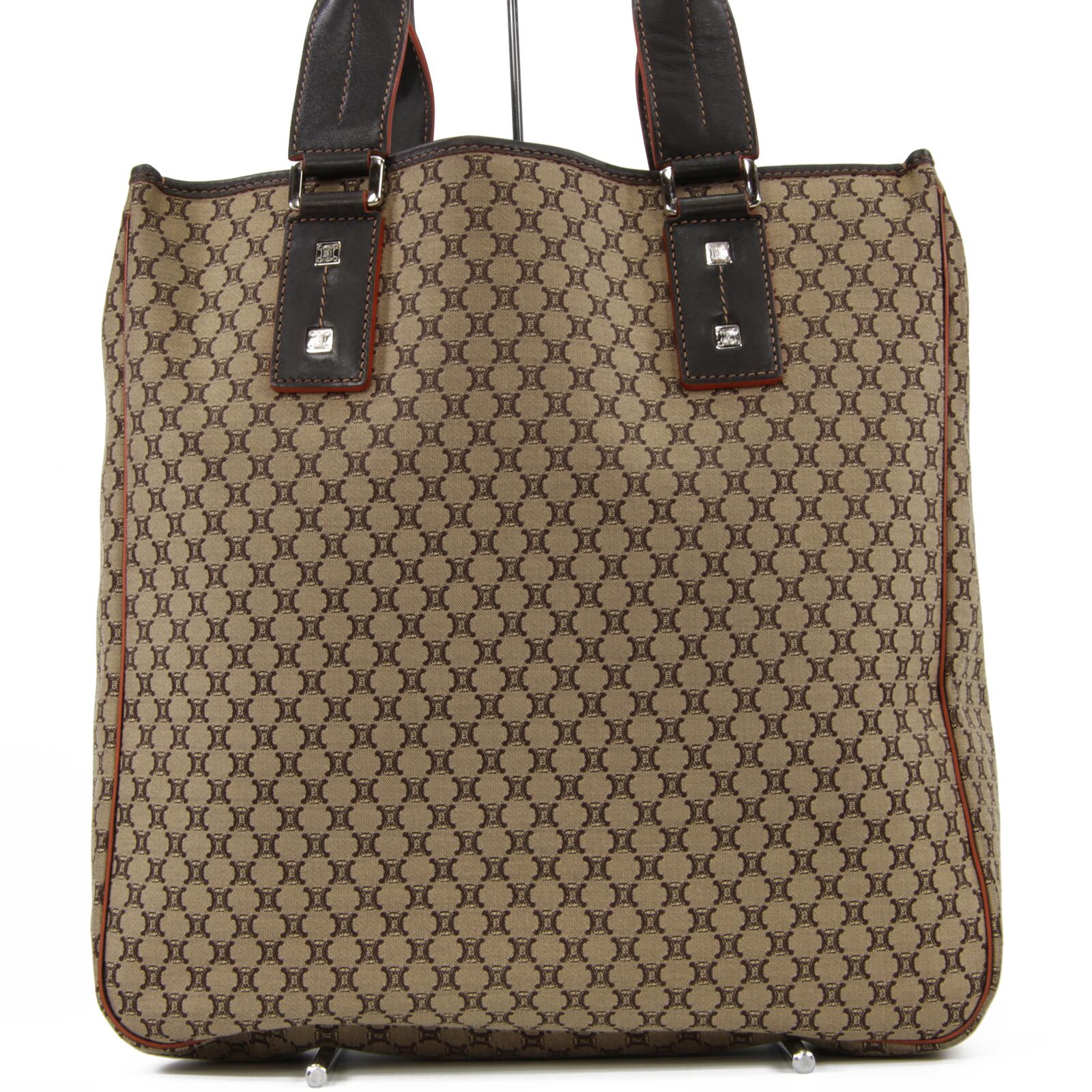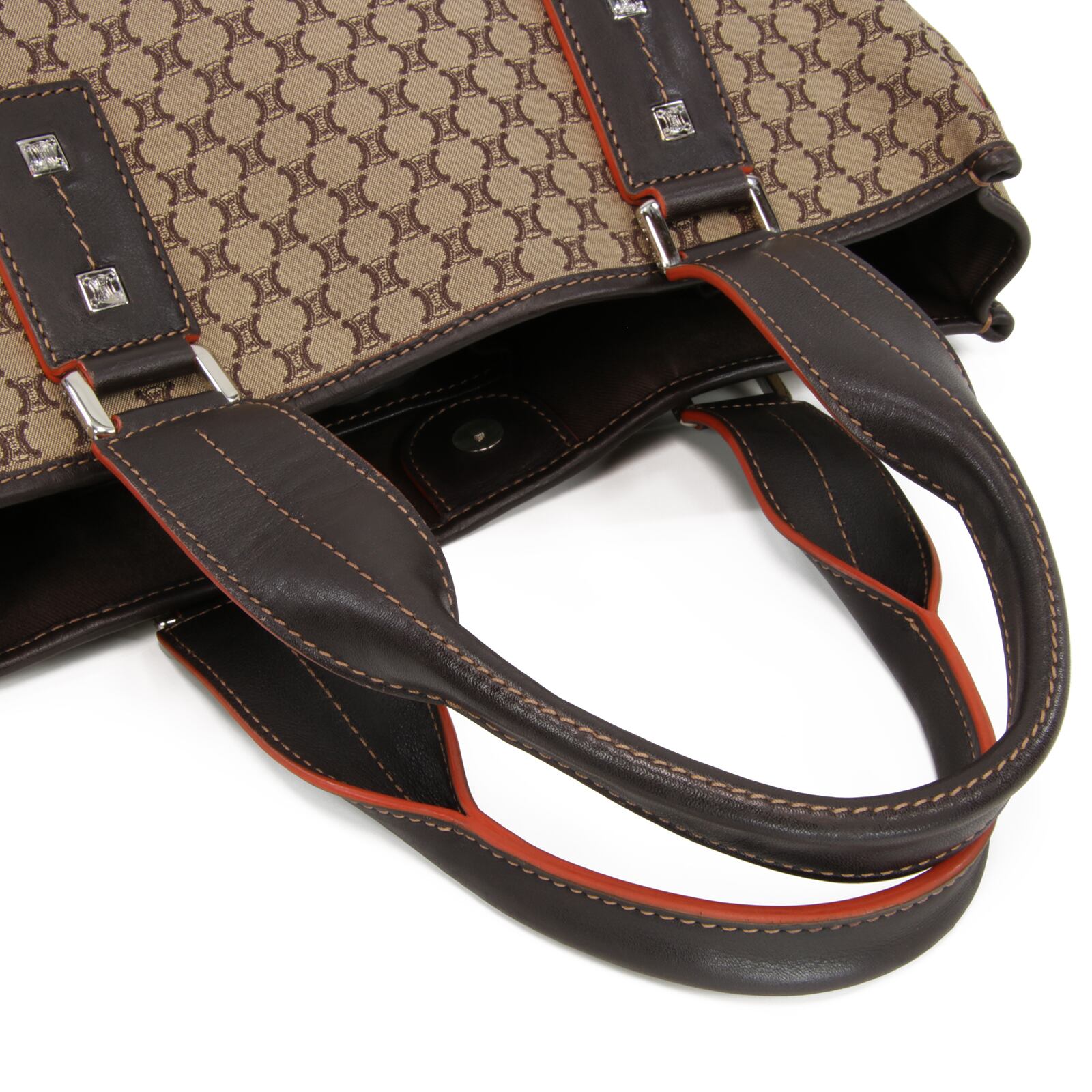本物 送料無料 セリーヌ トートバッグ ハンドバッグ メンズ レディース マカダム ベージュ ブラウン ロゴ マーク ブラゾン 鞄 バック F197
