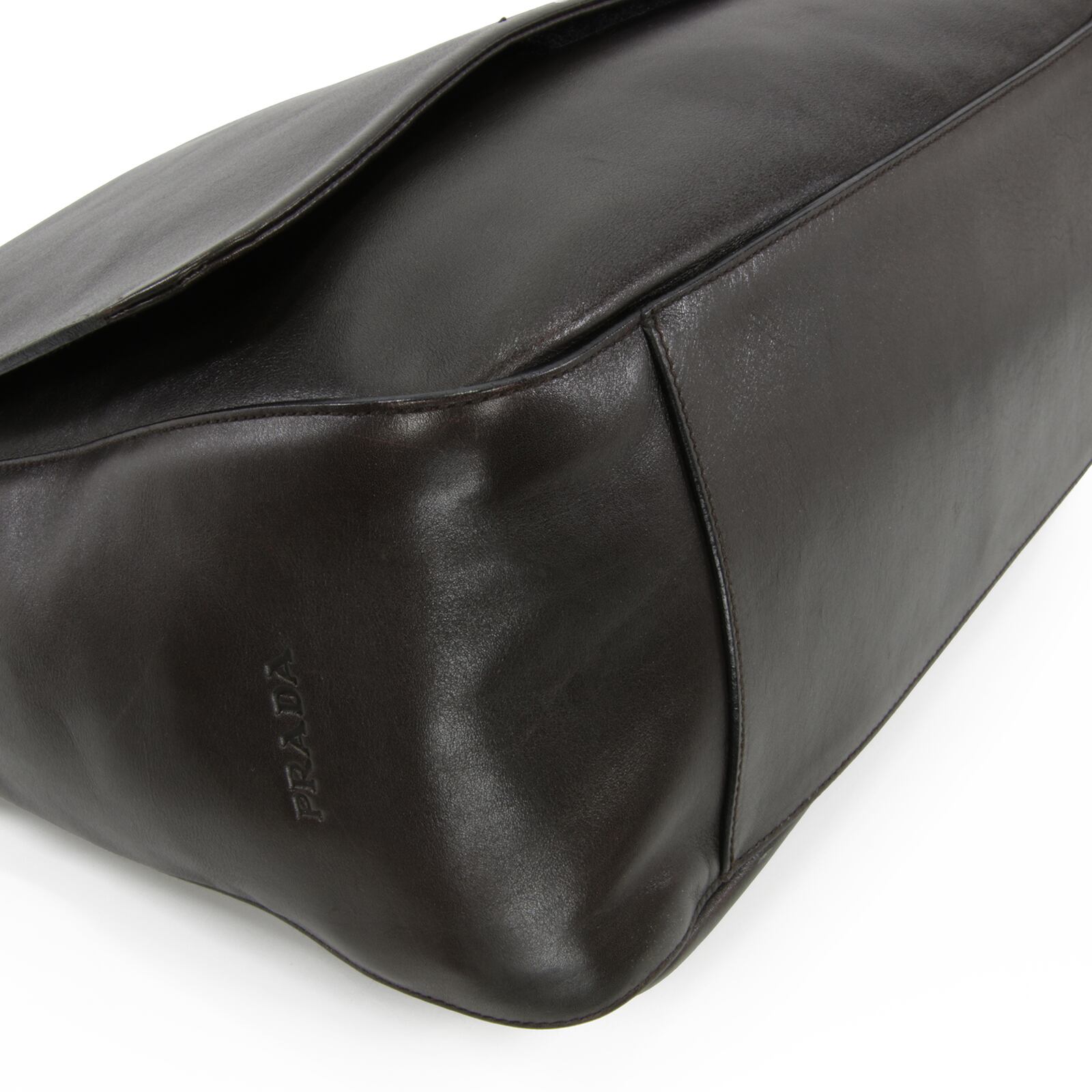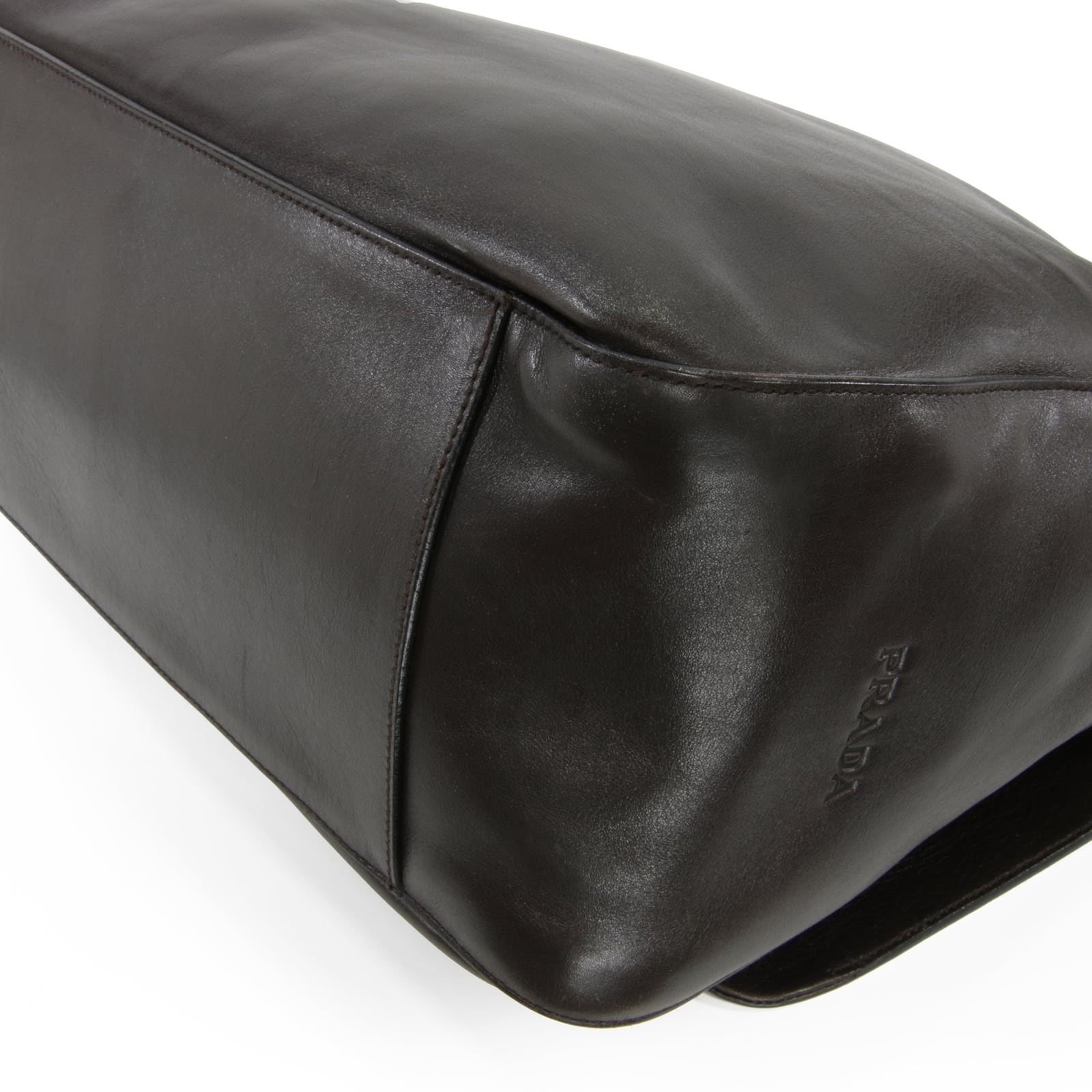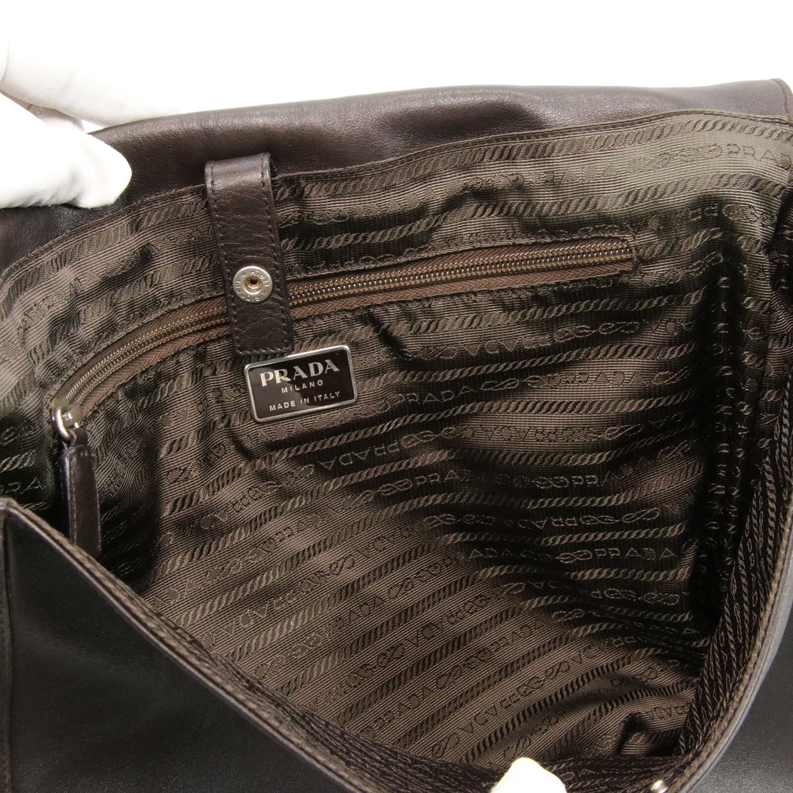 本物 送料無料 プラダ ショルダーバッグ メンズ レディース 茶色 ブラウン 革 レザー A4 斜め掛け 大容量 ロゴ レア 綺麗 鞄 バック I181
