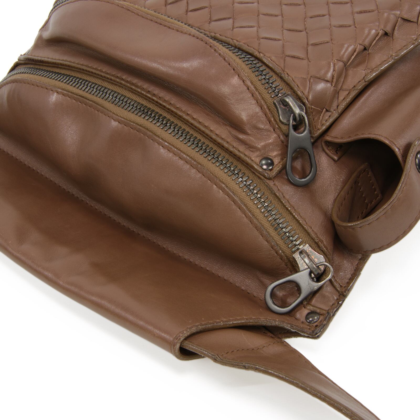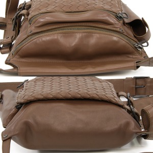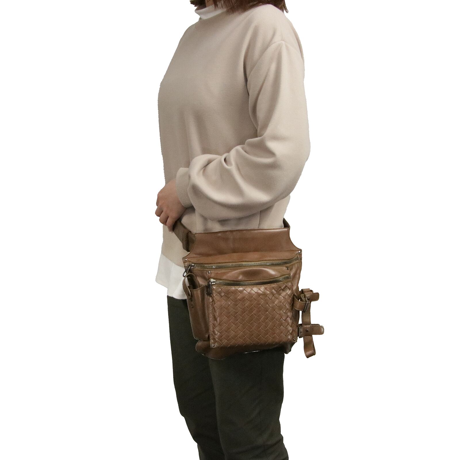 本物 送料無料 ボッテガ ウエストポーチ メンズ レディース イントレチャート 茶色 ブラウン ガンメタリック金具 編み込み 鞄 バック I182