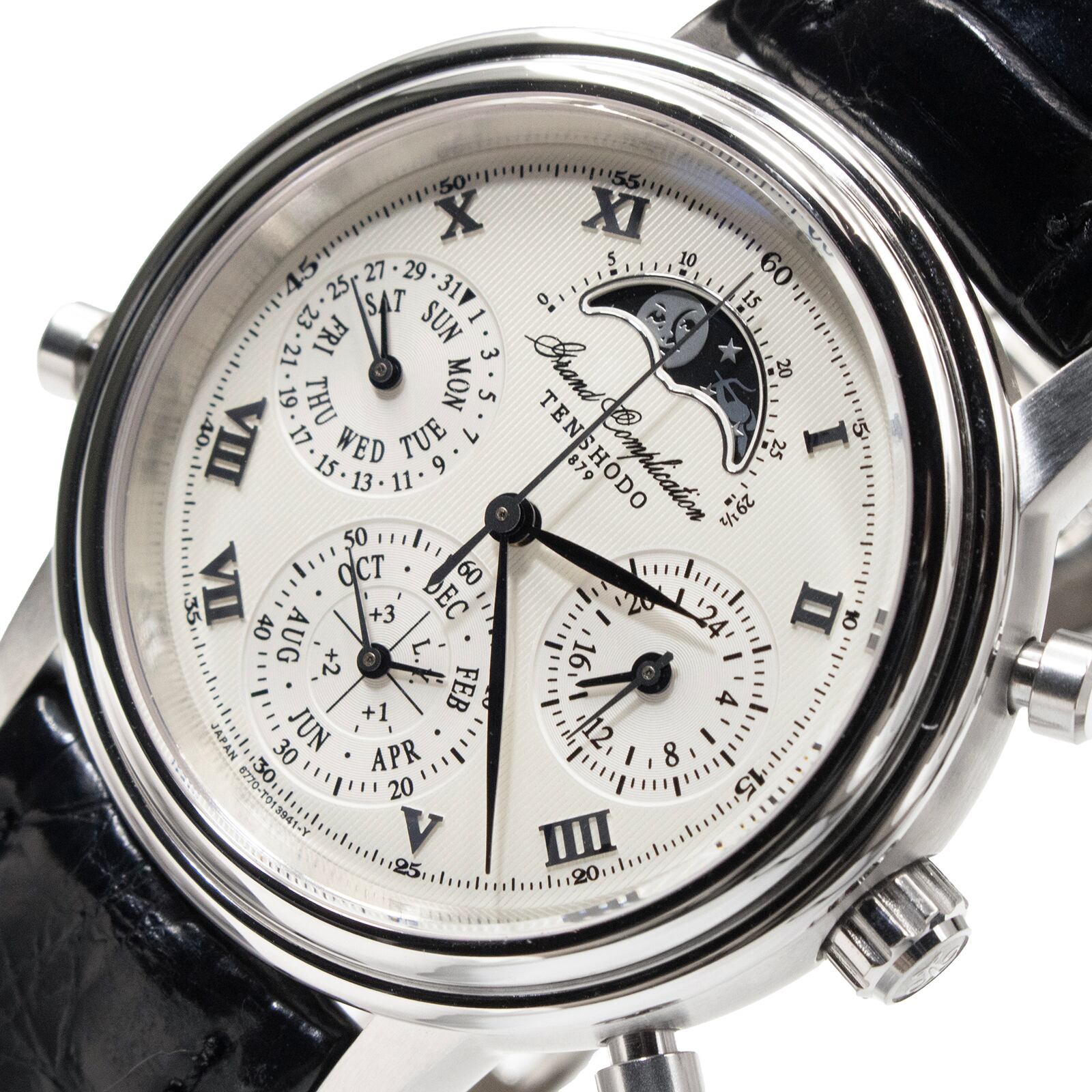 送料無料 天賞堂 腕時計 クォーツ グランドコンプリケーションクラシック メンズ ホワイト 黒 ムーンフェイズ クロノグラフ ロゴ 綺麗 Q021